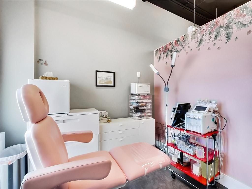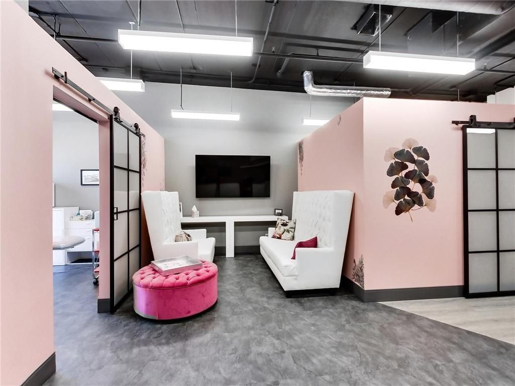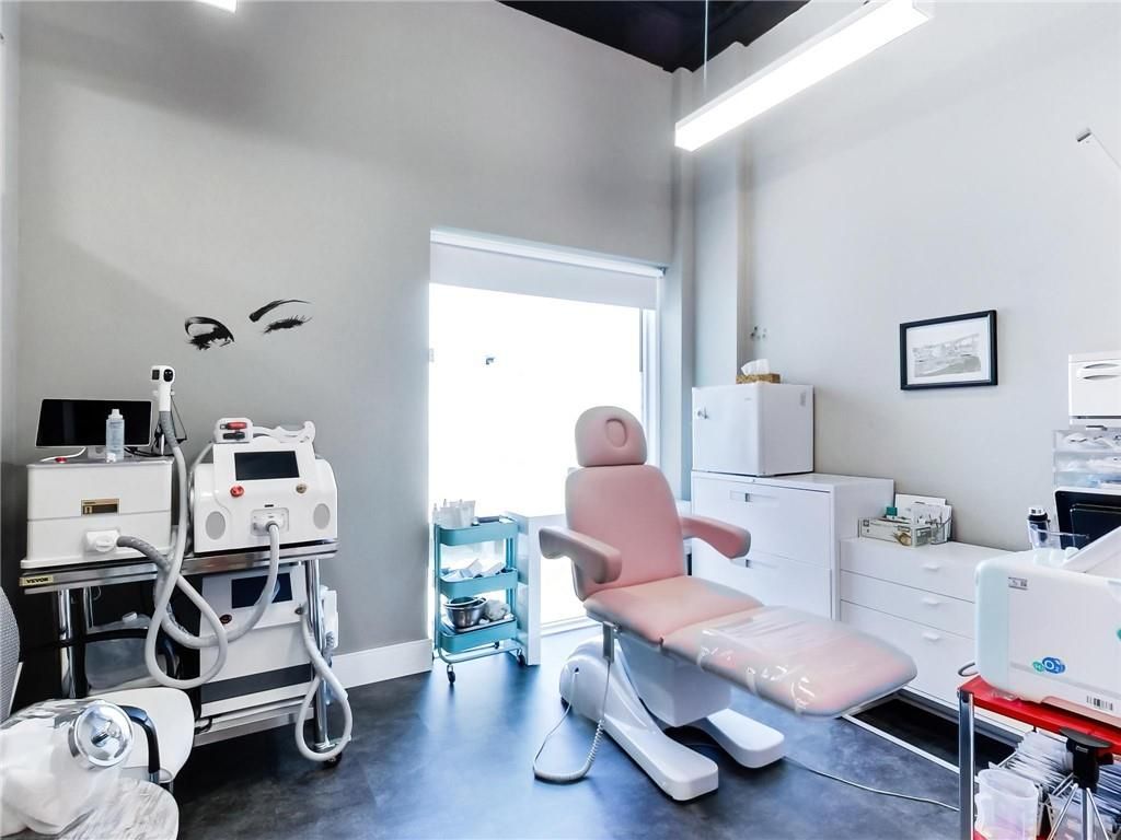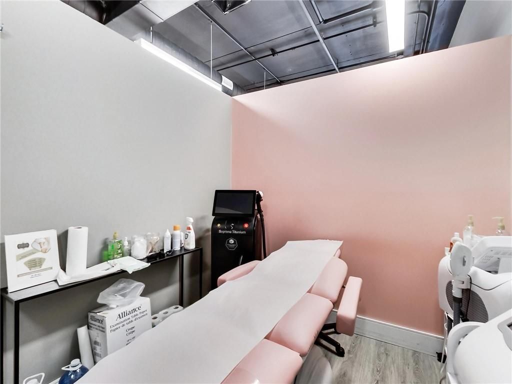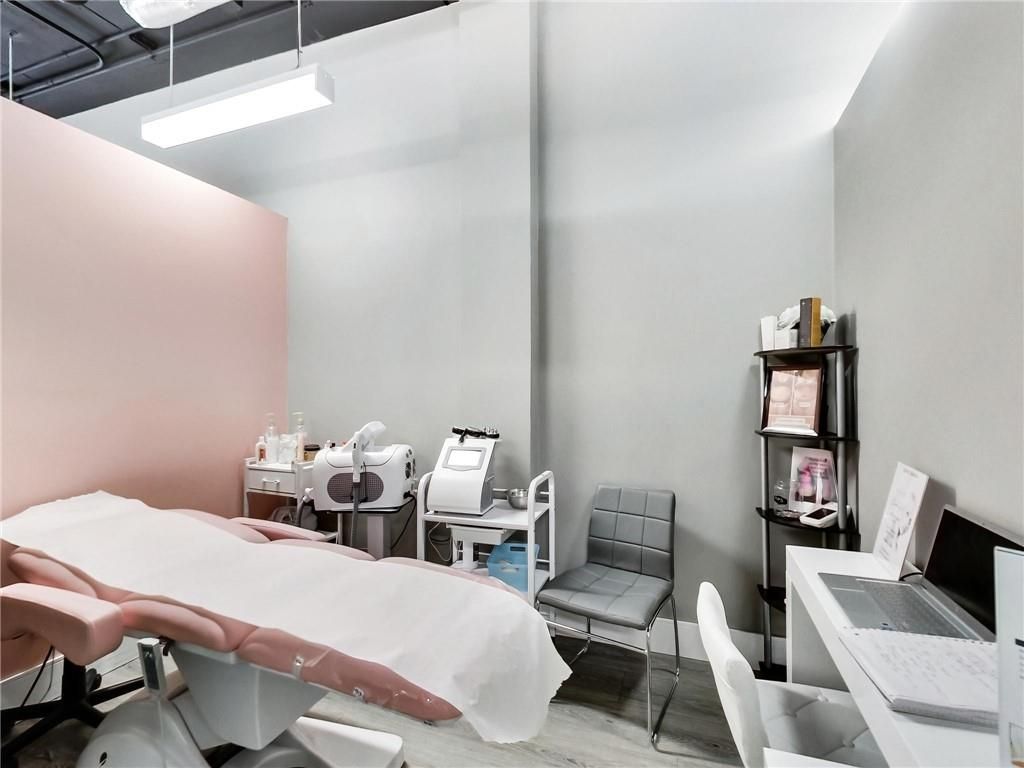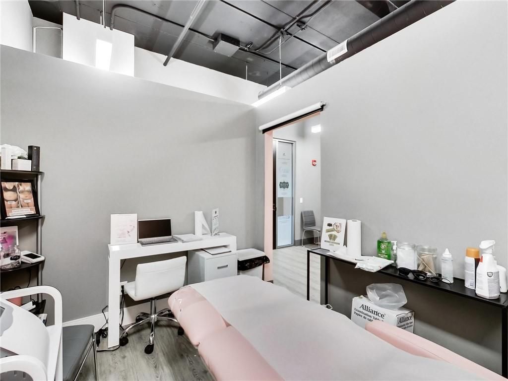 One of burlington's most prestigious business centres! Beautiful natural light with high loft style 12' ceilings. 1 owned parking spot plus ample free surface and elevated parking garage parking for clients. High-end and efficient v-tech heating and cooling systems and lighting. Easy highway access to 407/qew via appleby line and burloak drive. Fully built-out w/3 offices/clinic rooms, storage room, bathroom & kitchenette open to lounge/waiting area. Medical office and professional office building. Currently operates as a medical spa. 3 storey covered parking garage, elevator and accessible washroom conveniently close to unit. Energy efficient lighting and v-tech hvac units.