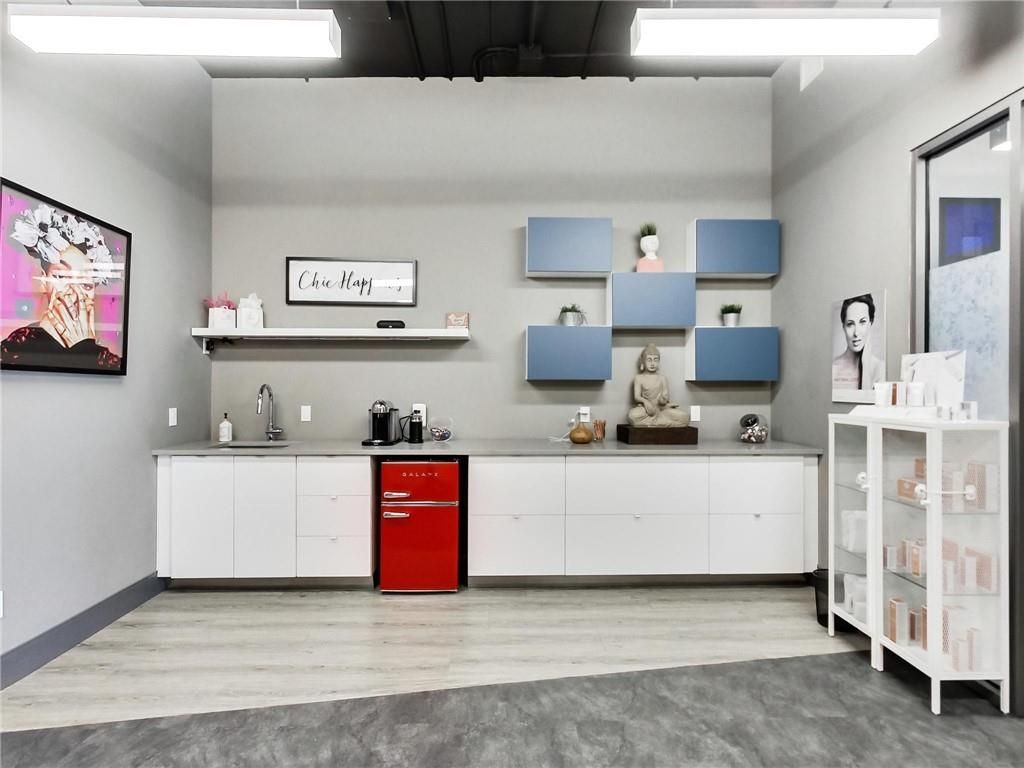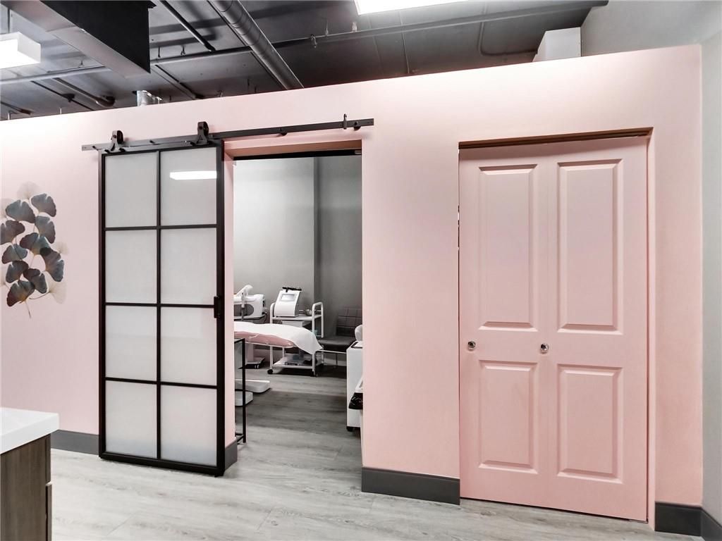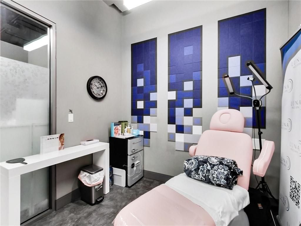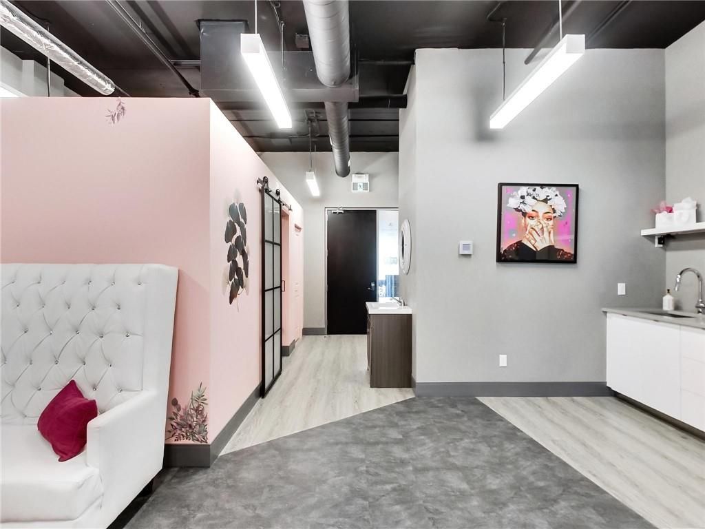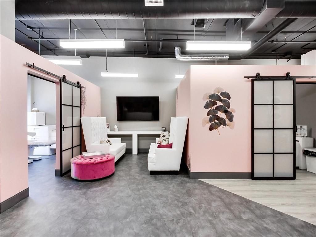 One of burlington's most prestigious business centres! Beautiful natural light with high loft style 12' ceilings. 1 owned parking spot plus ample free surface and elevated parking garage parking for clients. High-end and efficient v-tech heating and cooling systems and lighting. Easy highway access to 407/qew via appleby line and burloak drive. Fully built-out w/3 offices/clinic rooms, storage room, bathroom & kitchenette open to lounge/waiting area. Medical office and professional office building. Currently operates as a medical spa. 3 storey covered parking garage, elevator and accessible washroom conveniently close to unit. Energy efficient lighting and v-tech hvac units.