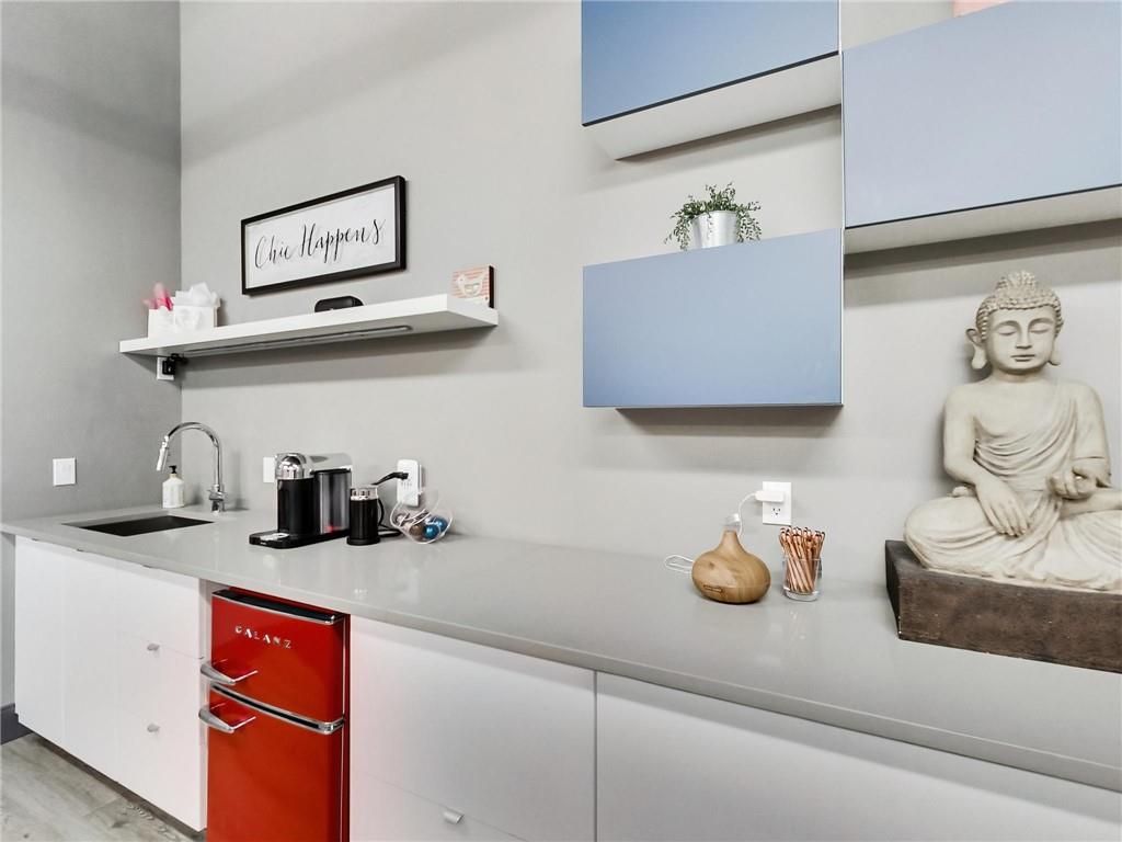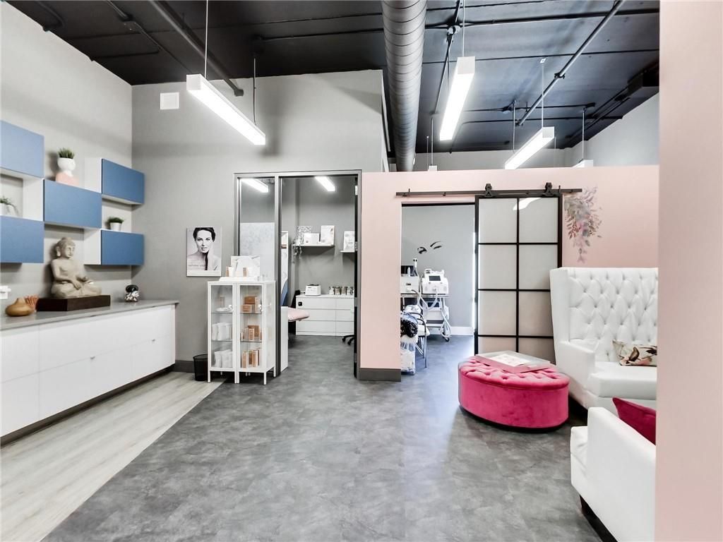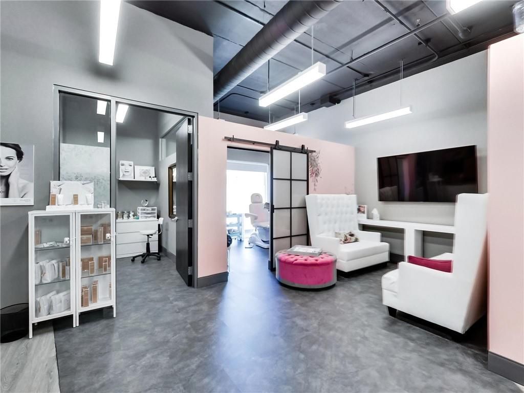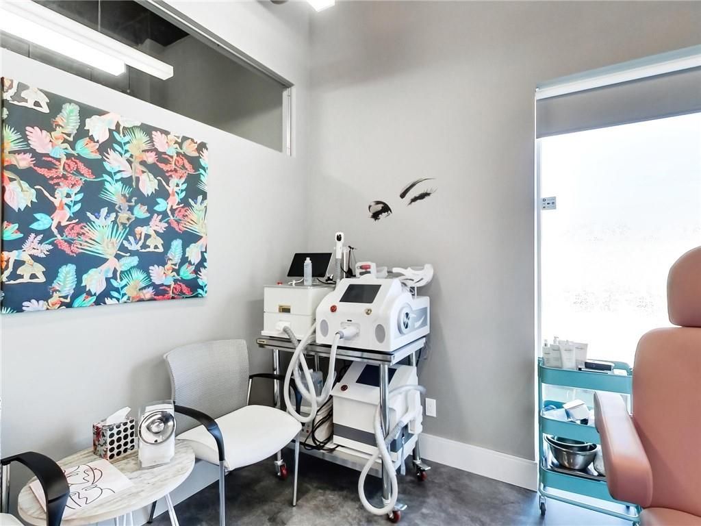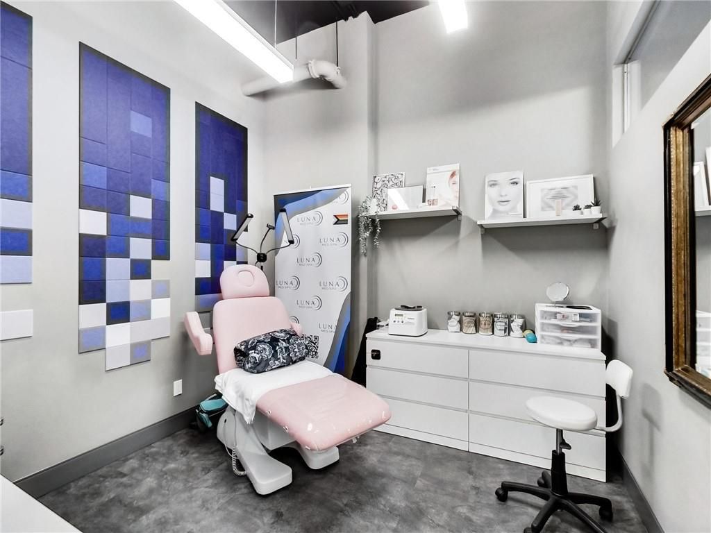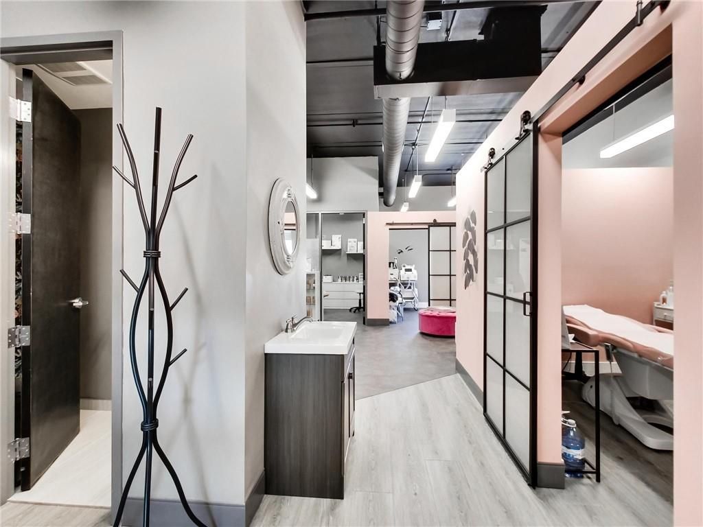 One of burlington's most prestigious business centres! Beautiful natural light with high loft style 12' ceilings. 1 owned parking spot plus ample free surface and elevated parking garage parking for clients. High-end and efficient v-tech heating and cooling systems and lighting. Easy highway access to 407/qew via appleby line and burloak drive. Fully built-out w/3 offices/clinic rooms, storage room, bathroom & kitchenette open to lounge/waiting area. Medical office and professional office building. Currently operates as a medical spa. 3 storey covered parking garage, elevator and accessible washroom conveniently close to unit. Energy efficient lighting and v-tech hvac units.