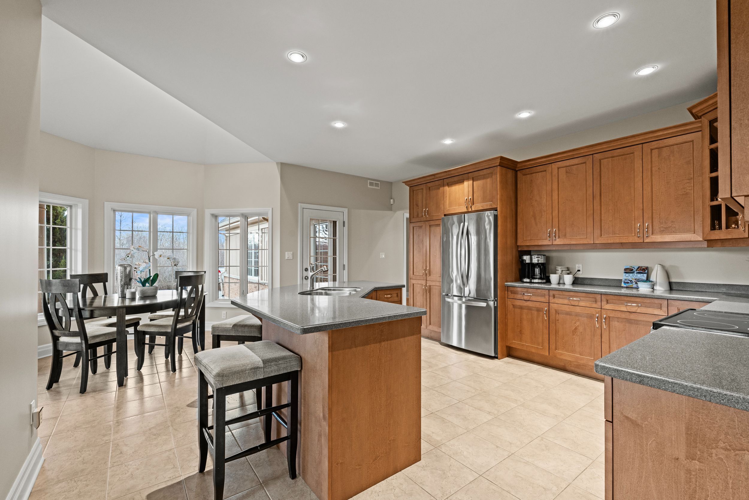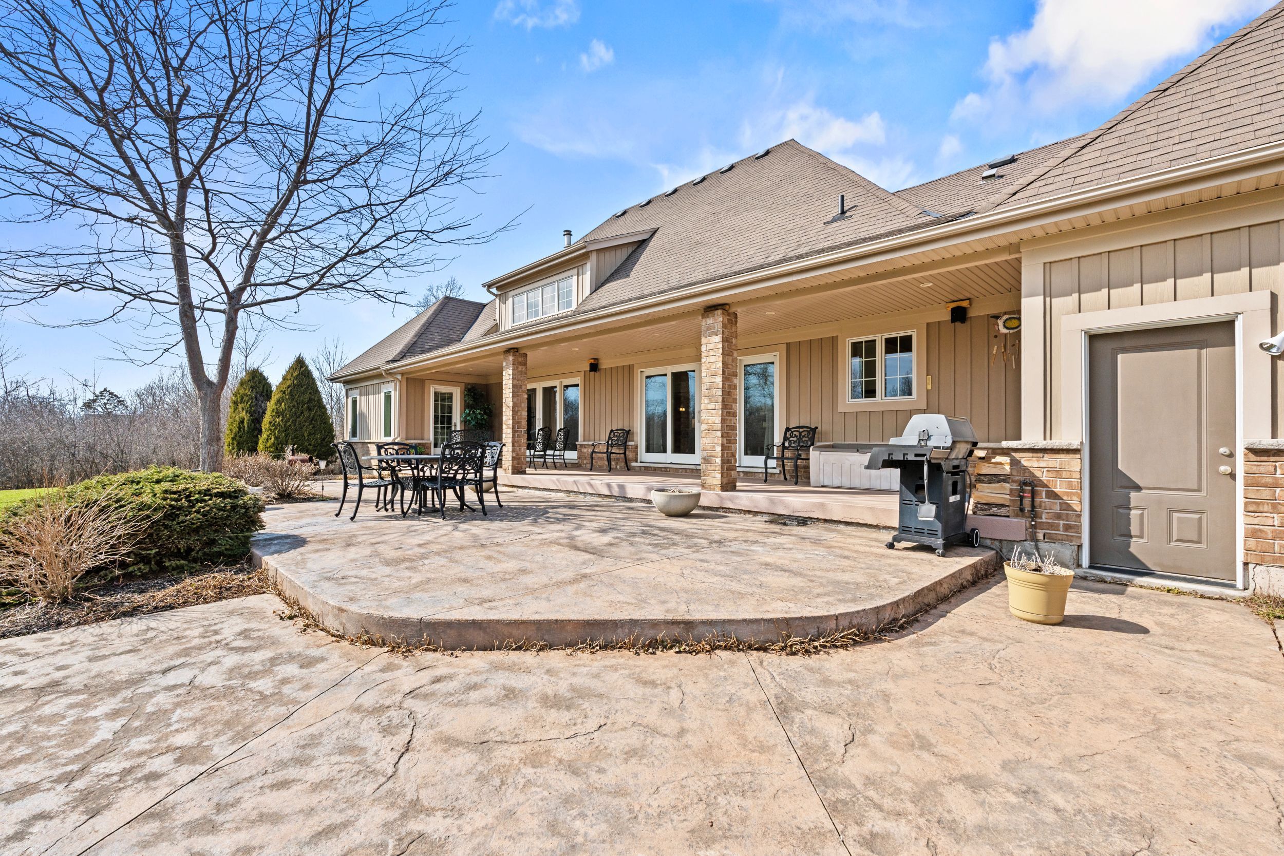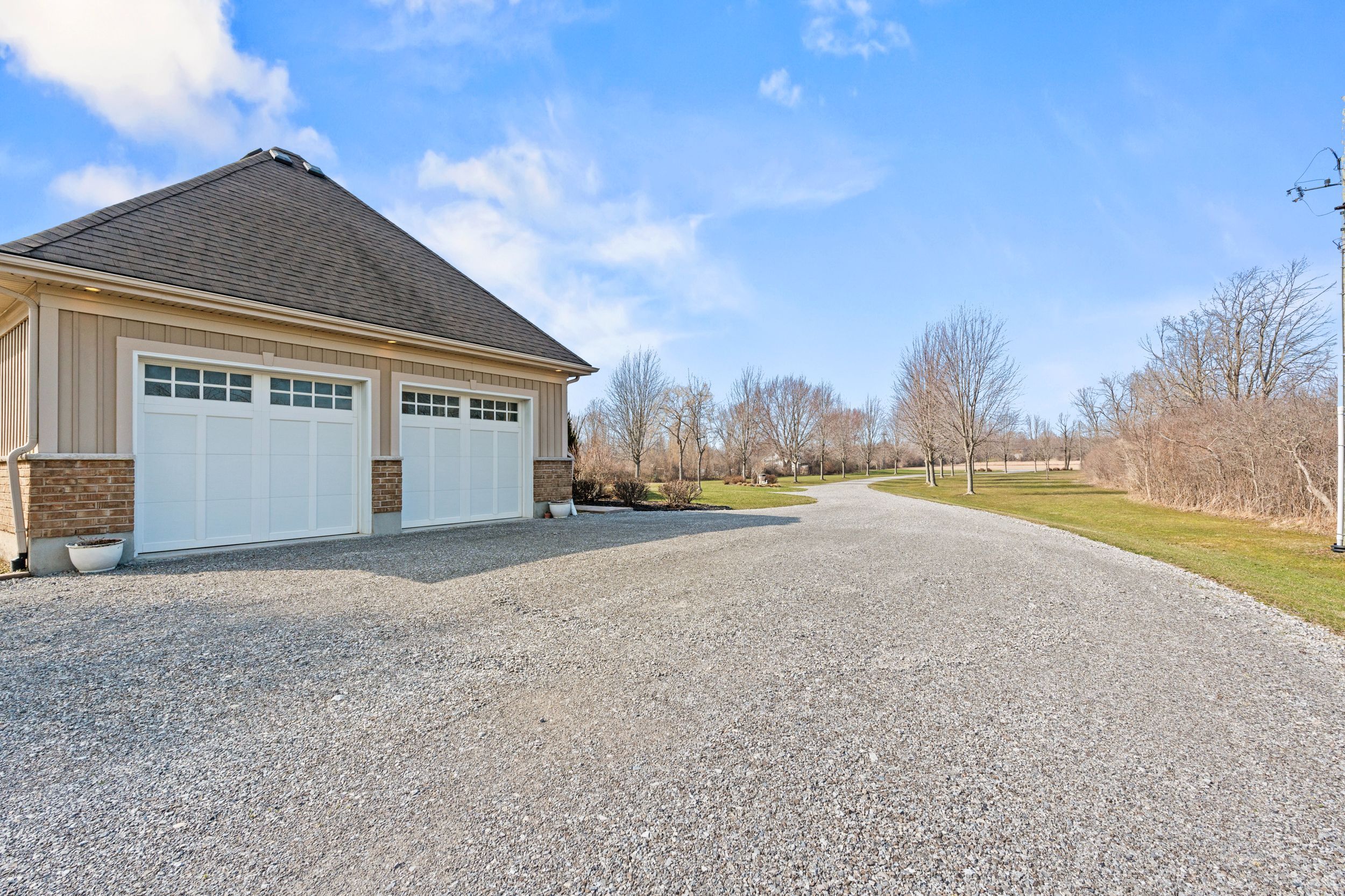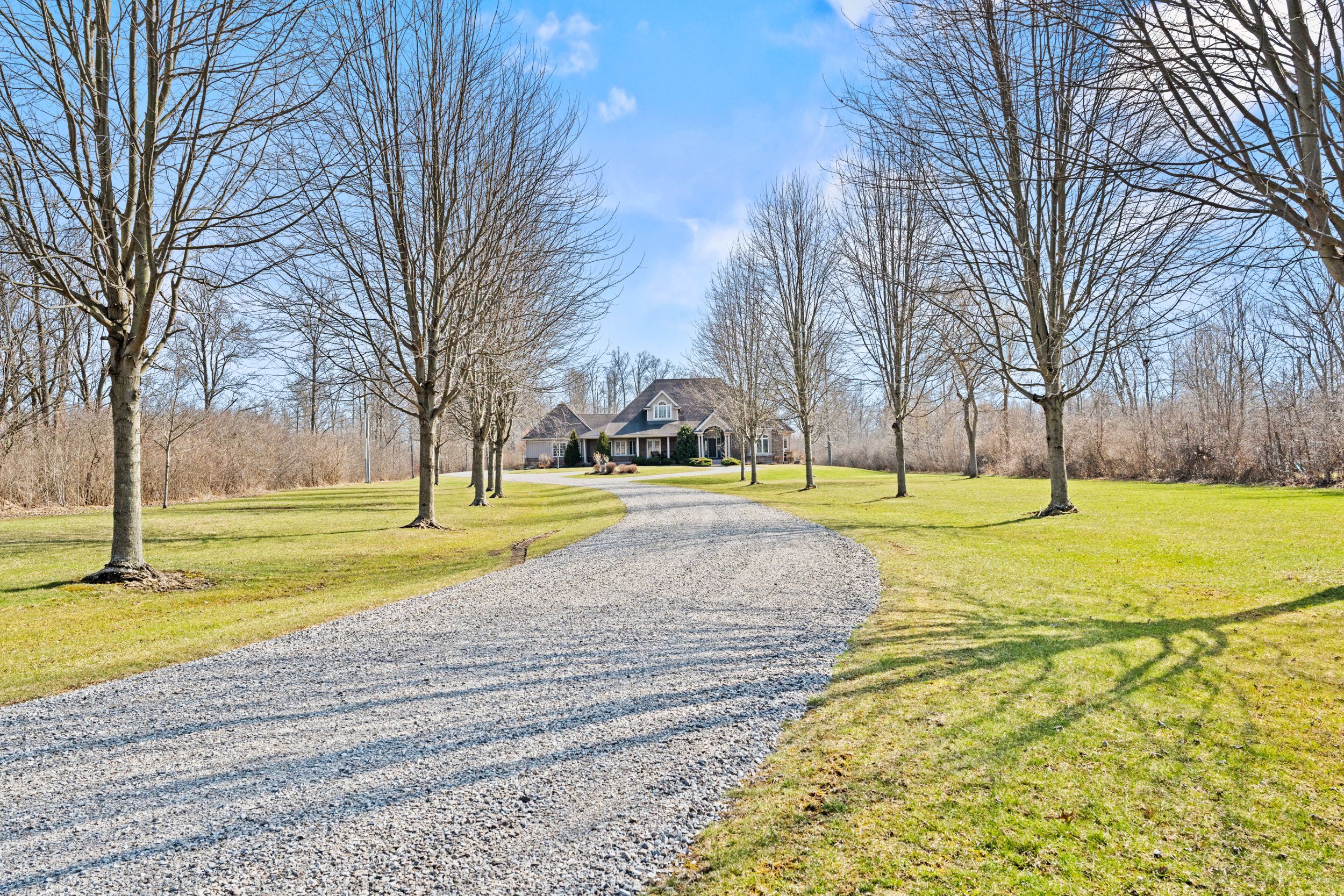 Imagine waking up to pure serenity everyday. When you're here, it feels like the rest of the world doesn't exist and that is exactly what makes this home so special. Set on just under 12 acres, this property offers a level of privacy that is rarely found. The home disappears from the road through the trees creating a setting that feels completely secluded. An expansive winding driveway leads to a stately bungalow with an oversized covered front porch. Inside, a bright foyer opens with sightlines through to the backyard that showcases the scale and natural surroundings. The living room features cathedral ceilings and a floor to ceiling stone fireplace with gas insert. This space flows into a formal dining area surrounded by windows that bring in natural light and views of the back yard. The kitchen is intentionally separated from the primary living space allowing you to enjoy the main living areas without the noise or activity of a busy kitchen carrying throughout the home. Complete with eat in dining, island seating and stainless steel appliances, it also offers a panoramic view over the front grounds. A lofted upper level provides flexible space for a home office or additional lounge overlooking the main floor. The primary suite overlooks the backyard and includes a walk in closet and five piece ensuite, while a second bedroom and four piece bathroom are positioned down the hall. Main floor laundry offers storage and direct access to the oversized double car garage. The lower level features a rec-room with new carpeting, pot lighting and gas fireplace, along with an oversized bedroom with ensuite privilege to a two piece bathroom with rough in for a future shower/tub. Three additional storage and workshop areas complete this level. The grounds offer expansive yard space along with a mature forest and private walking/atv trails. Located minutes to bay beach, sherkston shores, niagara falls and all other amenities.