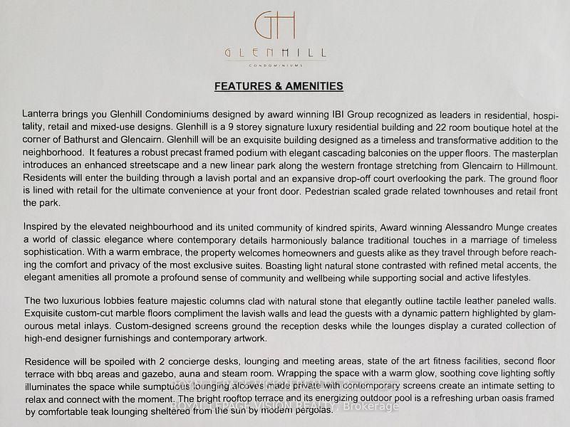 Gym / yoga room is now open. Live at one of the most luxurious buildings in toronto managed by the forest hill group. Sunrise east views new never lived in two bedroom 796 sq ft per builders floorplan, one locker ( no parking ), all engineered hardwood / ceramic / porcelain and marble floors no carpet, marble floor and tub wall tile in washroom, upgraded stone counters, upgraded kitchen cabinets, upgraded miele appliances. Next door to bialik hebrew day school and synagogue, building and amenities under construction to be completed in summer 2026, 23 room hotel on site ( $ fee ), 24 hr room service ( $ fee ), restaurant ( $ fee ) and other ground floor retail - to be completed by end of 2026, linear park from glencairn to hillmount - due in 2027. Landlord will consider longer than 1 year lease term. Price reduced in lieu of amenities not being ready, take advantage today!