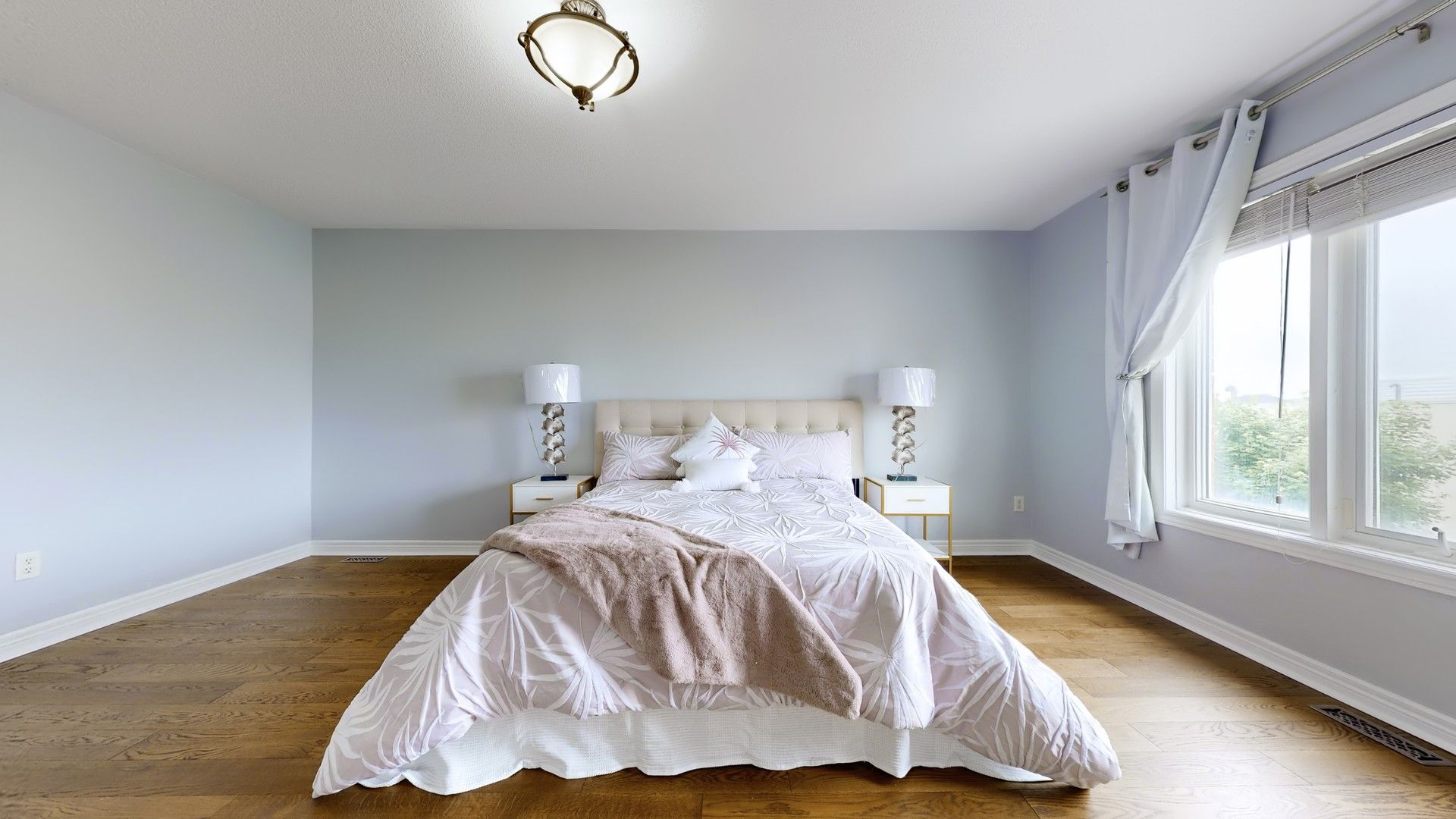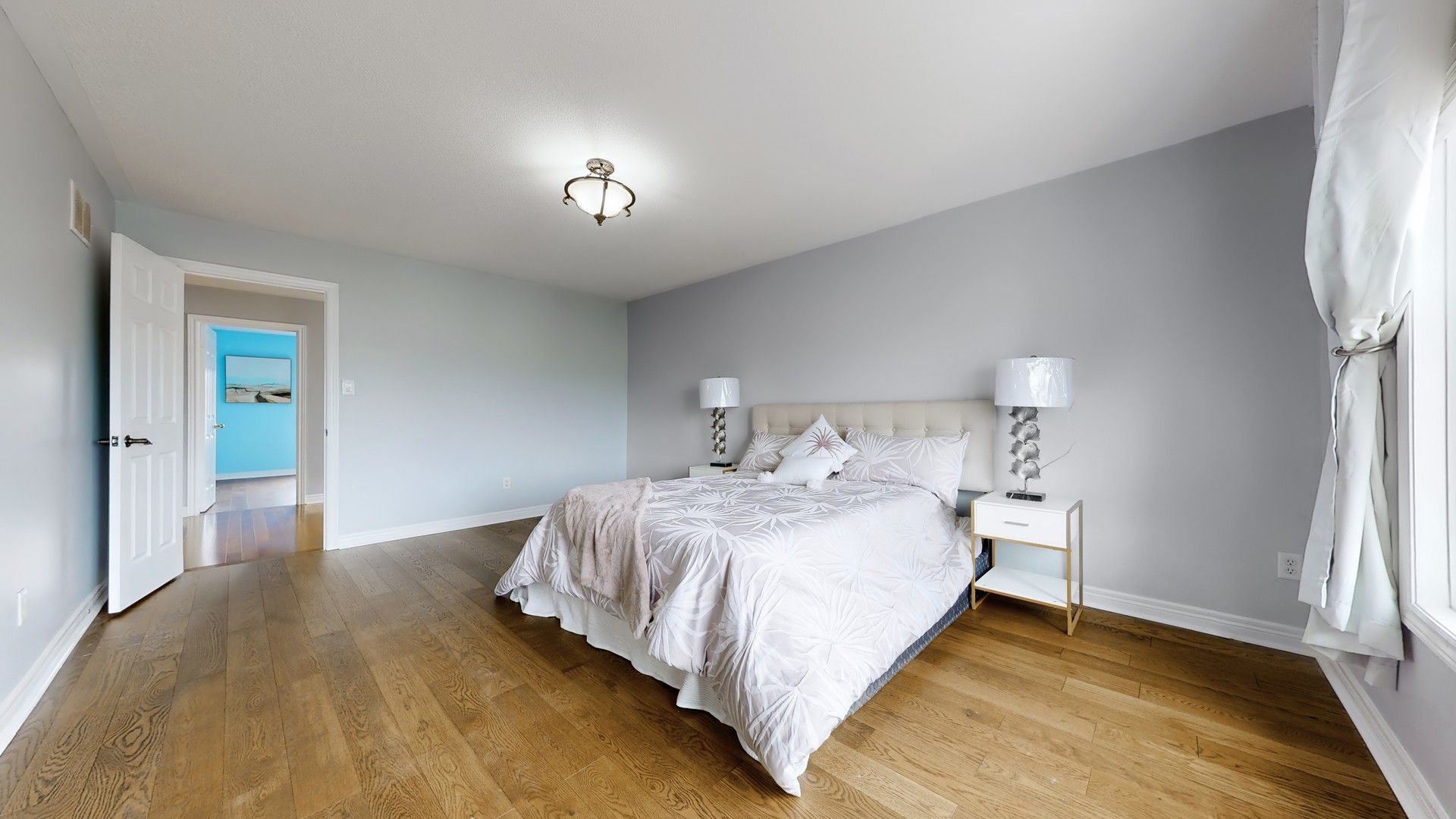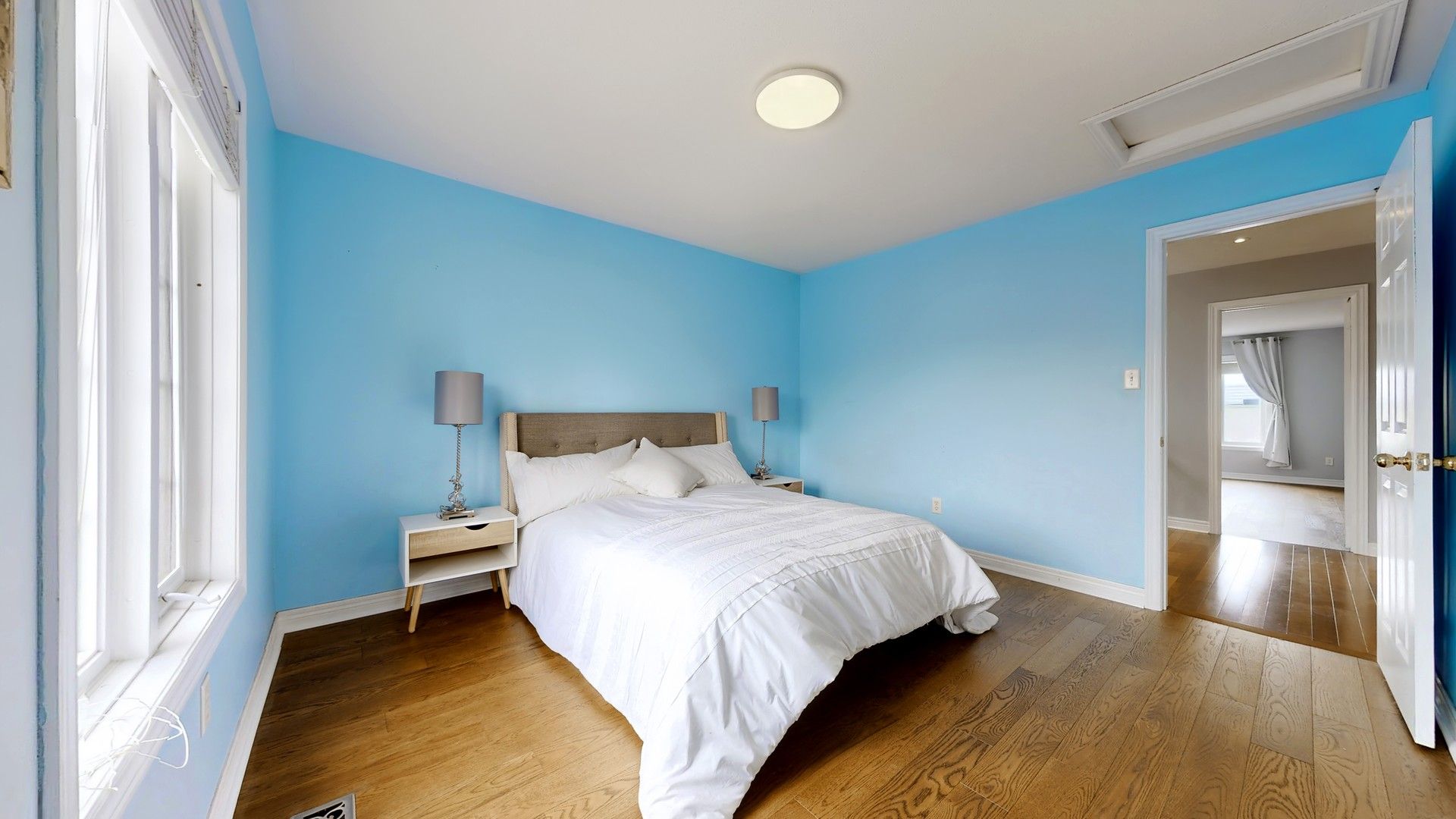• Open-concept design with 9ft ceilings and large windows for natural light.