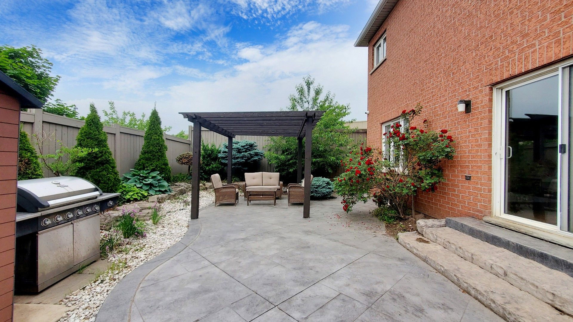 • Backyard oasis with pergola, perfect for outdoor relaxation.