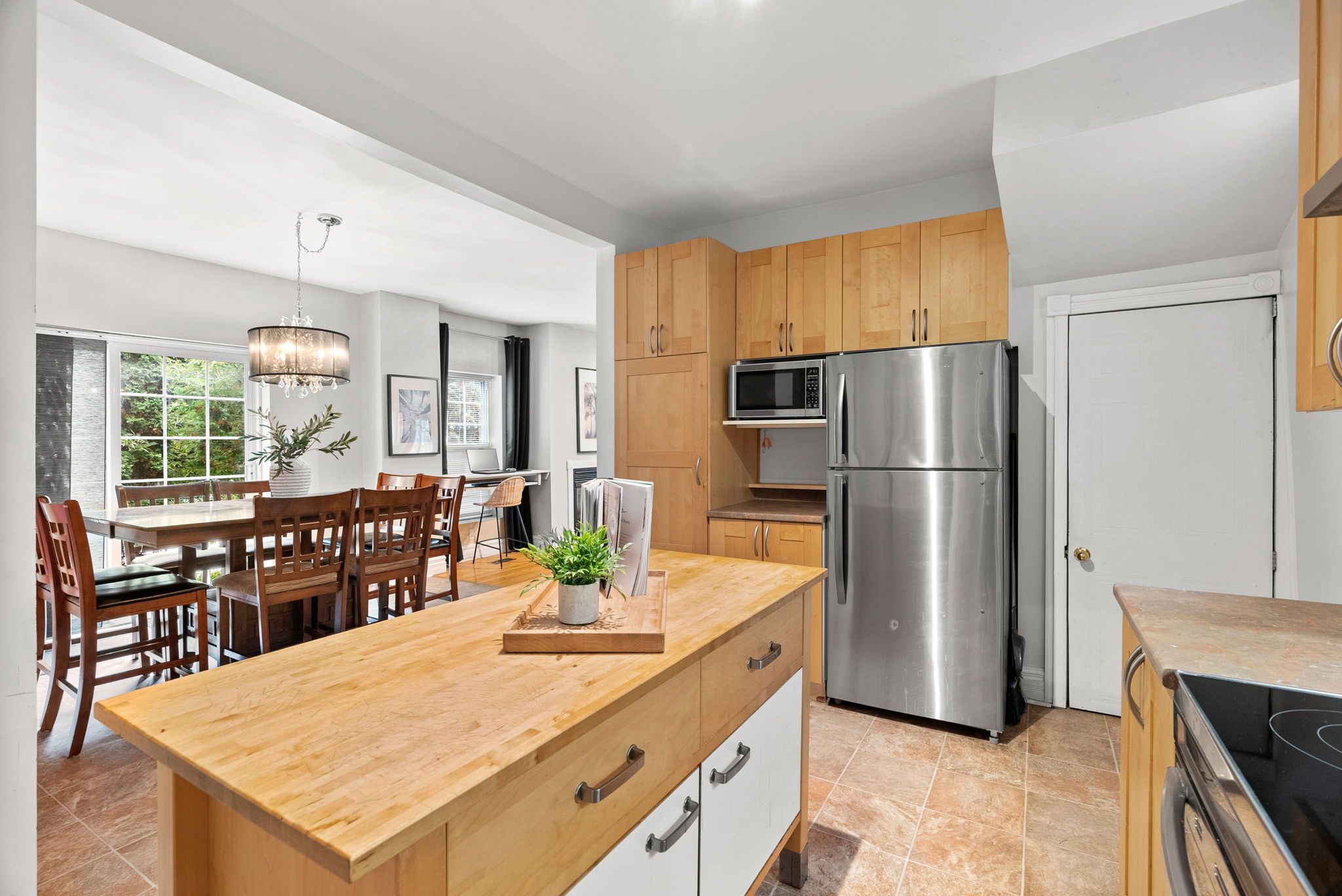 • Generous central kitchen connects to open living and dining areas.
