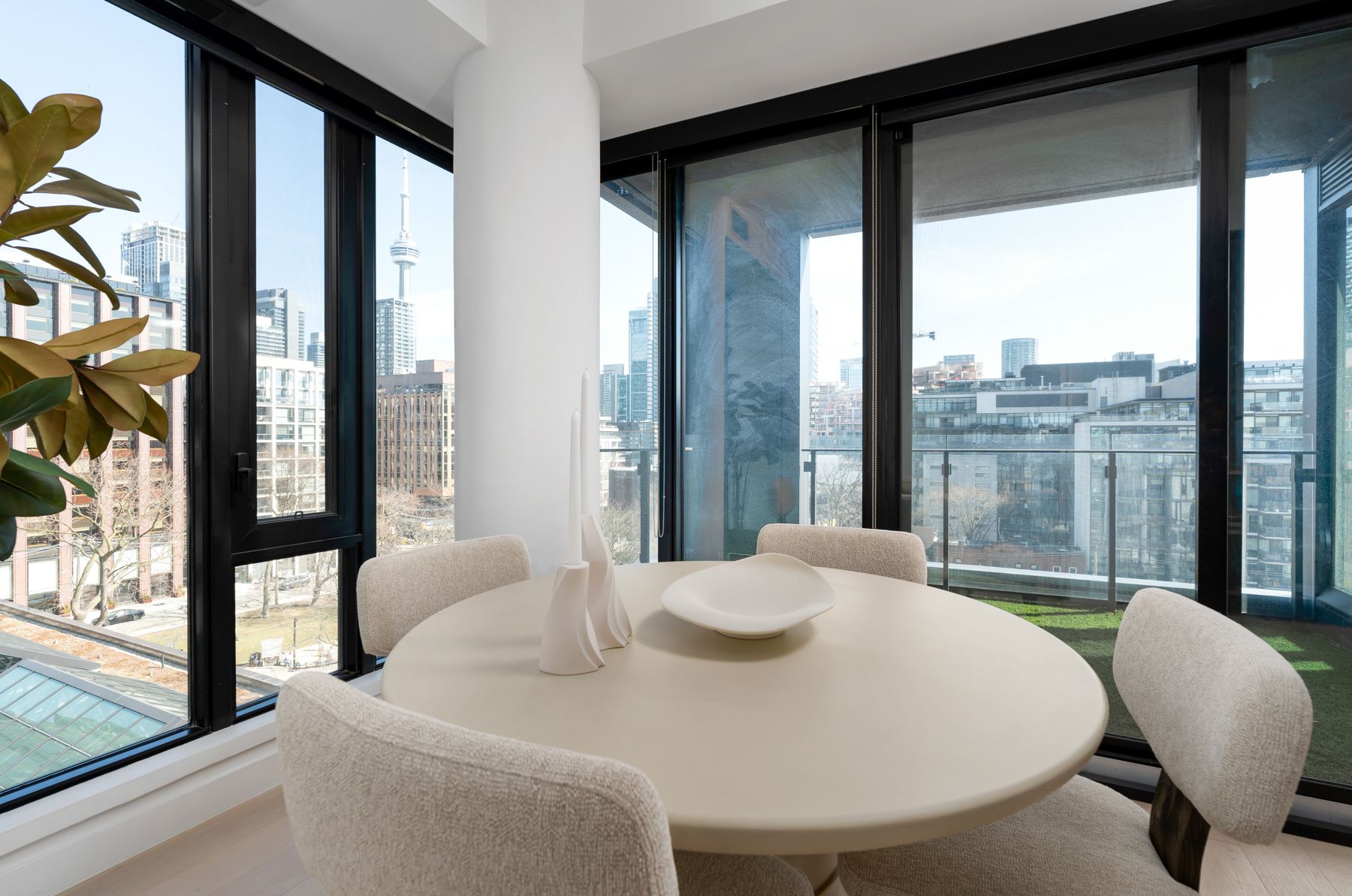 Some addresses just feel different and this one delivers. Perched on the corner of one of downtown toronto's most celebrated boutique buildings, this rare 1,000+ sq ft suite redefines what urban living can look and feel like. Two bedrooms, two bathrooms, parking, and a locker - the fundamentals are all here. But it's the details that make it extraordinary. The kitchen is a statement. Fully appointed with premium miele appliances and designed with the entertainer in mind, it's the kind of space that makes hosting feel effortless and evenings feel indulgent. Floor-to-ceiling windows wrap the entire suite, flooding every room with natural light and framing unobstructed south views including a front-row seat to the cn tower. Step onto the upgraded balcony and you'll understand why this one is different. Custom turf underfoot, peaceful sightlines over st. Andrew's park, and the quiet luxury of knowing you don't have to compromise. Downstairs, the waterworks food hall awaits - one of the city's most acclaimed culinary destinations, right at your front door. Add top-tier building amenities, a layout that actually works, and a location that puts the best of toronto within walking distance, and the picture becomes clear. This isn't just a condo. It's a standard of living.