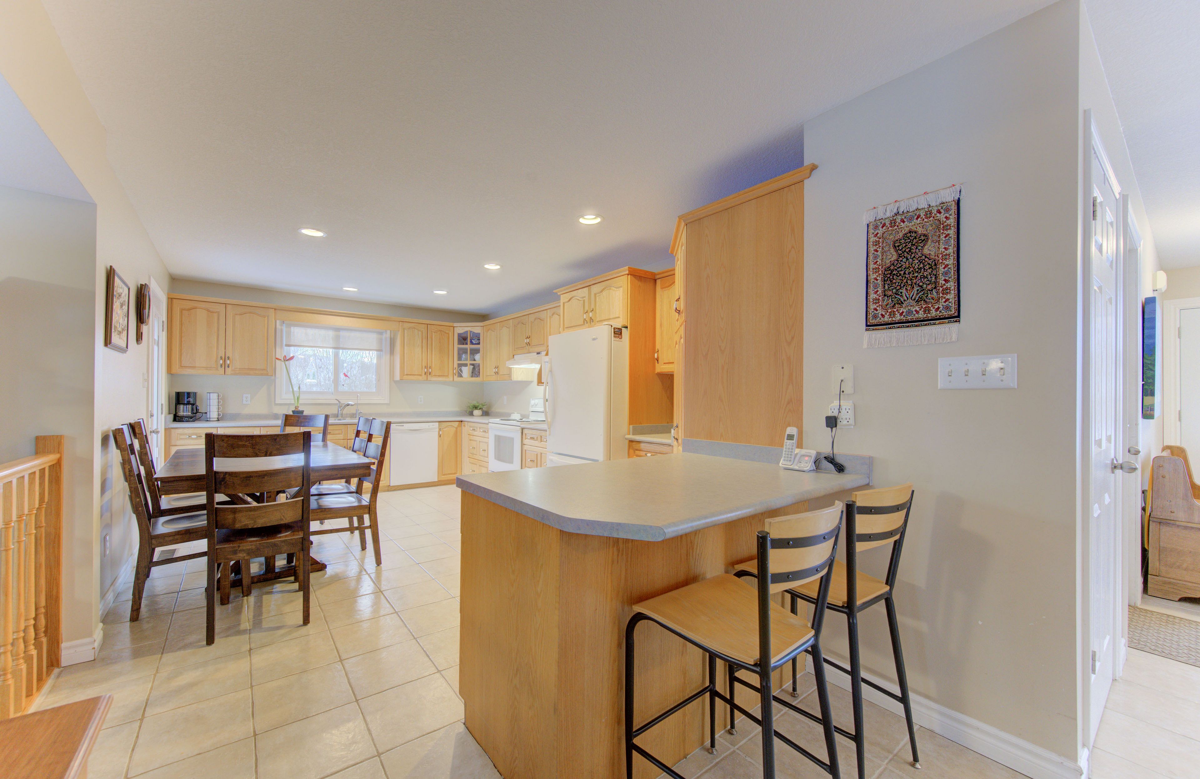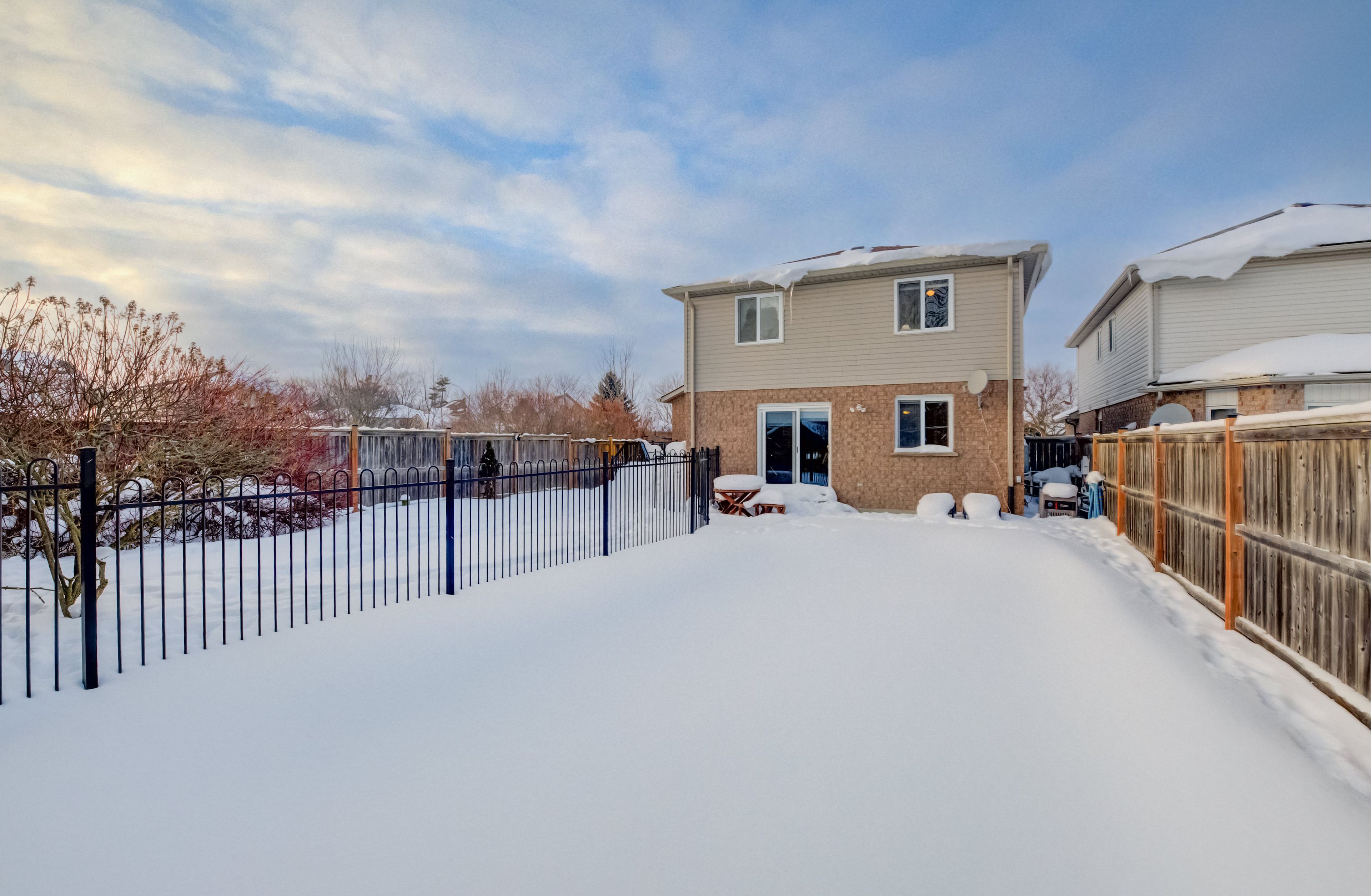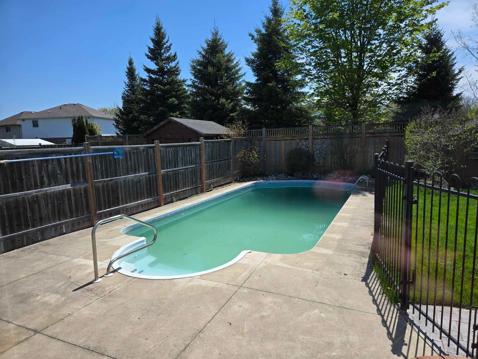 Welcome to 505 sandbanks cres.,waterloo. This beautifully maintained 3 bedroom, 3 bathroom backsplit home is located in a highly sought-after waterloo neighbourhood. Step inside to an inviting open-concept main floor featuring maple hardwood flooring throughout and a bright, welcoming living room that flows seamlessly into the dining area-perfect for everyday living and entertaining. The oversized kitchen is a standout, offering abundant counter space and storage, with a convenient door leading directly to the back deck, ideal for summer bbqs and outdoor dining. Just a few steps down, the cozy family room features a gas fireplace and sliding doors that open to the fully fenced backyard oasis, complete with a great sized saltwater pool-your private retreat for warm summer days. There is a also a large grass area for pets and kids to play completely safe and separate from the pool area. Back inside... This level also includes a laundry room and a 2-piece bathroom for guests and added convenience. Upstairs, you'll find your 3 bedrooms along with an updated 4-piece main bath and a generously sized primary bedroom with walk in closet and its own 4-piece ensuite, highlighted by a relaxing soaker tub. The partially finished basement provides exceptional versatility, offering plenty of space for a rec room, home gym, or hobby area. The storage in this home is phenomenal! The mechanical and storage space will surely impress, not to mention the large cold-room! Additional features include an attached double car garage and parking for two vehicles in the driveway. A fantastic opportunity to own a spacious, functional home with standout outdoor living in a prime waterloo location. Close to shops, st. Jacobs farmers market, schools, trails and so much more!