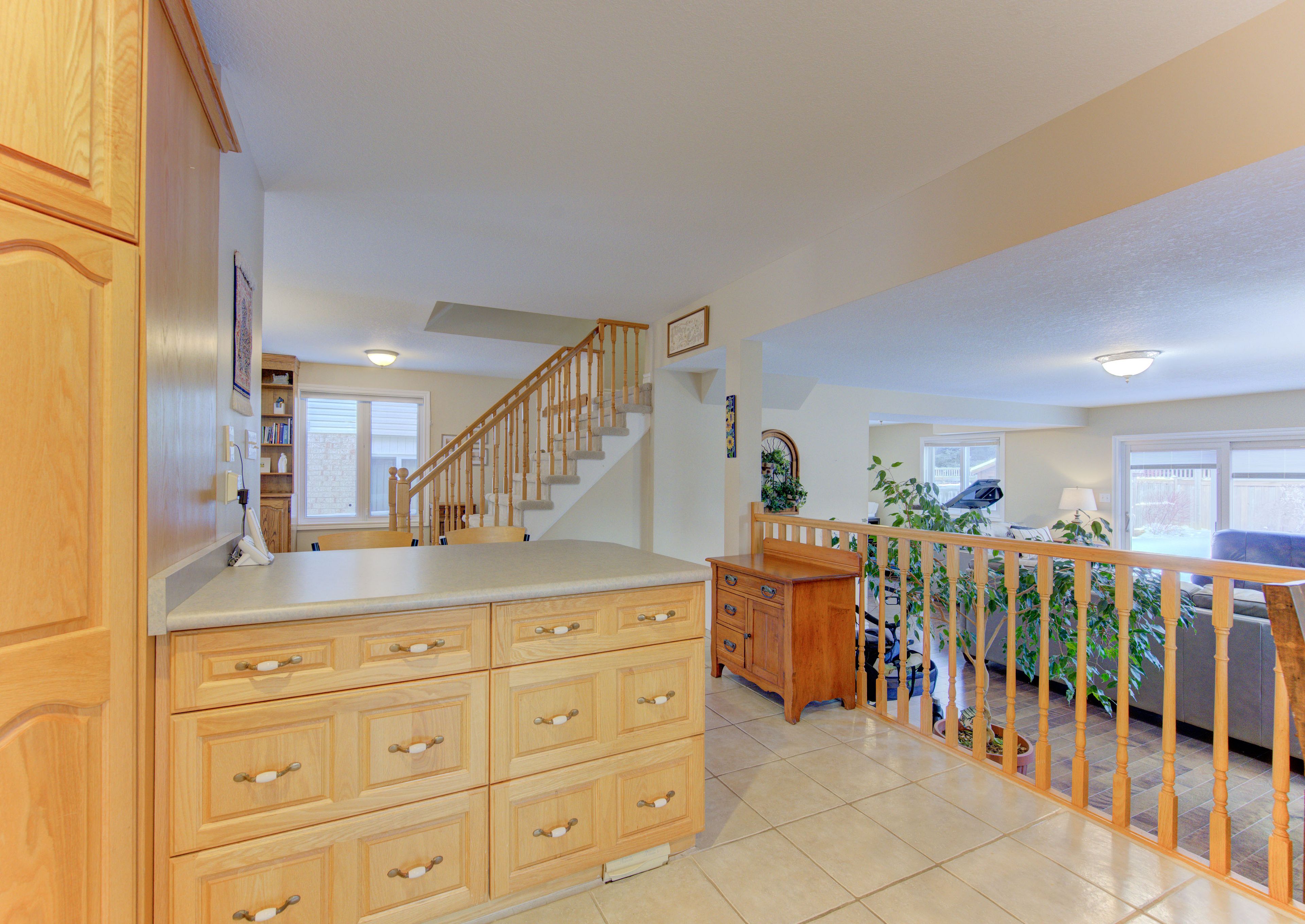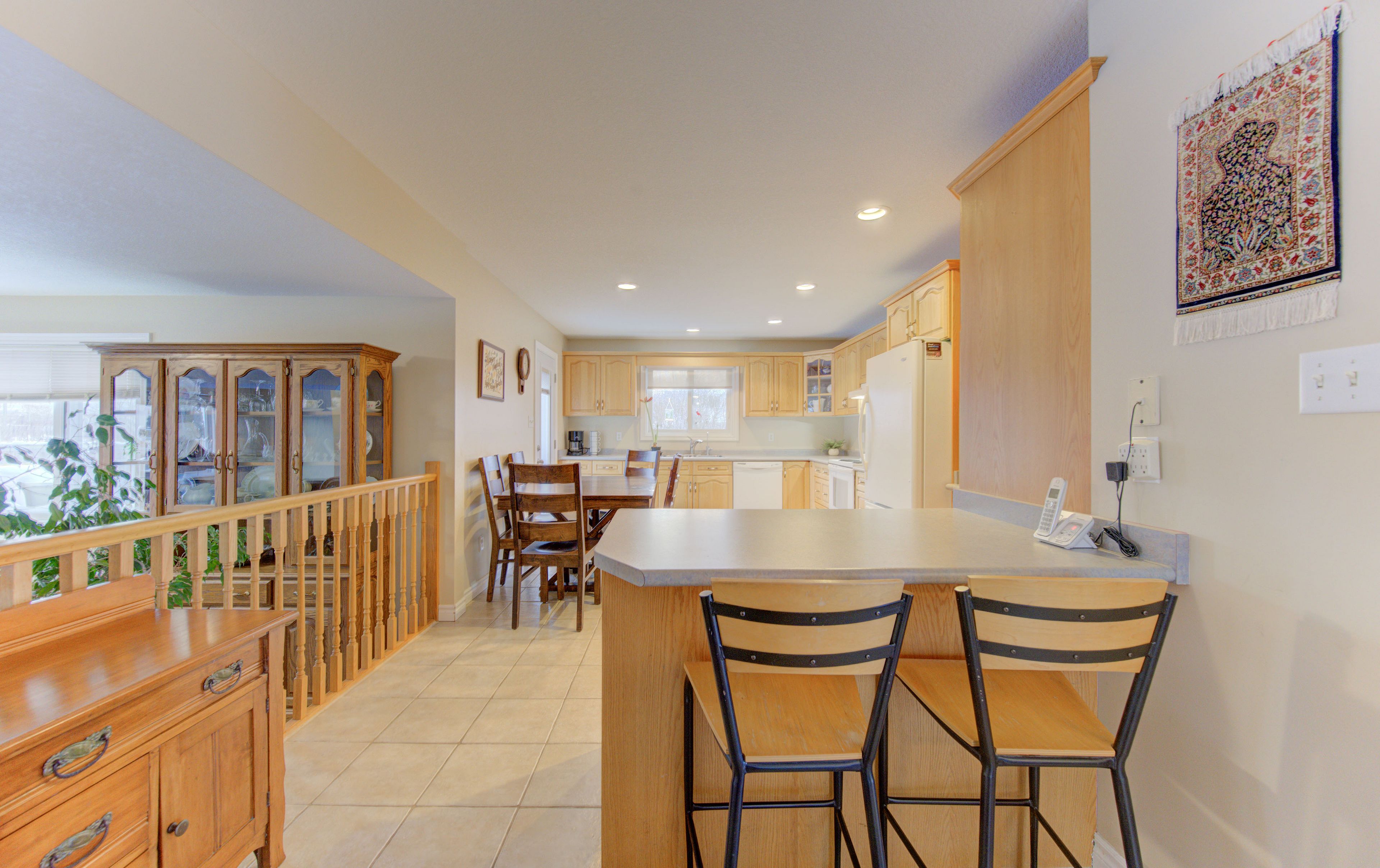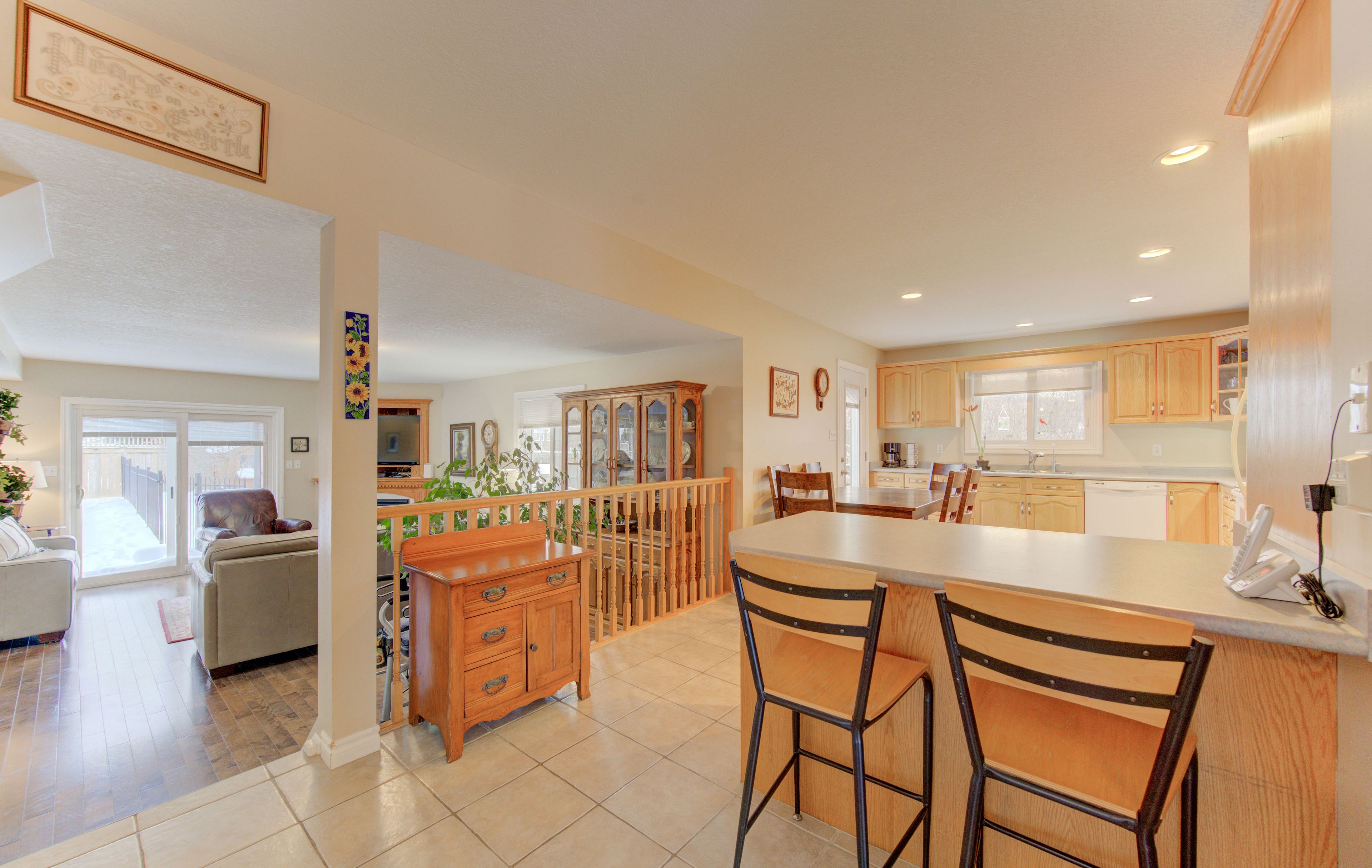 Welcome to 505 sandbanks cres.,waterloo. This beautifully maintained 3 bedroom, 3 bathroom backsplit home is located in a highly sought-after waterloo neighbourhood. Step inside to an inviting open-concept main floor featuring maple hardwood flooring throughout and a bright, welcoming living room that flows seamlessly into the dining area-perfect for everyday living and entertaining. The oversized kitchen is a standout, offering abundant counter space and storage, with a convenient door leading directly to the back deck, ideal for summer bbqs and outdoor dining. Just a few steps down, the cozy family room features a gas fireplace and sliding doors that open to the fully fenced backyard oasis, complete with a great sized saltwater pool-your private retreat for warm summer days. There is a also a large grass area for pets and kids to play completely safe and separate from the pool area. Back inside... This level also includes a laundry room and a 2-piece bathroom for guests and added convenience. Upstairs, you'll find your 3 bedrooms along with an updated 4-piece main bath and a generously sized primary bedroom with walk in closet and its own 4-piece ensuite, highlighted by a relaxing soaker tub. The partially finished basement provides exceptional versatility, offering plenty of space for a rec room, home gym, or hobby area. The storage in this home is phenomenal! The mechanical and storage space will surely impress, not to mention the large cold-room! Additional features include an attached double car garage and parking for two vehicles in the driveway. A fantastic opportunity to own a spacious, functional home with standout outdoor living in a prime waterloo location. Close to shops, st. Jacobs farmers market, schools, trails and so much more!