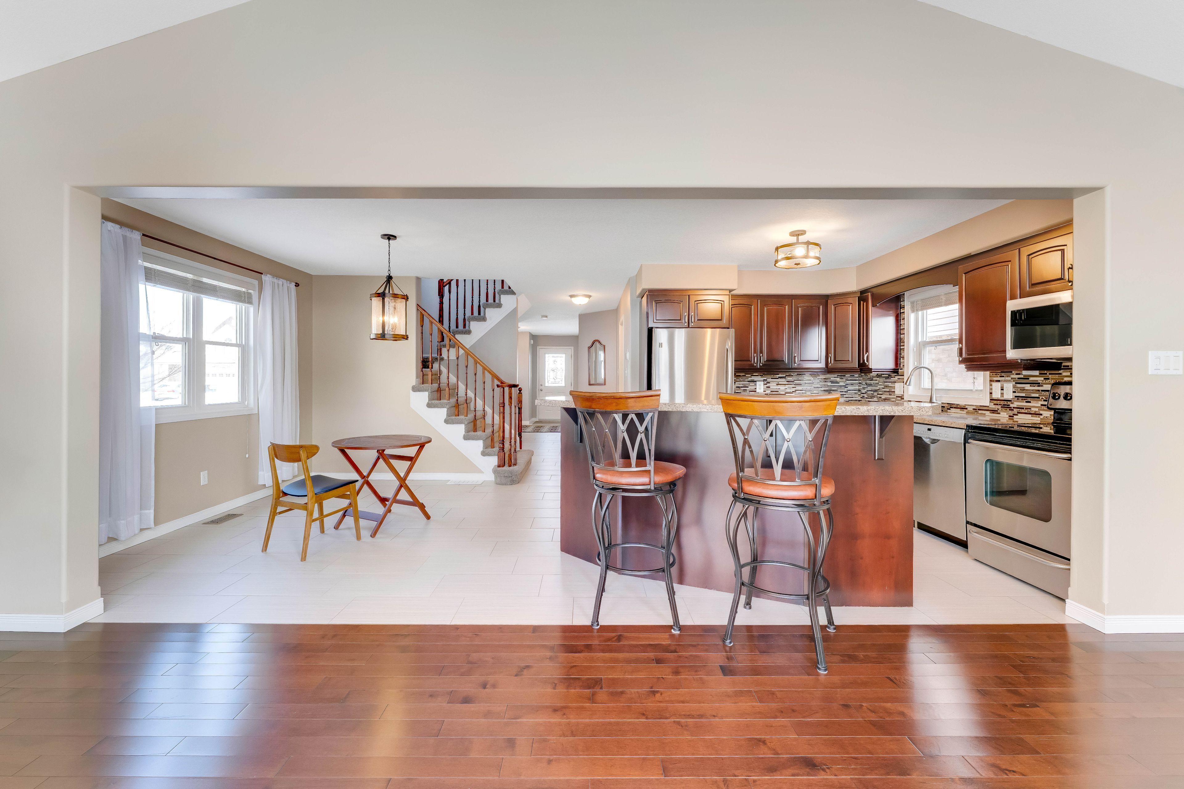Welcome to 505 snowdrop court, kitchener: a well maintained 2-storey home tucked away on a quiet, family-friendly court in one of kitchener's most desirable neighborhoods. Pride of ownership shines through every inch of this move-in ready residence, perfect for families or professional couples alike. Drive into this beautifully built home and appreciate the convenience of 3-car parking (1. 5-car garage, 2 car driveway) and the charming curb appeal that sets the tone for what's inside. Step into the welcoming front foyer and discover a bright, carpet-free open-concept main floor. The stunning kitchen featuring quartz countertops, stainless steel appliances, ample cabinetry and a spacious island. The adjacent dining area is ideal for casual breakfasts, hosting friends or gathering with family. The airy living room, where a vaulted ceiling enhances the sense of space and light, creating a beautiful setting to relax or entertain. A convenient main-floor laundry room with mudroom access to the garage adds practicality to the home's thoughtful layout. Upstairs, you'll find 3 generously sized bedrooms designed with comfort in mind. The primary suite offers a walk-in closet and access to jack and jill bathroom. The fully finished basement truly elevates this home's appeal boasting an updated bathroom, home gym or office space, a stylish wet bar and a stunning stone-clad gas fireplace, the perfect backdrop for movie nights. Step outside to your private backyard oasis including custom flagstone patio overlooking an oversized, fully fenced yard that enjoys sunshine all afternoon. With lush greenery, plenty of space for children to play, gardening opportunities and an extraordinary shed for extra storage. Location is the final piece of perfection. Just minutes to highway 401, highway 7/8, sunrise centre and williamsburg town centre, everything you need is right at your doorstep. This is a home where lasting memories are ready to be made. Book your showing today!