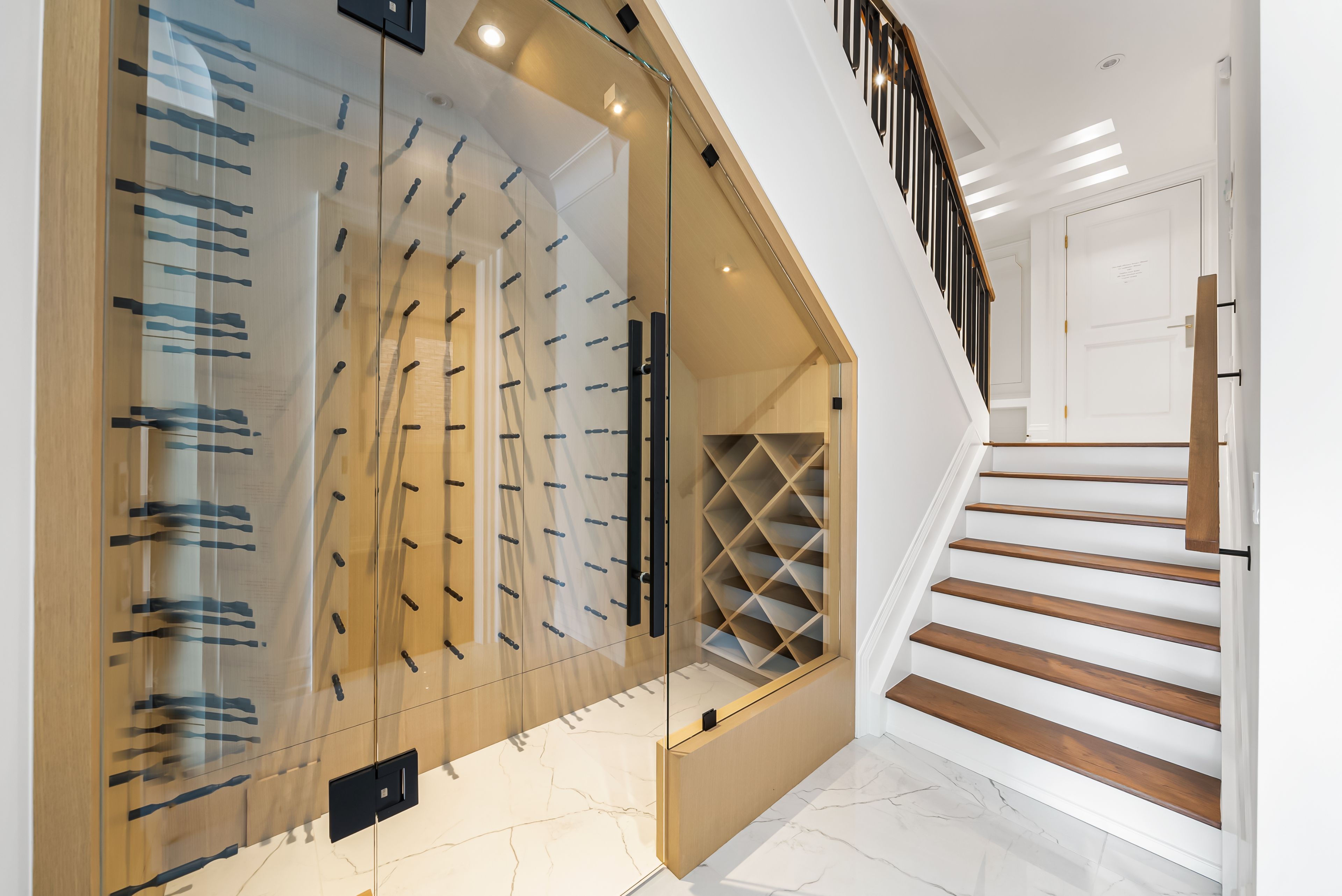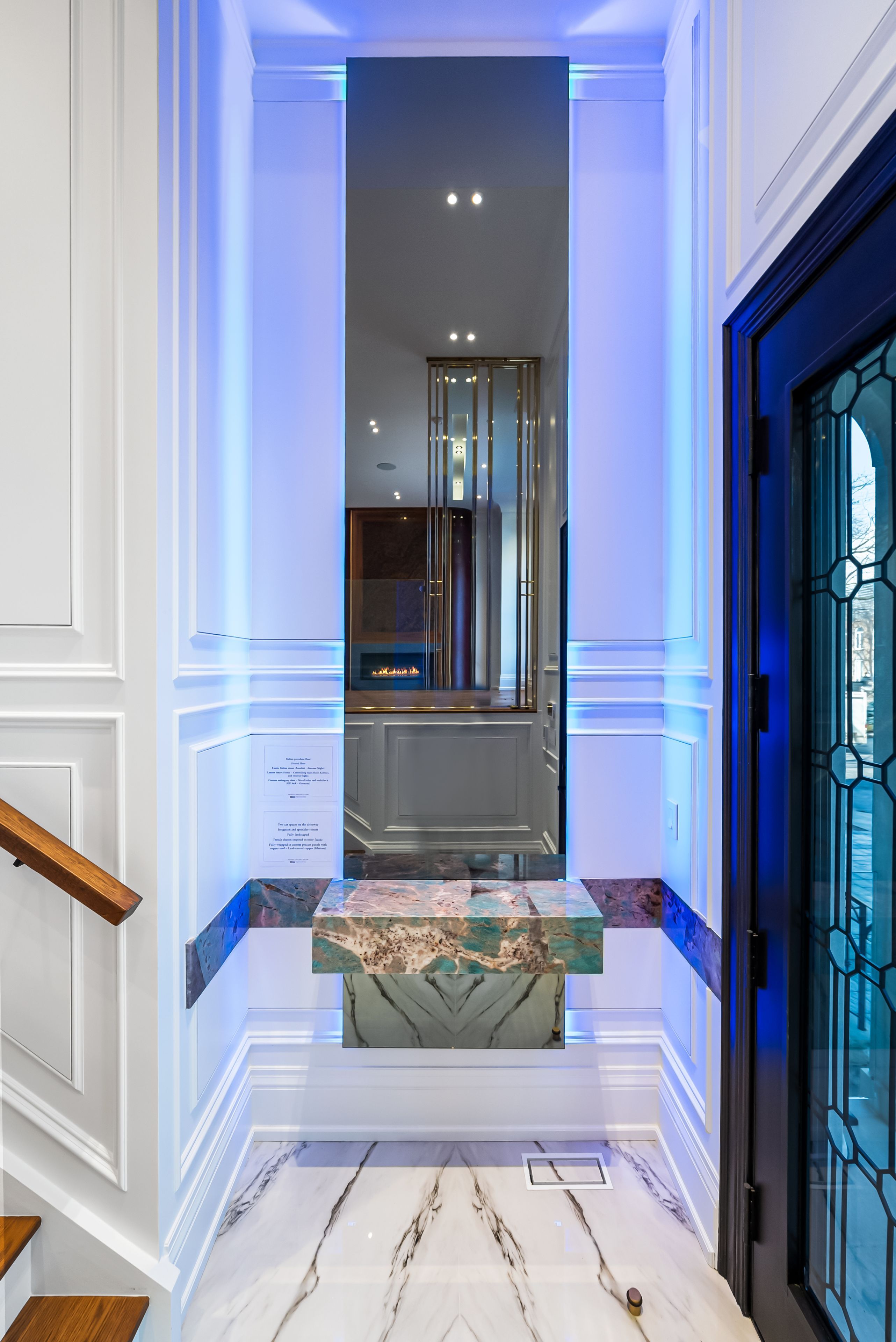 • Walk-out basement with wine display, bar, and gas fireplace.