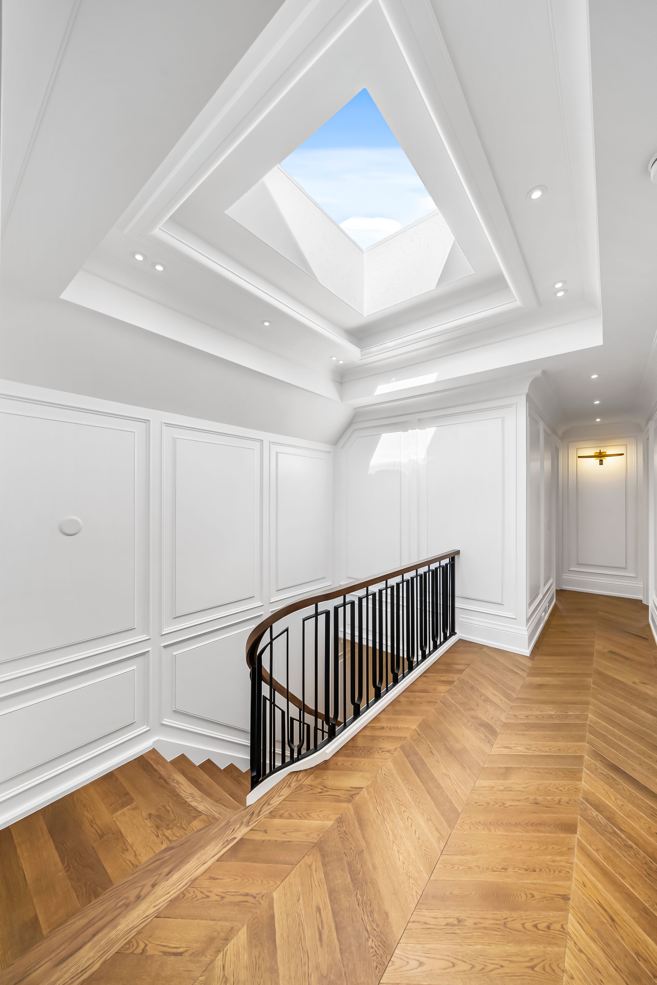 • Luxury finishes include Italian porcelain and white oak flooring.