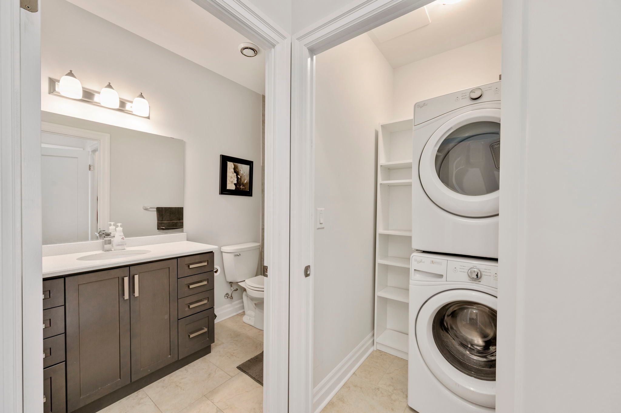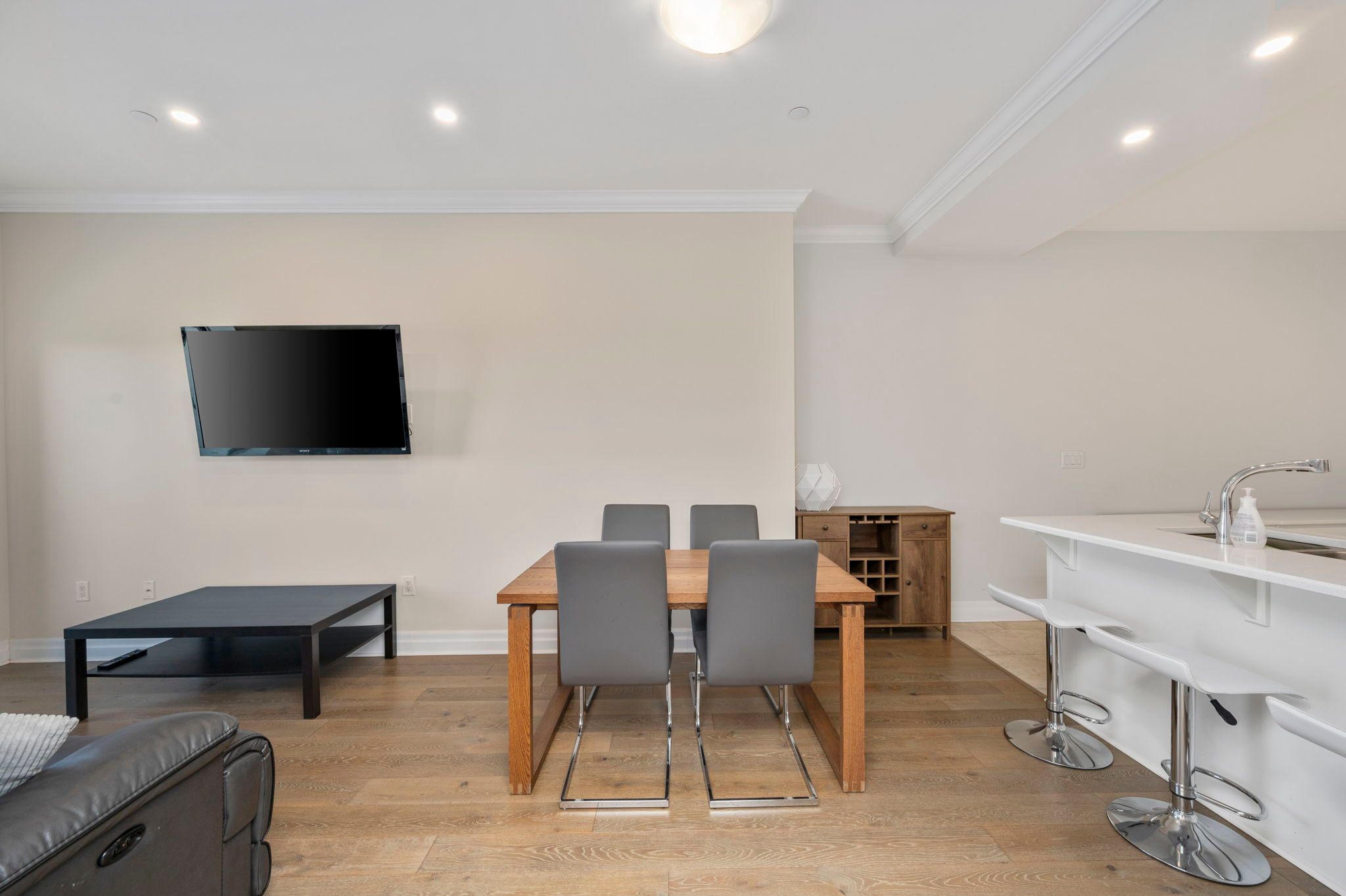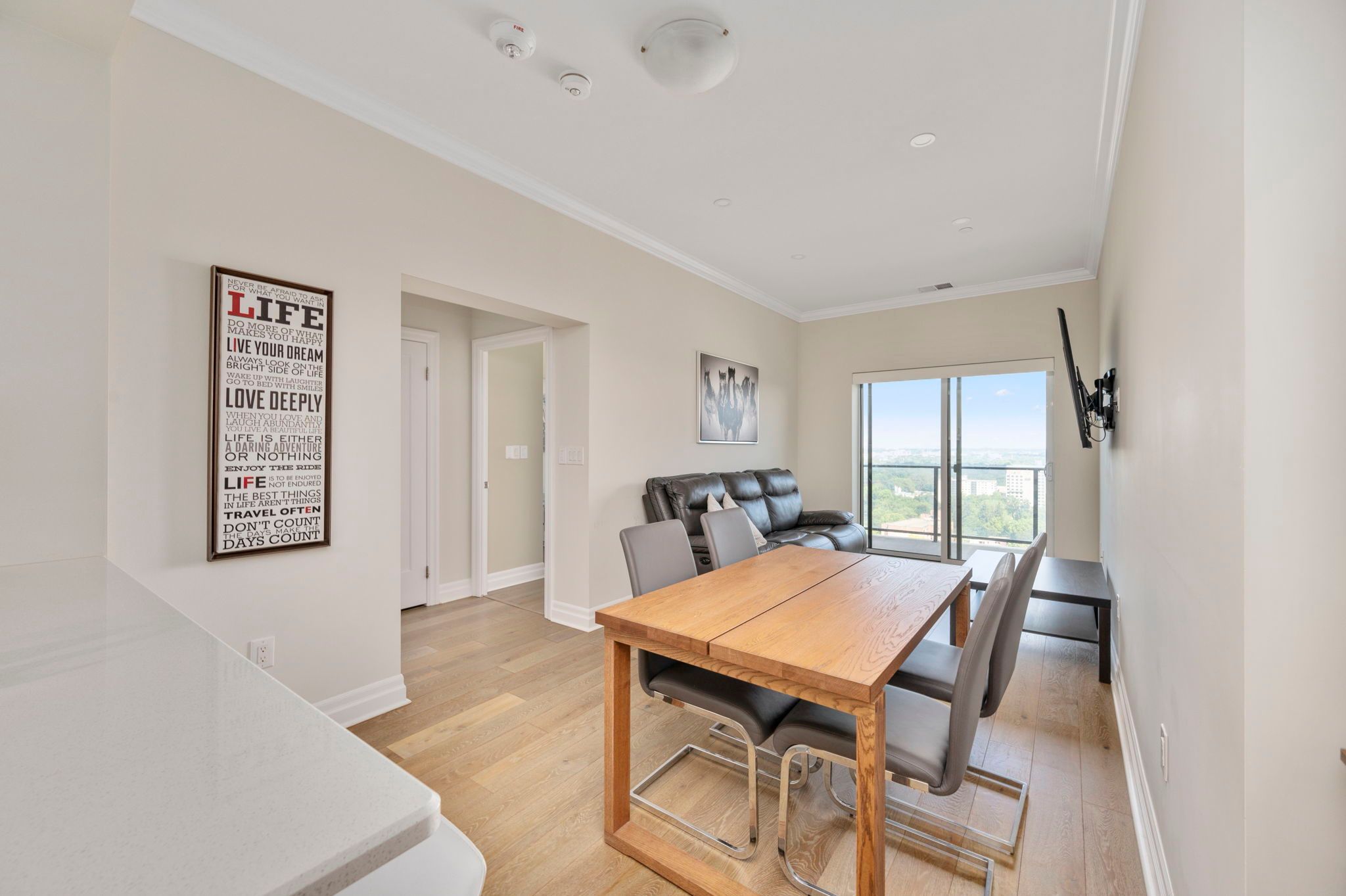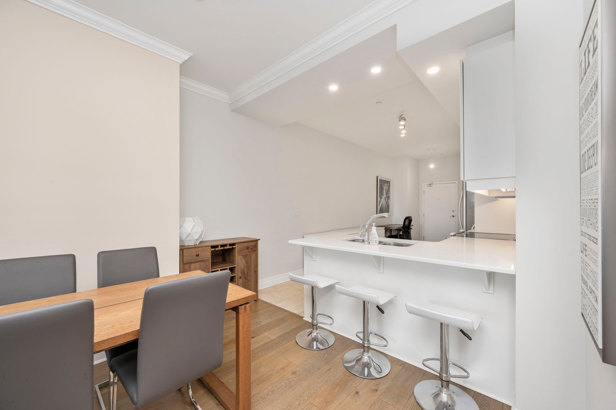 • Open concept kitchen features high-end finishes with stainless steel appliances.