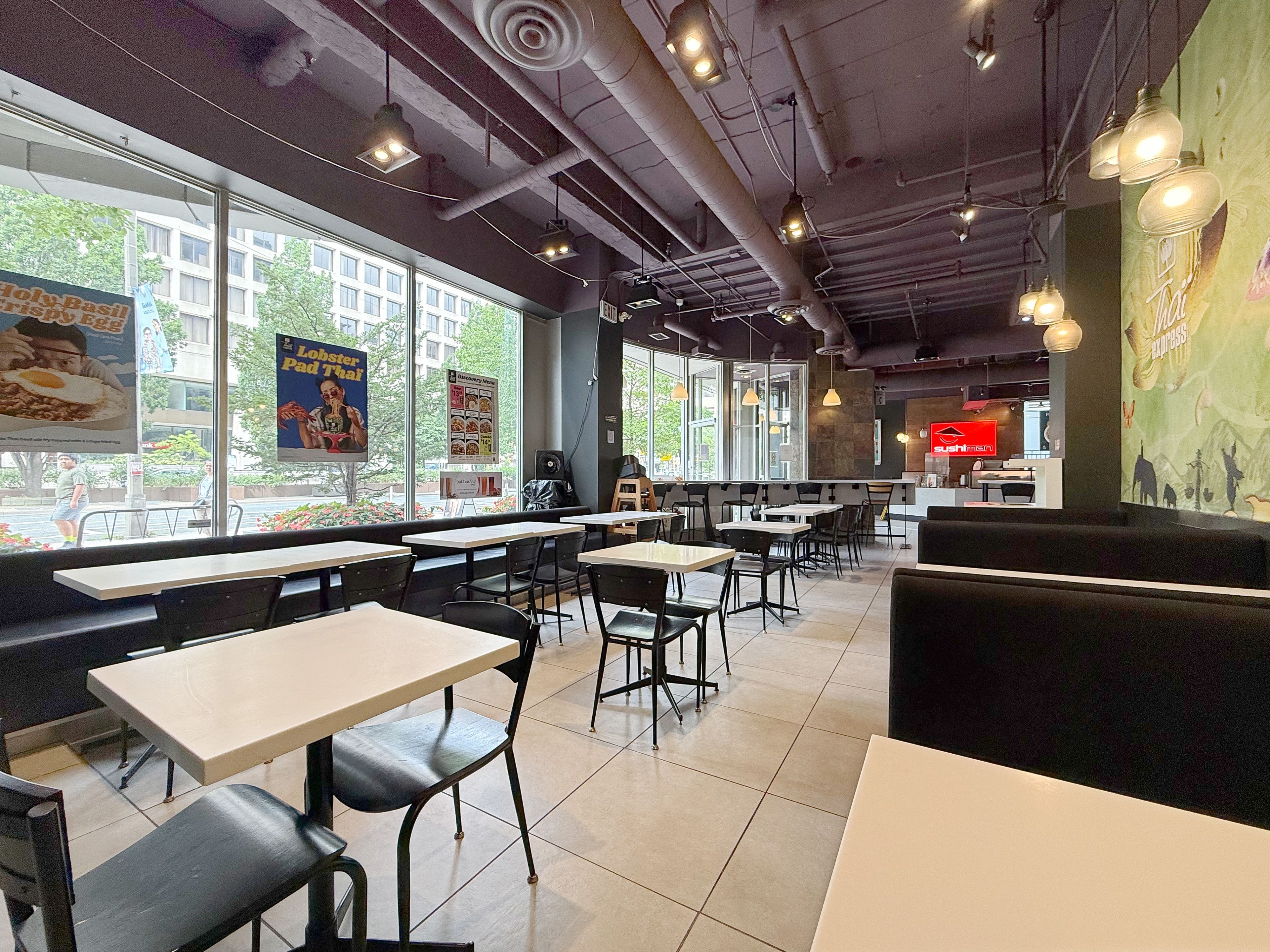 Rare opportunity to own a profitable 2-in-1 fast food franchise in one of toronto's busiest and most high-demand locations 505 university avenue. Situated on the ground floor with over 150 feet of high-exposure street frontage, this corner unit benefits from constant foot and vehicle traffic from surrounding hospitals, medical buildings, government offices, schools, and direct subway access. This well-established location features two reputable and in-demand franchise brands thai express and sushi-man offering diverse and popular menu options that cater to both lunch and dinner crowds. The space is modern, clean, and lined with large windows, maximizing natural light and street visibility. All equipment and chattels are included in the sale. Strong franchise support, proven systems, and an ideal downtown hub location make this a smart investment for owner-operators or investors looking for a cash-flowing business with significant growth potential. Don't miss this opportunity to step into an established dual-brand franchise with prime exposure in the heart of toronto's health and business core.