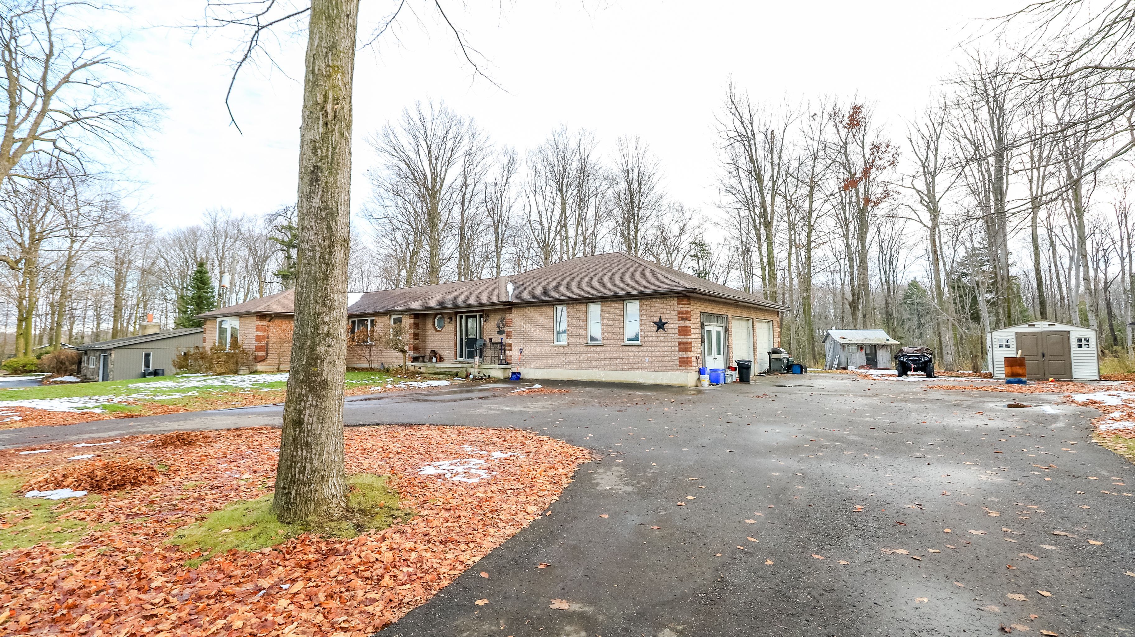 Welcome to this lovely property just outside of shelburne! 2. 87 acres.... But also so close to so many amenities! This 4 bedroom bungalow gives you so many opportunities! Spacious main floor with large living room, dining room and eat-in kitchen, and inside entry to your 3 car garage! 4 bedrooms.... Primary includes access through your den (great for an office or nursery!), it's own ensuite and walk-in closet!... Plus main floor laundry, another full bath with soaker tub and an additional powder room. The partially finished basement has so much potential! So much room to finished as a rec room with additional bedrooms, or make it into an in-law suite with the already set up kitchen and 2 piece bathroom. Outside gives you a deck, lots of room for bonfires and ample storage with 3 separate workshops/sheds, plus a large circular driveway..... Room for all the toys and accessories.