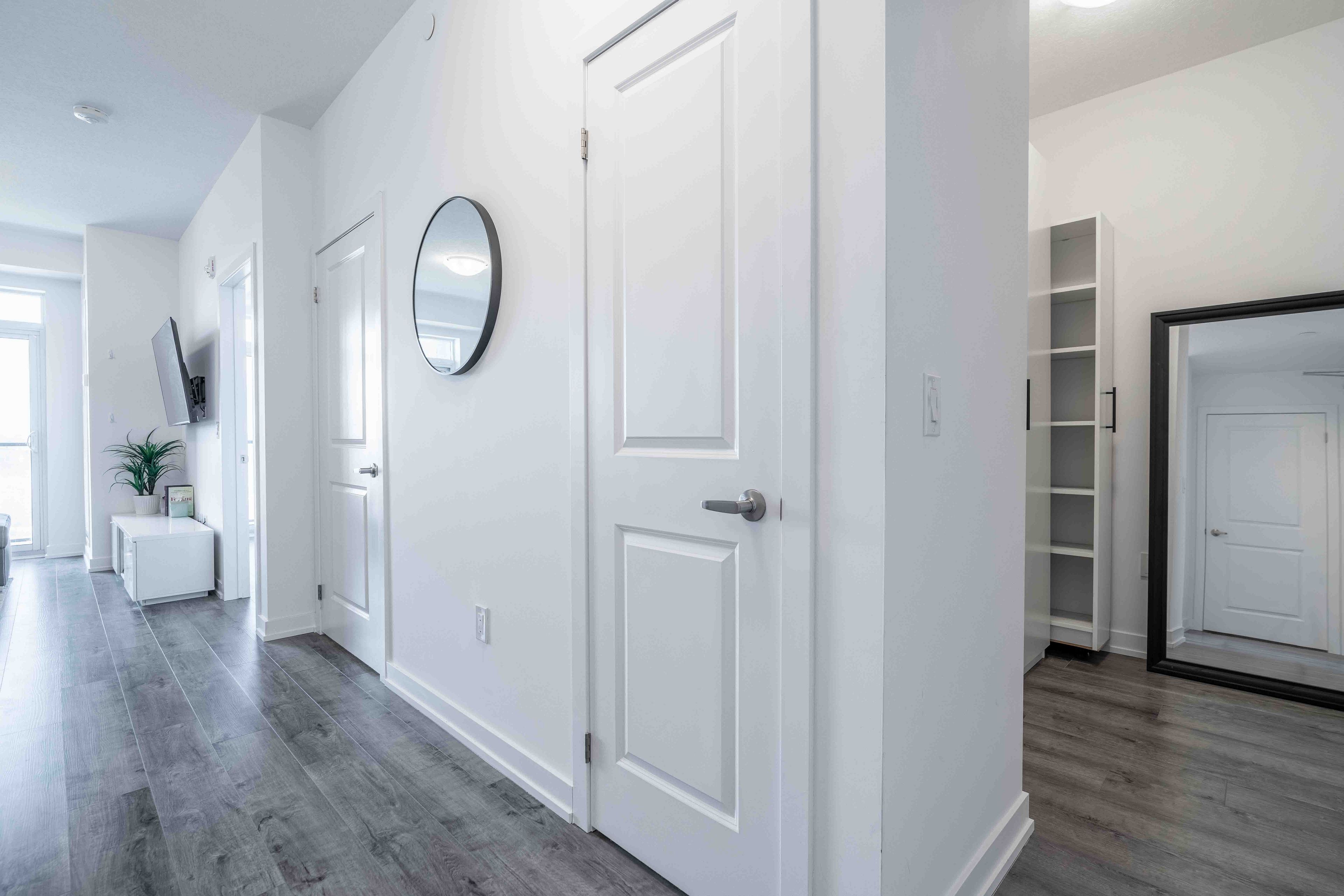 Welcome home to your spacious new condo in the highly desirable utopia building in beautiful beamsville. This stunning open-concept 1 bedroom+ den corner unit is loaded with upgrades including quartz countertops, stainless steel whirlpool appliances, a breakfast bar, and luxury vinyl plank flooring throughout. Enjoy your morning coffee on the extended-length balcony with access from both the living room and the bedroom. The building offers fantastic amenities, including a party room, fitness room, rooftop terrace, and bike storage and features a state-of-the-art geothermal heating and cooling system designed to help keep utility costs low. Perfect for first-time buyers, downsizers, or investors, this unit is conveniently located close to the highway, shopping, restaurants, wineries, and the go station. Includes one owned locker and one owned underground parking space.