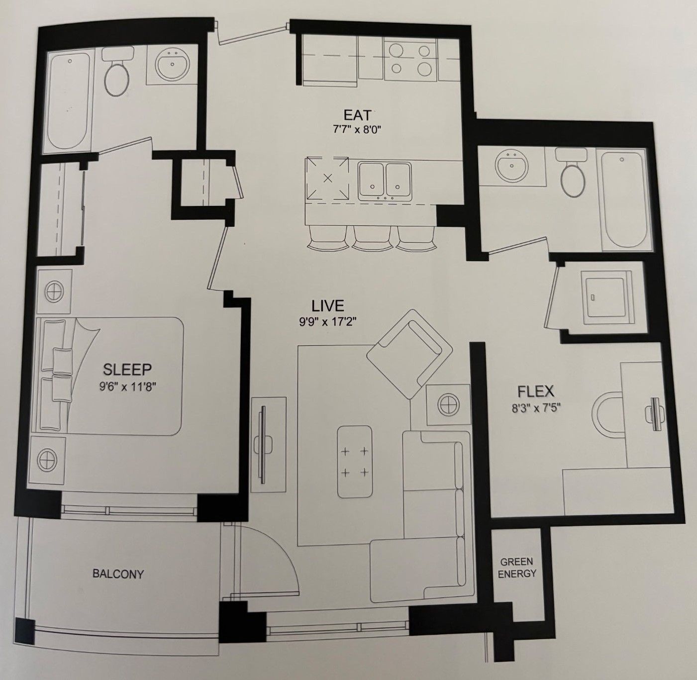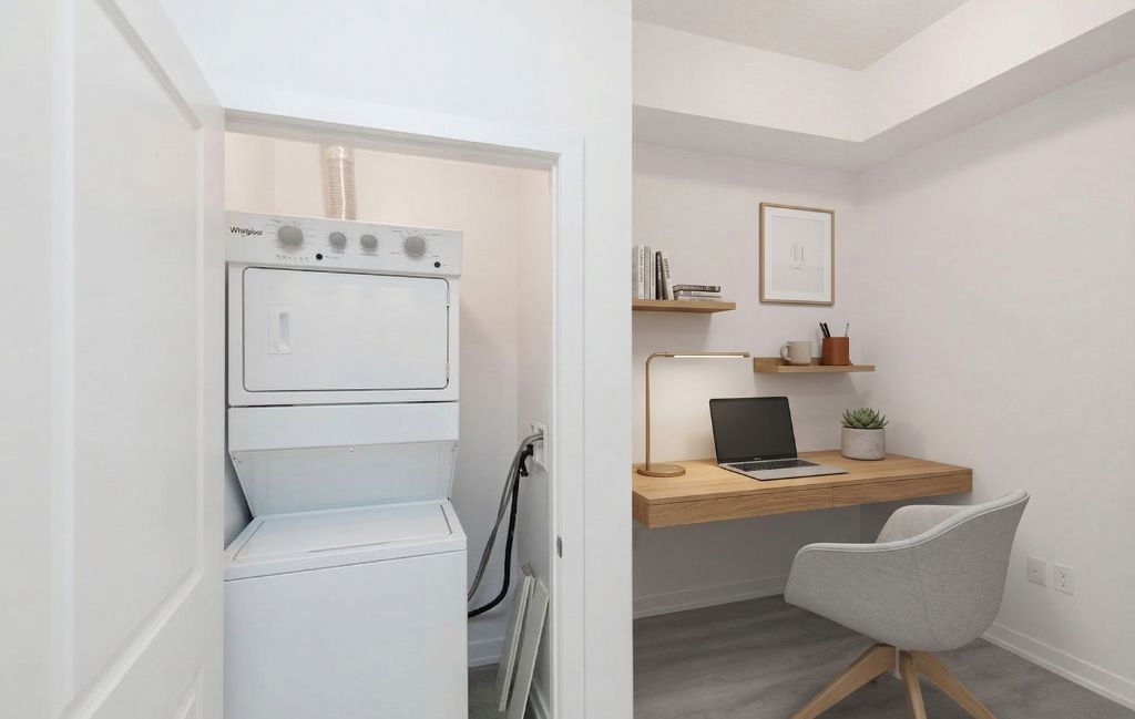 • Rare 1-bedroom plus large den layout with two full bathrooms.