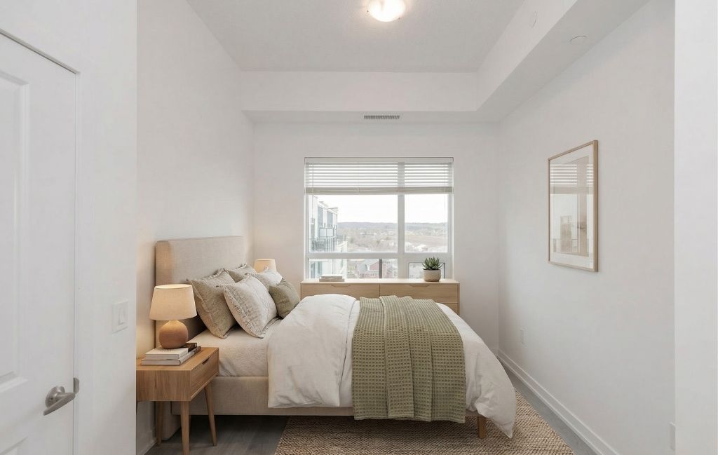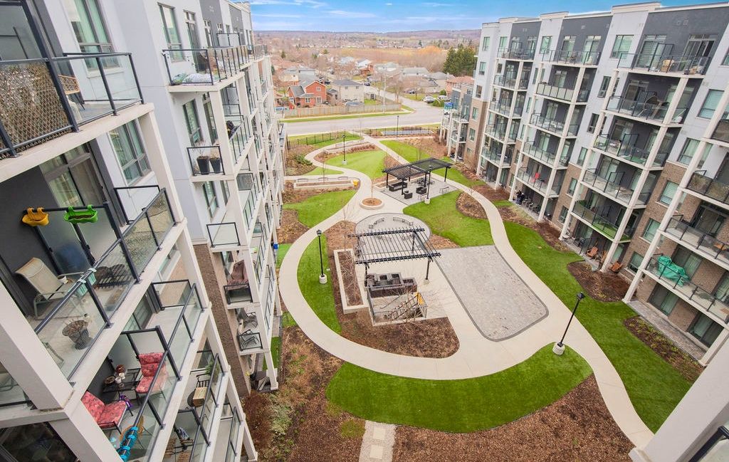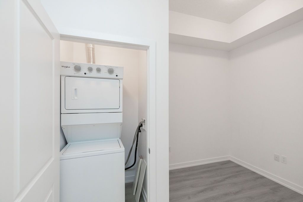Welcome to comfortable condo living in the sought-after utopia condominium in beamsville. This rare 1-bedroom plus large den layout features two full bathrooms, offering added convenience for residents and guests. With 9-foot ceilings and an open-concept design, the unit provides a bright and functional living space. The spacious den is well-suited for a home office or additional living area, while the private south-facing balcony overlooks the courtyard. The unit includes stainless steel appliances, pendant lighting over the island, and in-suite laundry. A storage locker is conveniently located on the same floor as the unit. Building features include parcel delivery to the unit, garbage chutes on each level, and one underground parking space. Residents have access to amenities such as a party room with terrace and a fitness centre. Geothermal heating and cooling are included in the monthly rent.