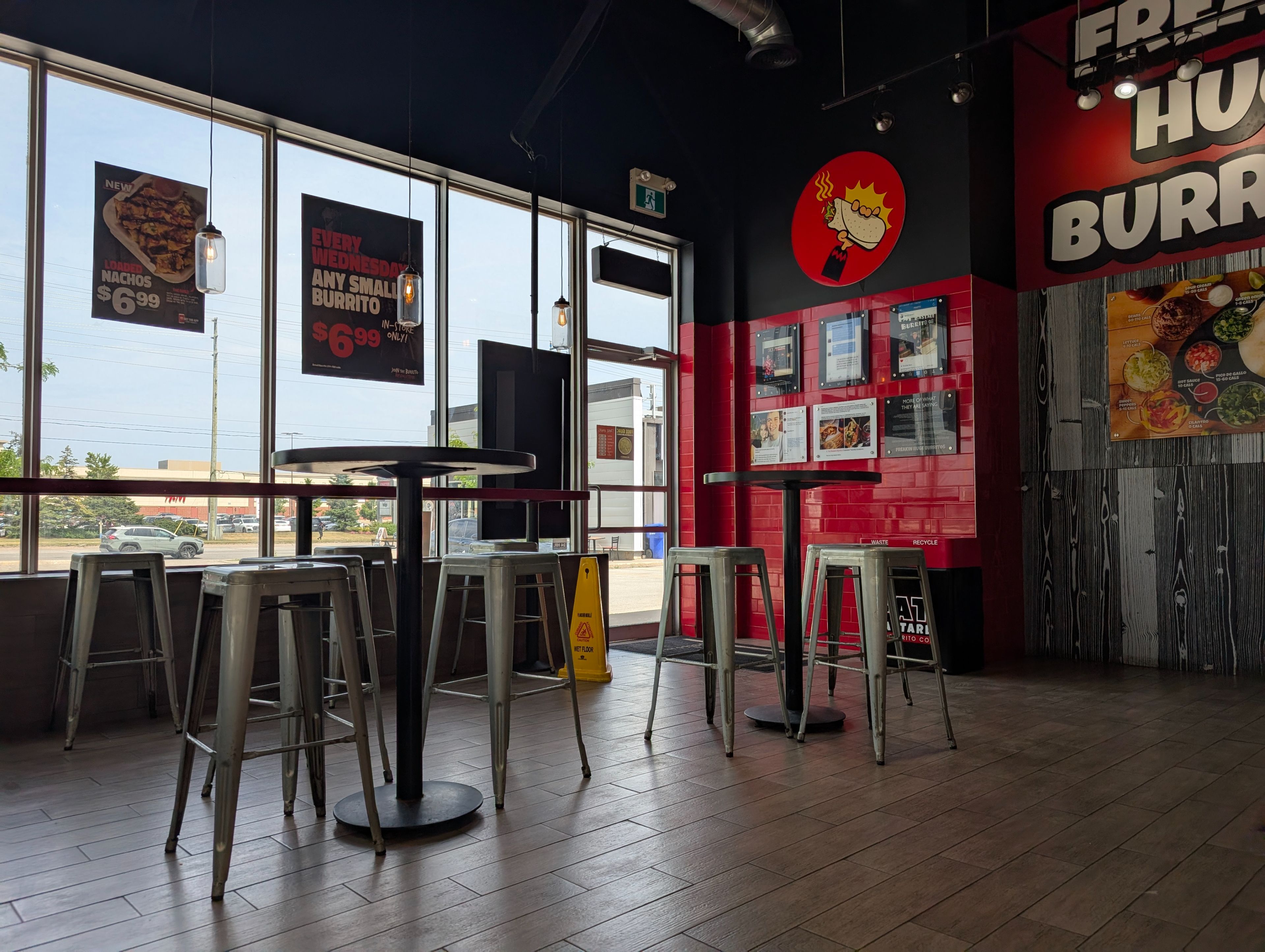 Fat bastard burrito business on busiest commercial street in barrie, ontario for sale. Surrounded by mega retailers like walmart, bayfield mall and more, this location is pure gold for the right operator. One of the highest car pass by rates in simcoe county on bayfield with great visibility facing right on bayfield. Georgian college nearby boosts business with thousands of students enrolled and attending. Amazing potential by extending the hours of operations to late night. Sq feet -1261rent $3282. 64 tmi hstroyalty -8+2inventory not included in the price. Seller relocating to us due to family ties