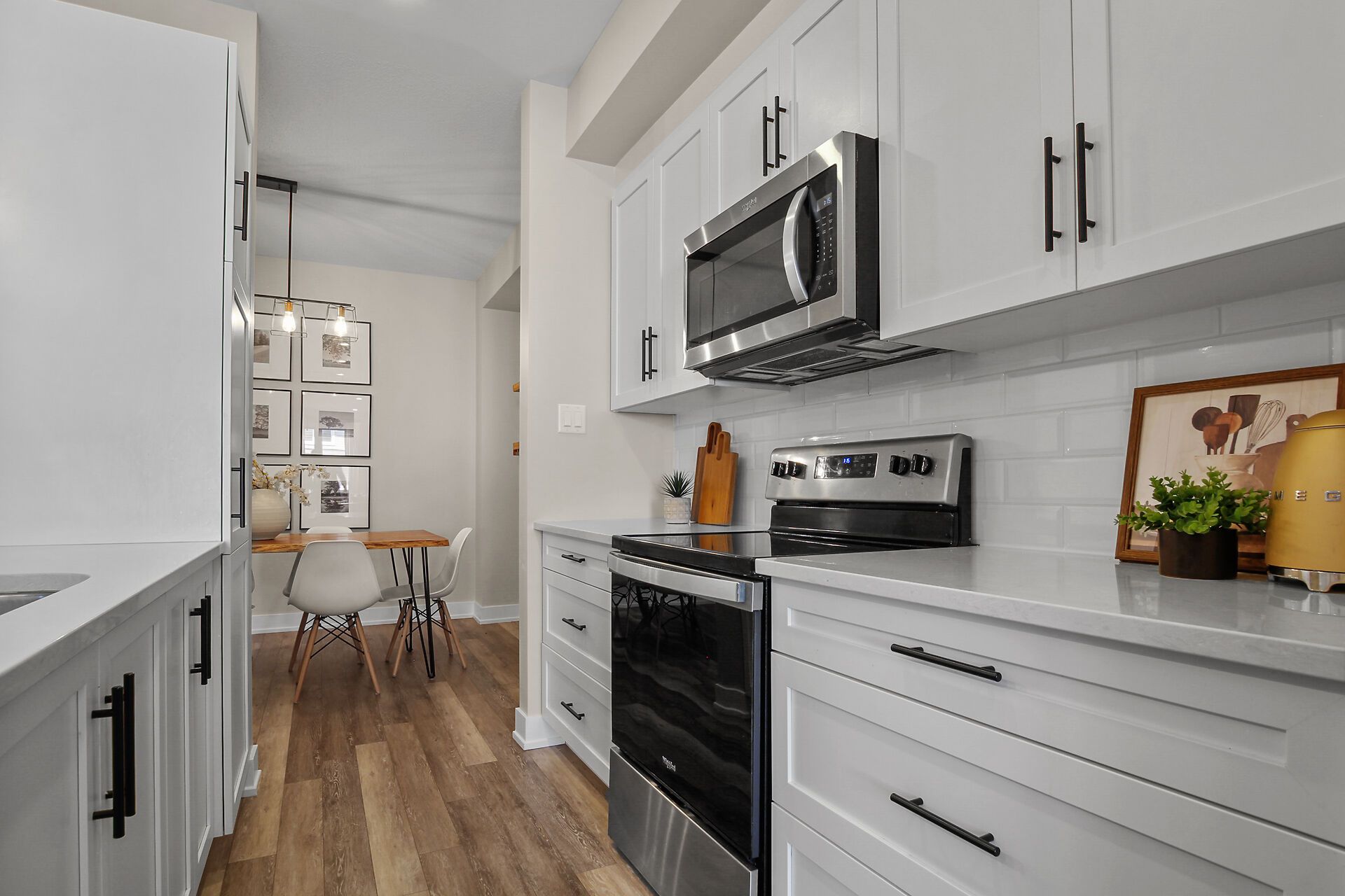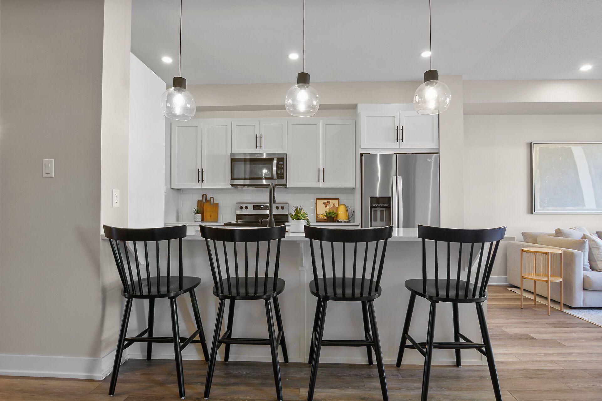 • Chef's kitchen with quartz countertops and breakfast bar for casual dining.