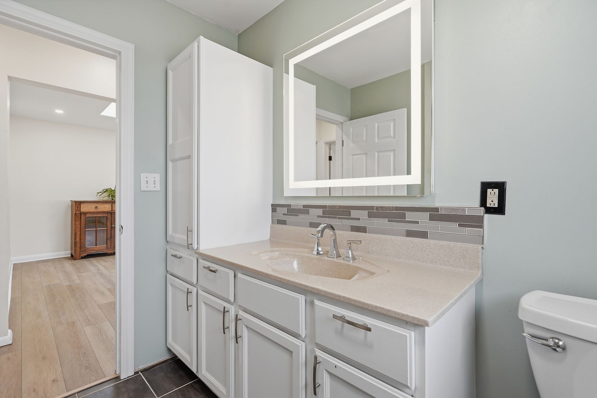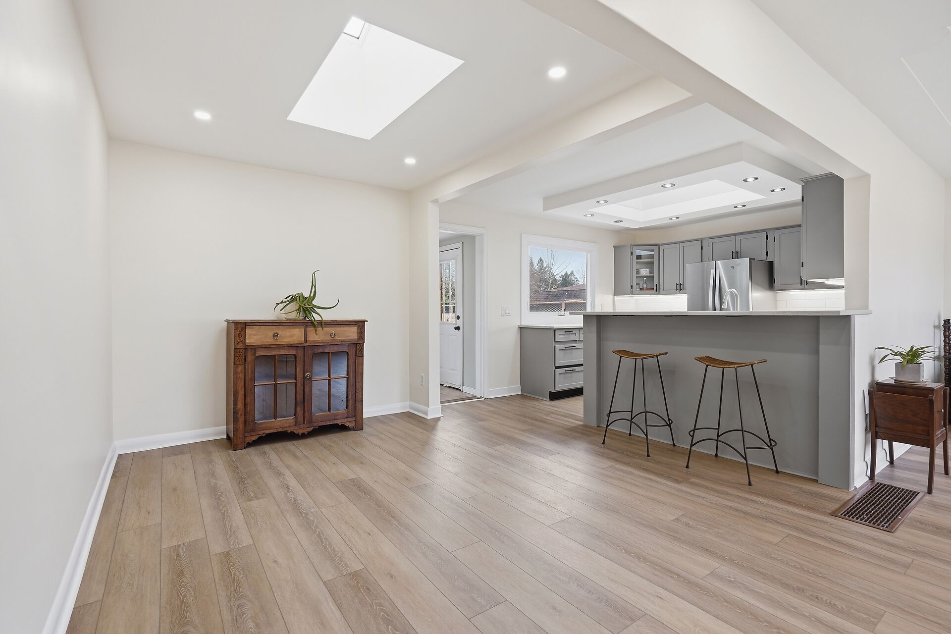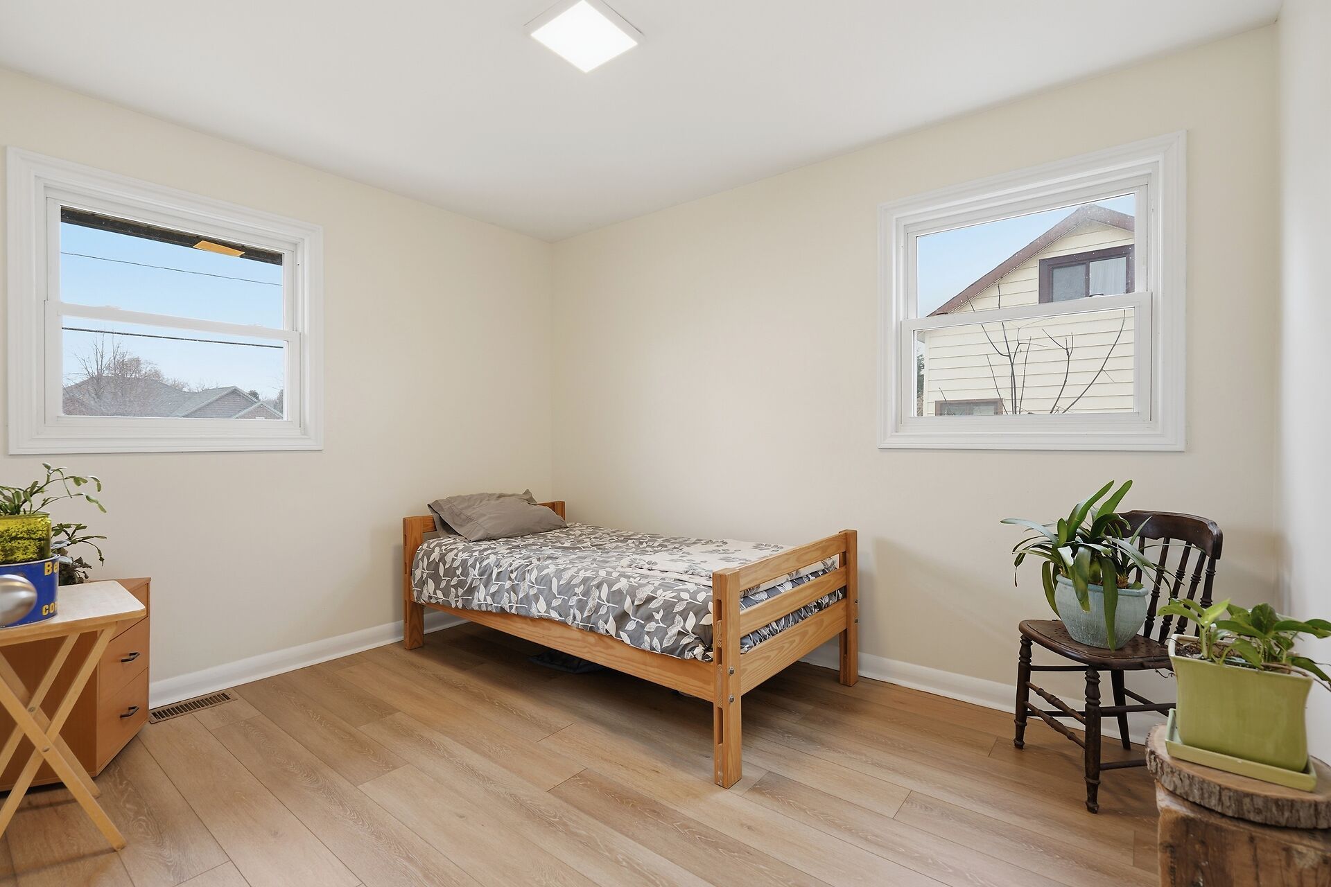 • Updated bungalow with three spacious bedrooms and two full bathrooms.