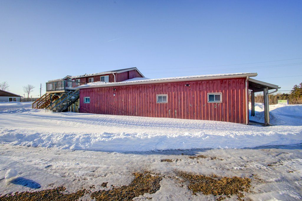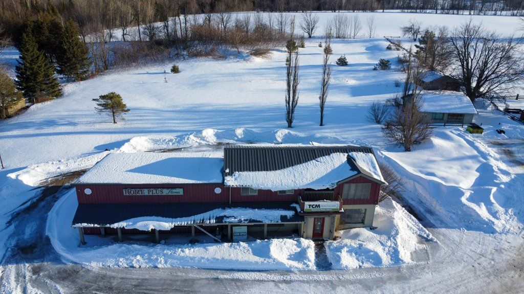 Highway commercial, 2. 98 acres, 3600 sq ft total lg store showroom, offices 2 washrooms w 3 bedroom, one bathroom, 2nd floor apartment, shed, 1 car garage lg yard great exposure on highway 89/10 coming into shelburne at primrose, close to country cabin restaurant, highland motel, garden centre, champ burger, super burger, subway & petro canada plenty of parking & wrap around driveway to the back of the building. Commercial space is 2500 sq ft covered patio front entrance comes into the large showroom, with large display windows for natural light. 2nd large showroom both with warm wood walls. Convenient second side entrance into the office space with x 2 doors, one covered, has 3 office spaces, plus a lg reception/office the hallway which leads into the store showrooms. Many options for rental, can be divided up into smaller units or all one main floor user main floor has several doors into the units and could add more doors if needed. Large back yard that has some trees and space to have outside events, storage etc. One residential 3 bed one bath living quarters/apartment above. Live and work opportunity. Investment opportunity! Large yard space is open for other opportunity to build, expand or lease out. Second floor was built with pana-bode style log construction, out side has stucco and wood siding, metal roof, front store covered porch, upper back deck and front covered deck. Upper unit has cathedral wood ceiling with wood beams. Interior pretty wood log walls. Cozy county 1100 sqft living quarters on the second floor entrance from the back with stairs to a good sized deck. Cathedral ceiling living room with large windows and a gas fireplace. Three good sized bedrooms with large windows, one three piece bath with walk-in glass shower. Self contained laundry room, separate hot water tanks on both levels. Separate hydro meters for each floor. Air-conditioning on the main level. Forced air gas heat on main level floor plans are in the photos and attached.