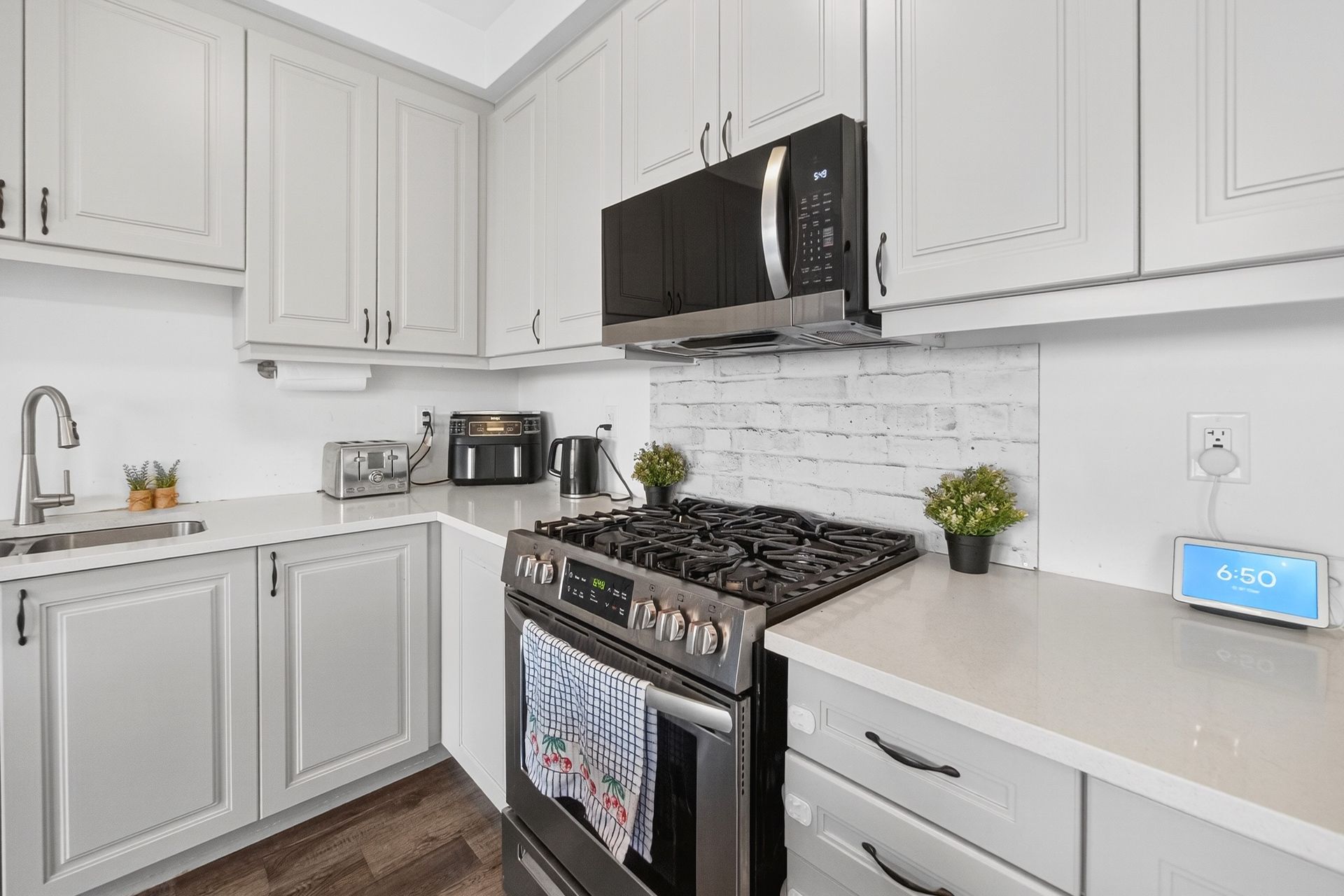 • Upgraded kitchen with granite countertops and stainless steel appliances.