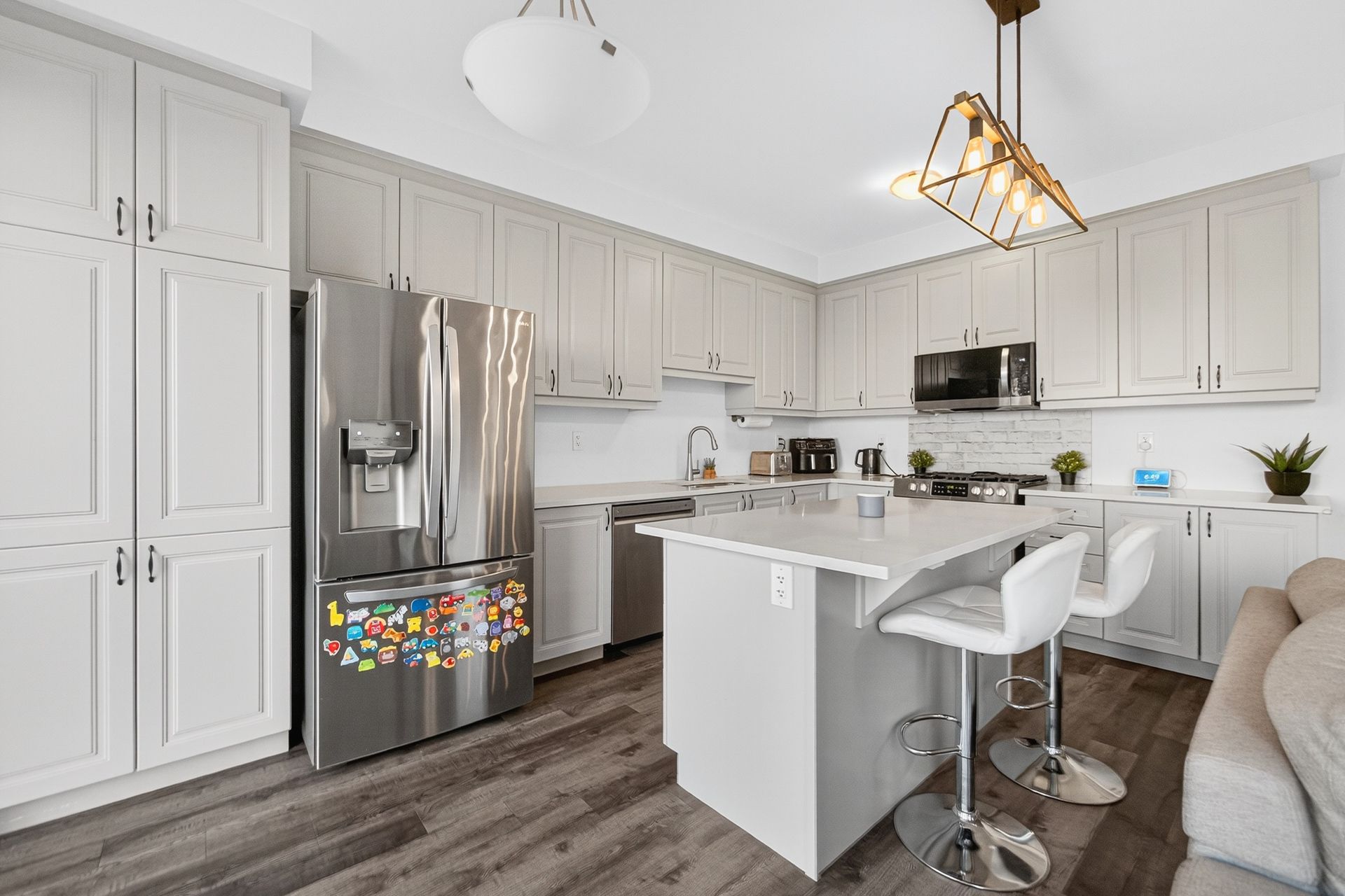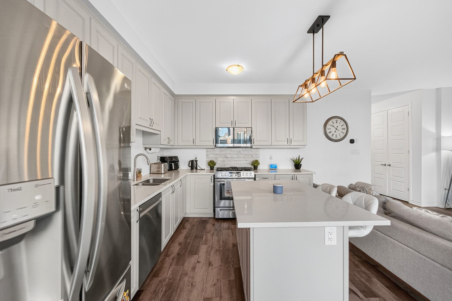 Welcome to 507 bellflower court, an elegant and beautifully appointed freehold townhouse set in one of milton's most sought-after neighbourhoods. This stunning 2-storey residence offers 3+1 bedrooms and 3 bathrooms, showcasing a bright, sophisticated open-concept layout that perfectly balances comfort and style. The main level features a beautifully upgraded kitchen with granite countertops, stainless steel appliances, a gas stove, and generous cabinetry, flowing seamlessly into the spacious living and dining areas designed for both everyday living and effortless entertaining. Thoughtfully finished throughout, the home also offers the convenience of upper-level laundry, well-proportioned bedrooms, and versatile additional living space ideal for a home office, guest suite, or recreation area. Step outside to enjoy a private fenced yard, while the attached garage and driveway provide parking for two vehicles. Ideally located close to top-rated schools, scenic parks and trails, shopping, milton district hospital, and with quick access to highways 401 and 407, this exceptional home offers the perfect blend of luxury, convenience, and family-friendly living.