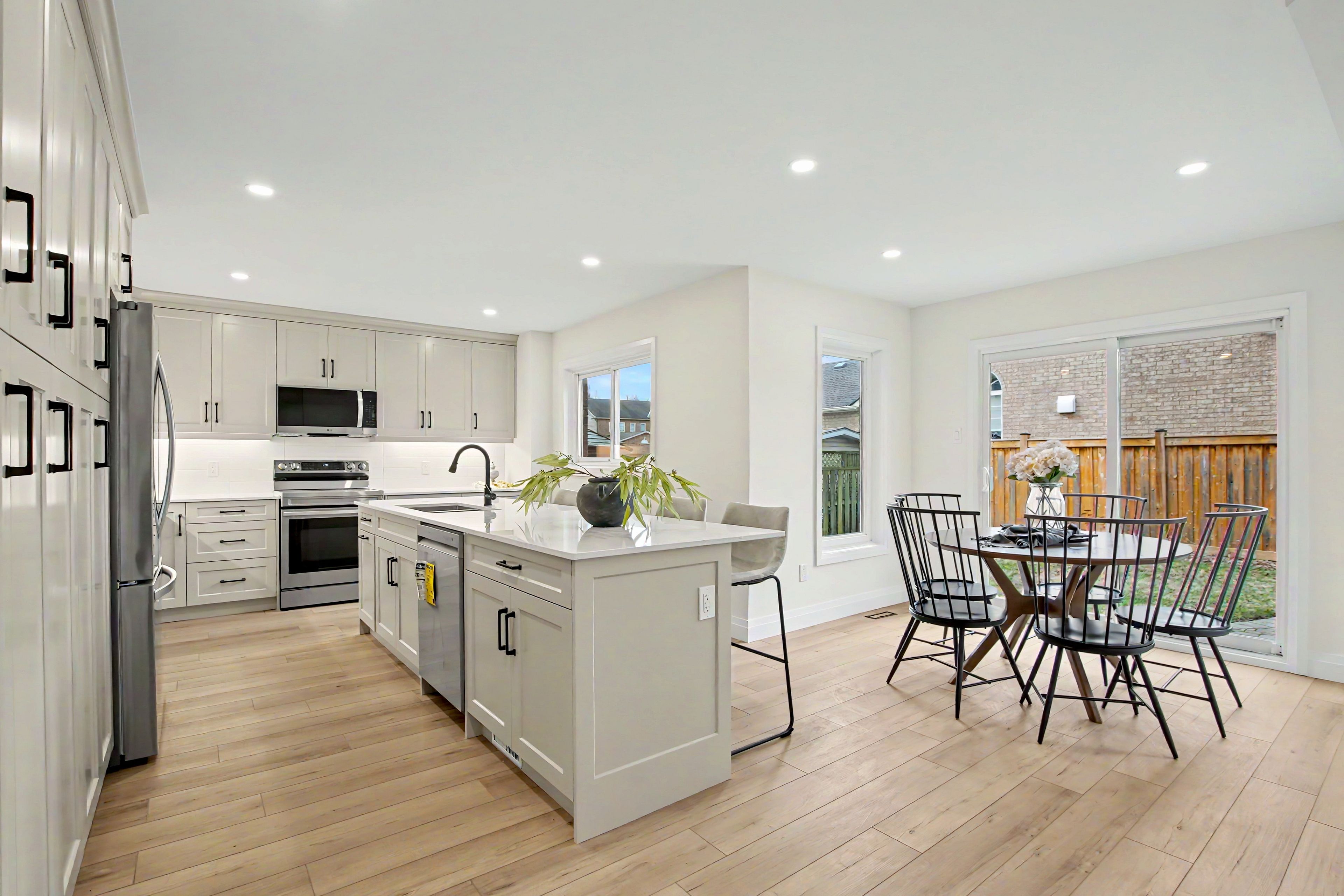 Welcome to this beautifully remodeled all-brick, 2-storey detached home in the sought-after, family-friendly west galt neighbourhood that delivers everything today's buyers are chasing. Featuring 3 bedrooms, 3 bathrooms, and a flawless modern layout, this is true move-in-ready living with zero compromises. The main floor is a showstopper-bright, open-concept, and anchored by a statement kitchen with a massive island (the true heart of the home), plus a dedicated home office and main floor powder room. Entertain with ease or unwind in style with a walkout to your fully fenced backyard. Everyday convenience is covered with a mudroom off the double car garage. Upstairs, the upgrades continue with upper-level laundry and a stunning primary retreat featuring a luxurious 5-piece ensuite and walk-in closet. Extras that seal the deal: double car garage + private double-wide driveway, and an unspoiled basement ready for future value. Location is unbeatable-just 10 minutes to the 401, surrounded by top-rated schools, parks, and every amenity a growing family needs. Homes like this don't sit-they sell.