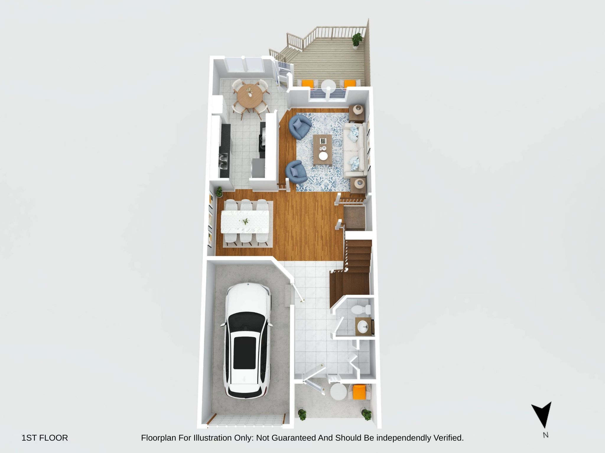 • Updated two-story layout featuring three bedrooms and three bathrooms.