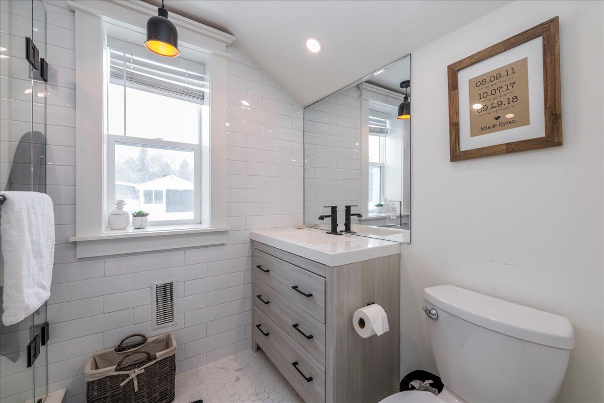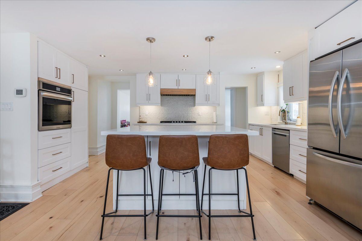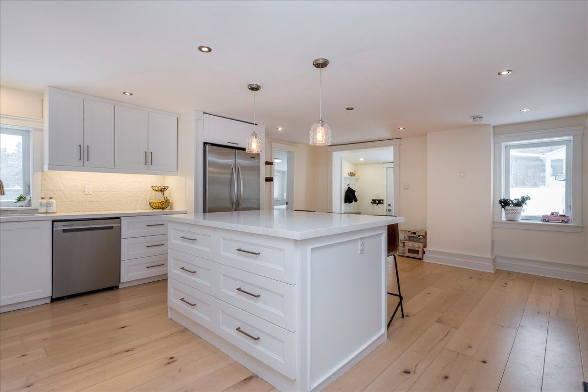 Fully renovated century home on a deep, private lot! Completely renovated from top to bottom, this exceptional century home blends timeless character with modern efficiency and high-end finishes. Situated on a fully fenced 75' x 125' lot backing onto open fields, the property offers privacy, space, and turnkey confidence. The home features 3 spacious bedrooms, each with its own 3-piece ensuite, ideal for families or multi-generational living. New engineered hardwood flooring flows throughout, complemented by all new windows and doors. The heart of the home is the impressive 20' x 22' great room with vaulted ceilings and heated floors, designed for comfortable everyday living and entertaining. The chef-inspired kitchen offers quartz countertops, a separate pantry room, gas cooktop, electric wall oven, and new dishwasher. Outdoor living is equally refined with a 12' x 30' deck with glass railings, interlock patio (2024), and natural stone front walkway and steps. Additional features include parking for 4 cars, a 20' x 22' workshop/garage, and a new 8' x 10' storage shed (2025). Extensive mechanical upgrades include a high-efficiency furnace (2024), owned hot water heater (2025), uv water treatment & softener (2023), and new cast iron sump pump (2025). Roof, electrical panel & wiring previously updated; a/c 2020. See attached feature & renovation list for full details!