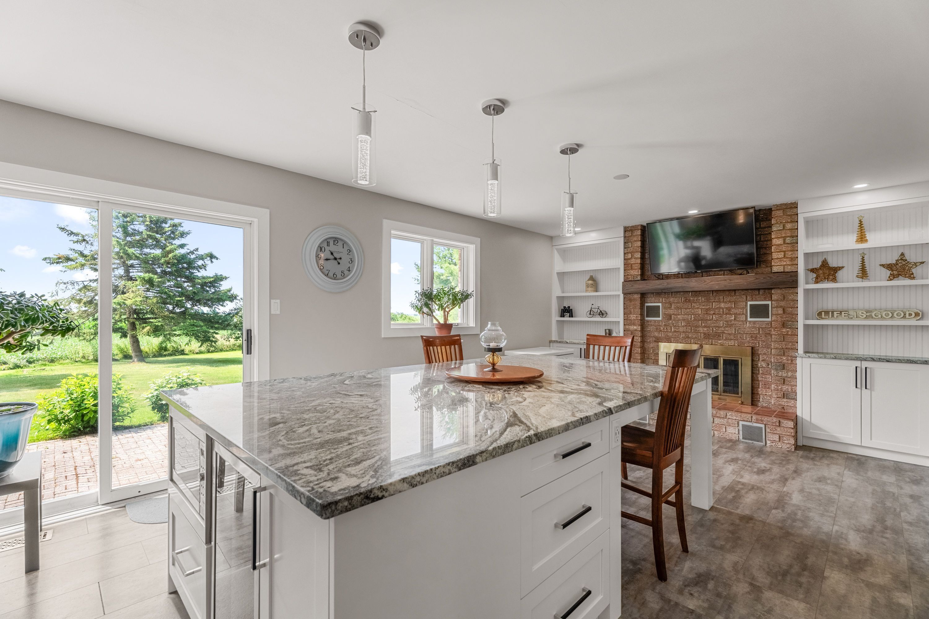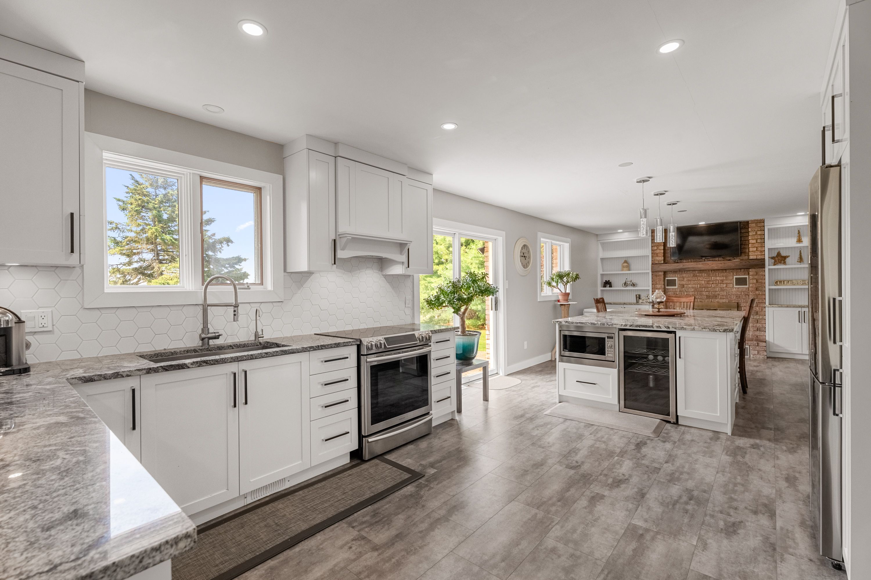 This property features premium geothermal heating and cooling-providing year-round comfort with no gas, propane, or oil bills. Welcome to 5073 rushmore road, an all-brick private country oasis on 2. 79 acres, surrounded by mature trees, natural beauty, and peaceful surroundings. The property also borders a quiet stream, adding to its exceptional sense of tranquility. Inside, this beautifully maintained 4-bedroom, 2. 5-bath home offers a bright, open layout with upgraded flooring and fresh paint throughout. All four bedrooms are located upstairs, making it ideal for families. The renovated 2019 kitchen is the centerpiece of the home, featuring a 5' x 9' granite island, custom cabinetry, tons of cupboard space and storage, and a built-in wine bar-perfect for everyday living or entertaining. A brand-new water softener and filtration system offers added comfort and peace of mind. The primary bedroom includes a 3-piece ensuite with a stand-up shower. The lower level features egress windows and a private entrance, making it ideal for conversion into a studio-style suite for extended family or potential extra income. The land is beautifully landscaped with mature trees and a large number of decorative evergreen and christmas trees-creating a setting that feels both scenic and private without calling it a tree farm. Additional highlights include: geothermal heating and cooling private well (no water bill) brand-new water softener + filtration system central vacuum system oversized double garage with dual access to kitchen and basement all-brick construction abundant mature trees and evergreen plantings-a naturally peaceful, picturesque setting. Ideally situated just north of richmond, south of kanata, and west of barrhaven, with quick access to highway 416, old richmond road, and fallowfield road. This location offers a perfect balance of privacy, convenience, and nature.