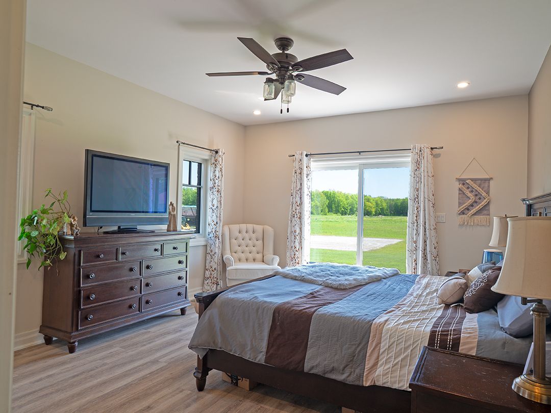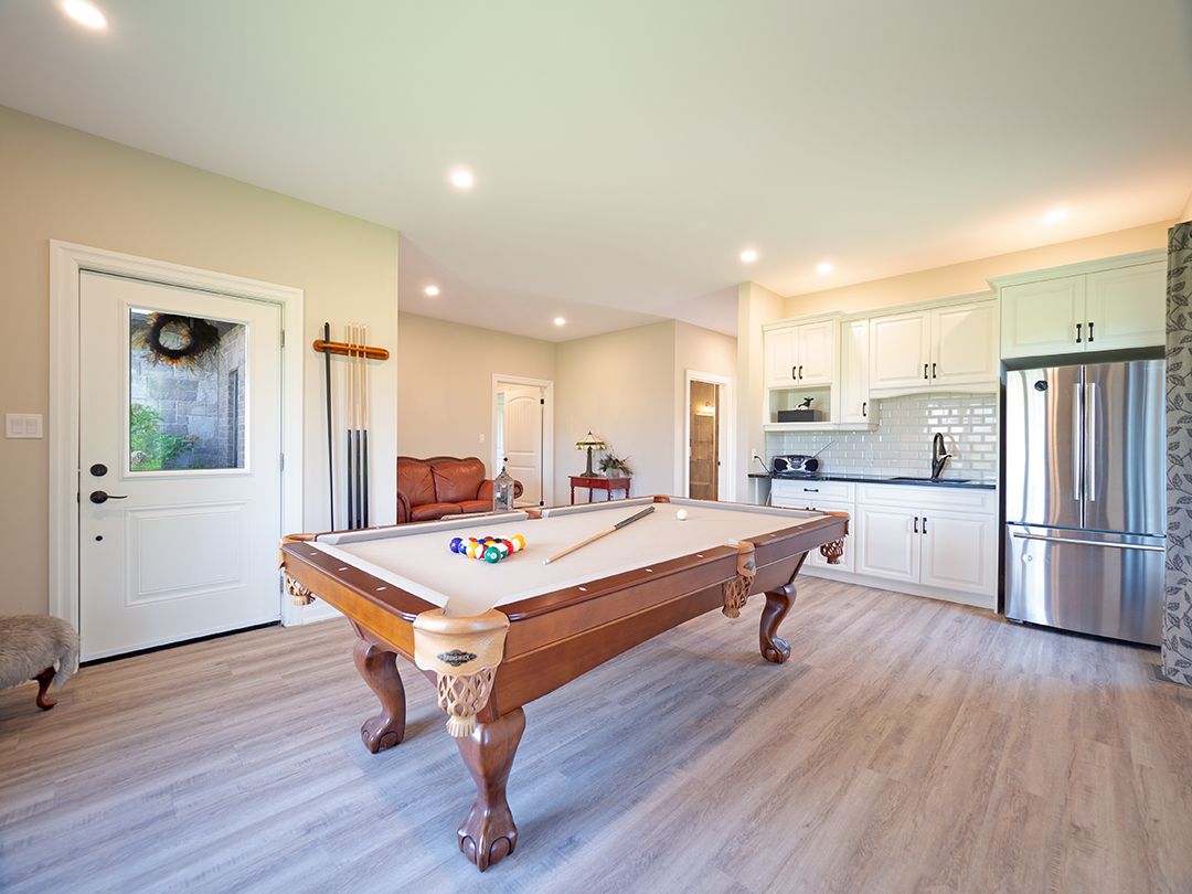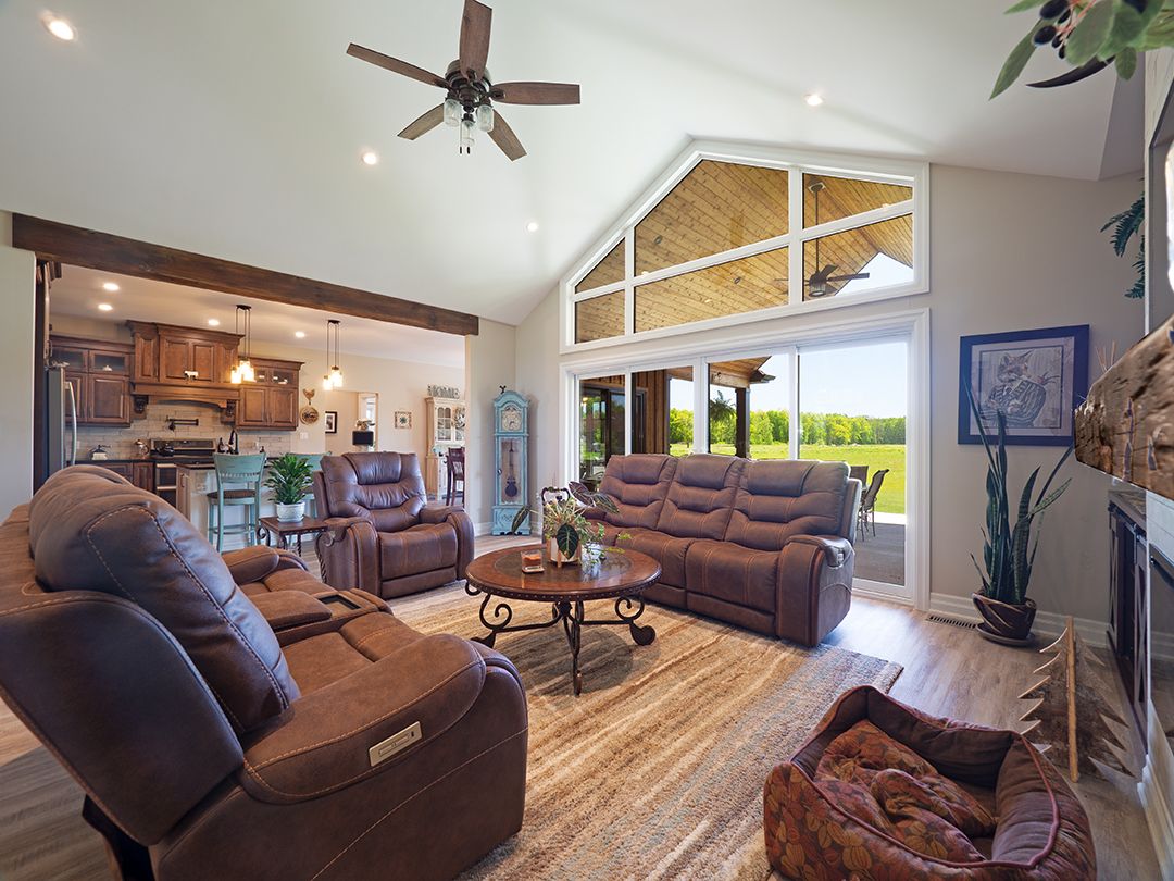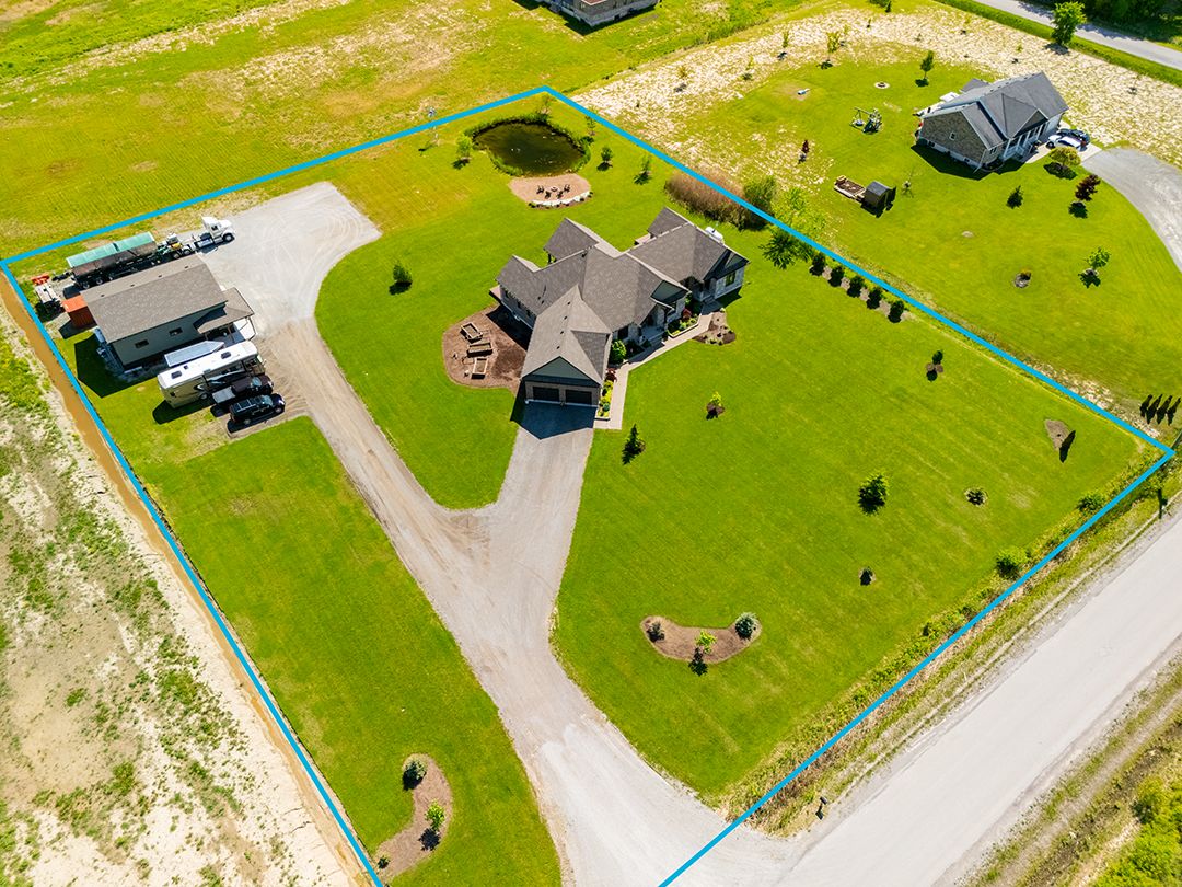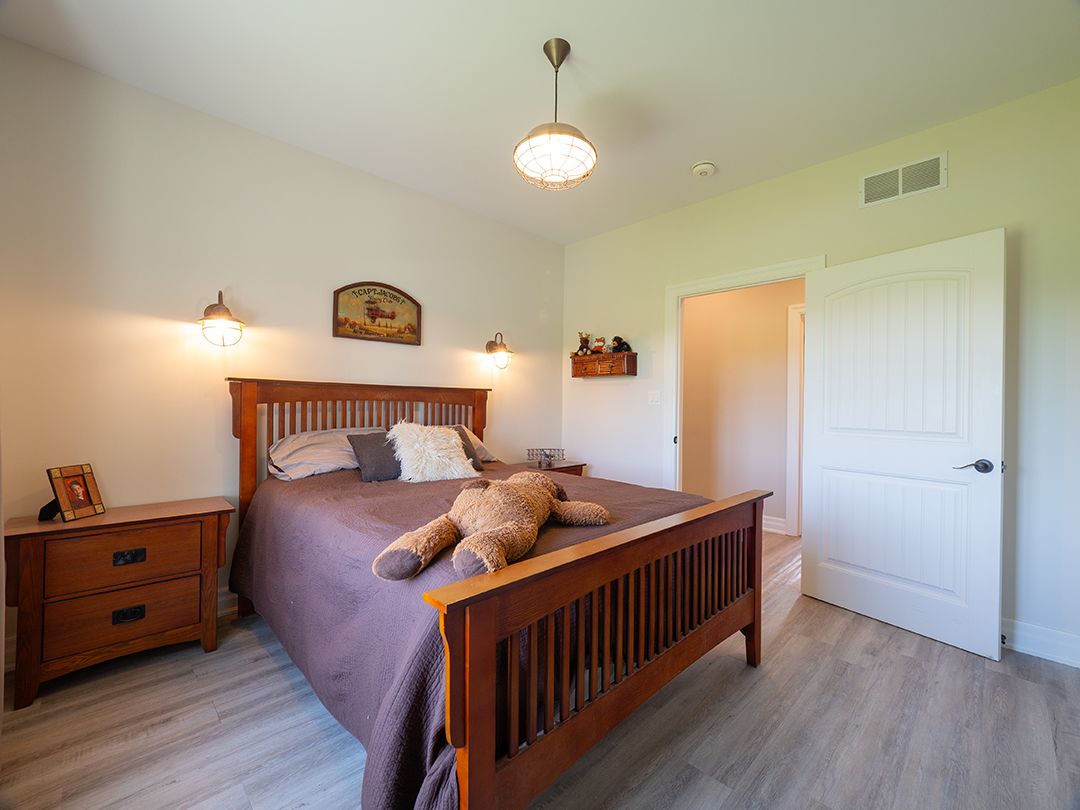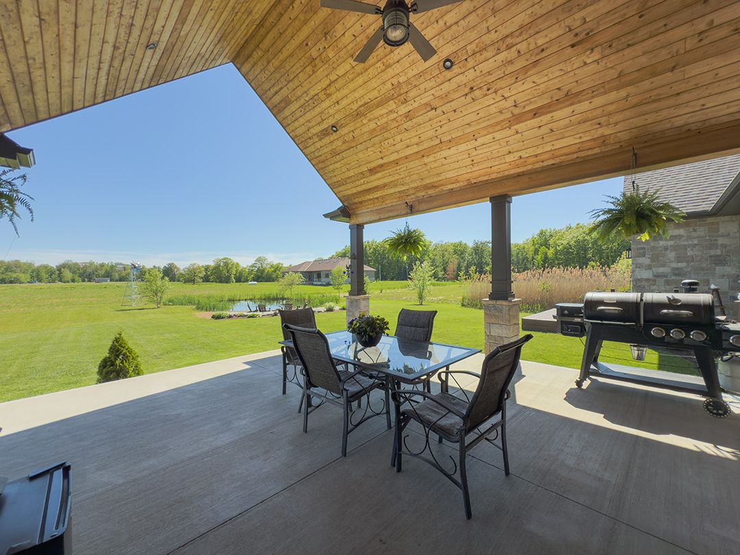 Carefully designed, custom-built bungalow offering nearly 3,000 sqft of main floor living with 4 bedrooms, 3 bathrooms, and a full, unfinished basement on beautifully landscaped 2. 11 acre lot. A 32' x 40' detached garage/workshop that's fully outfitted with an auto hoist, compressor and airlines, overhead heater, concrete floor, and 200 amp service is an added bonus! The home's layout was purposefully planned with two distinct living areas-an east wing & a west wing. The east wing features the primary suite, complete with a large walk-in closet, luxurious five-piece ensuite, and direct access to the backyard deck and hot tub. The west wing functions as a fully self-contained in-law suite with its own separate front entrance, spacious living room with kitchenette, bedroom with sliding doors to the backyard, laundry closet, and a three-piece bathroom with a zero-entry walk-in shower. At the heart of the home is an expansive open concept kitchen, dining, and living area that ties everything together. The oakridge premium kitchen is outfitted with granite counters and opens onto a bright dining room with sweeping backyard views. The living room is anchored by a stone fireplace and features vaulted ceilings with dramatic two-storey, floor-to-ceiling windows that lead out to a stunning covered pavilion designed to match the interior vaulted ceiling profile. An attached double garage leads into a large, bright laundry and mudroom with plenty of storage. Accessibility was top of mind in the home's design, with wide 36" doorways and 48" hallways throughout. Energy efficiency is another standout feature, with triple-pane windows, double-pane sliding doors, and on-demand hot water. The outdoor space is just as impressive, with extra parking, a landscaped sandy firepit area overlooking a serene pond with windmill aeration, and the kind of quiet country setting that's hard to find yet close to everything - offering central access to all points in niagara, haldimand, and hamilton