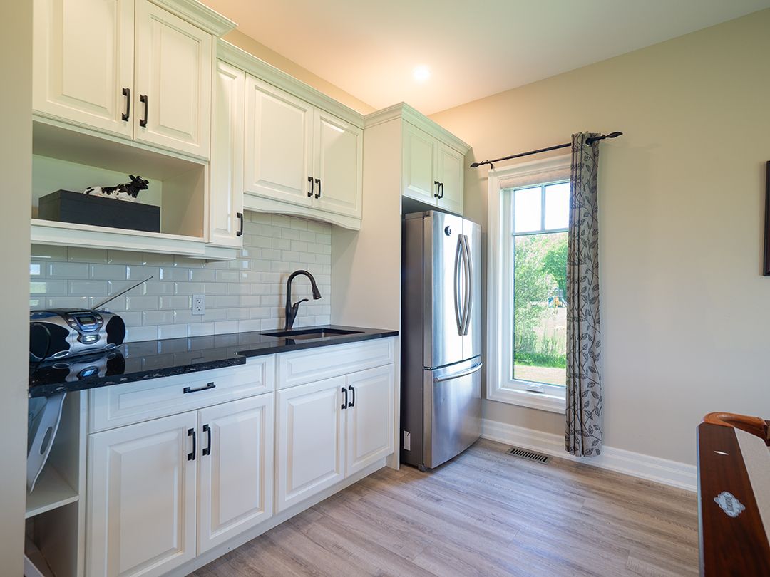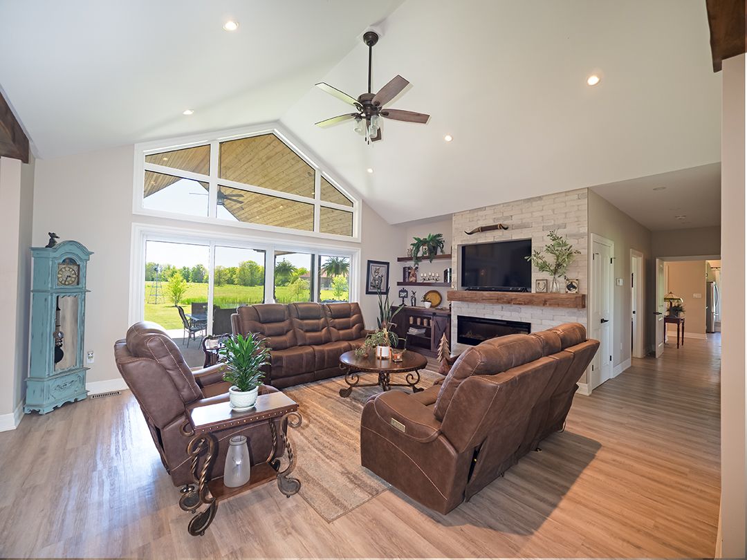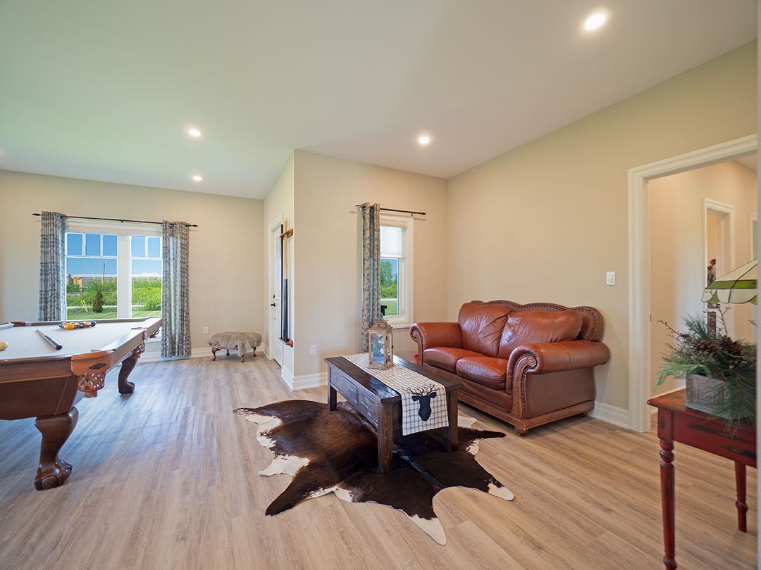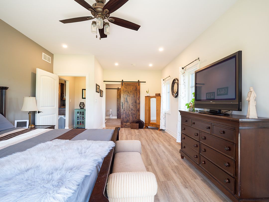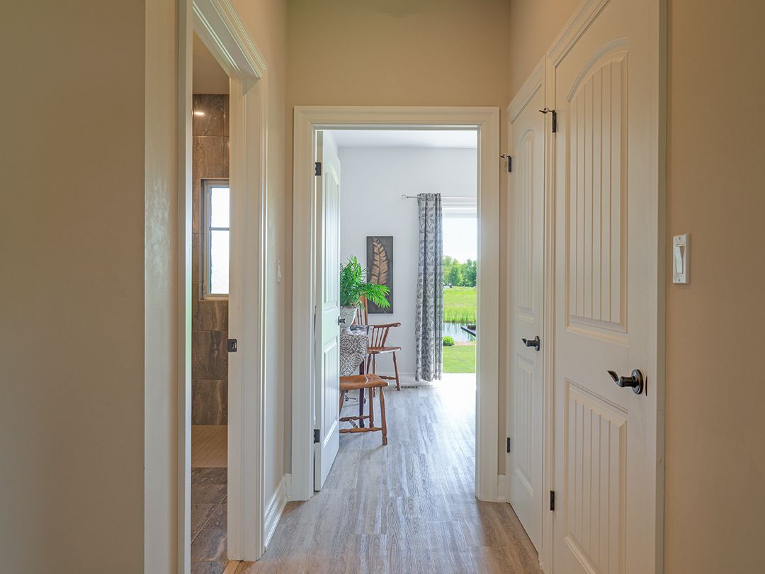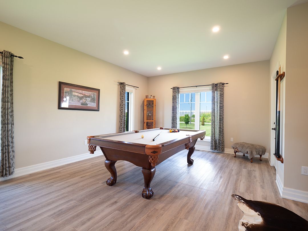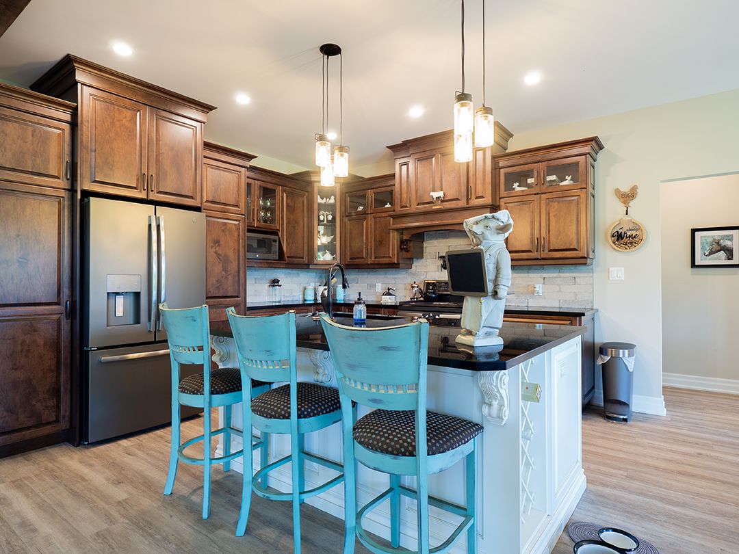 Carefully designed, custom-built bungalow offering nearly 3,000 sqft of main floor living with 4 bedrooms, 3 bathrooms, and a full, unfinished basement on beautifully landscaped 2. 11 acre lot. A 32' x 40' detached garage/workshop that's fully outfitted with an auto hoist, compressor and airlines, overhead heater, concrete floor, and 200 amp service is an added bonus! The home's layout was purposefully planned with two distinct living areas-an east wing & a west wing. The east wing features the primary suite, complete with a large walk-in closet, luxurious five-piece ensuite, and direct access to the backyard deck and hot tub. The west wing functions as a fully self-contained in-law suite with its own separate front entrance, spacious living room with kitchenette, bedroom with sliding doors to the backyard, laundry closet, and a three-piece bathroom with a zero-entry walk-in shower. At the heart of the home is an expansive open concept kitchen, dining, and living area that ties everything together. The oakridge premium kitchen is outfitted with granite counters and opens onto a bright dining room with sweeping backyard views. The living room is anchored by a stone fireplace and features vaulted ceilings with dramatic two-storey, floor-to-ceiling windows that lead out to a stunning covered pavilion designed to match the interior vaulted ceiling profile. An attached double garage leads into a large, bright laundry and mudroom with plenty of storage. Accessibility was top of mind in the home's design, with wide 36" doorways and 48" hallways throughout. Energy efficiency is another standout feature, with triple-pane windows, double-pane sliding doors, and on-demand hot water. The outdoor space is just as impressive, with extra parking, a landscaped sandy firepit area overlooking a serene pond with windmill aeration, and the kind of quiet country setting that's hard to find yet close to everything - offering central access to all points in niagara, haldimand, and hamilton