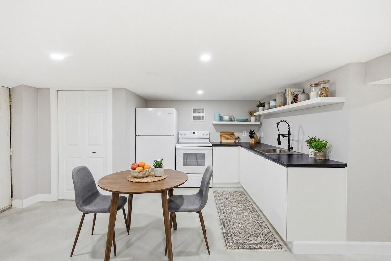 • Huge finished basement with a kitchen, bathroom, and flexible spaces for various uses.