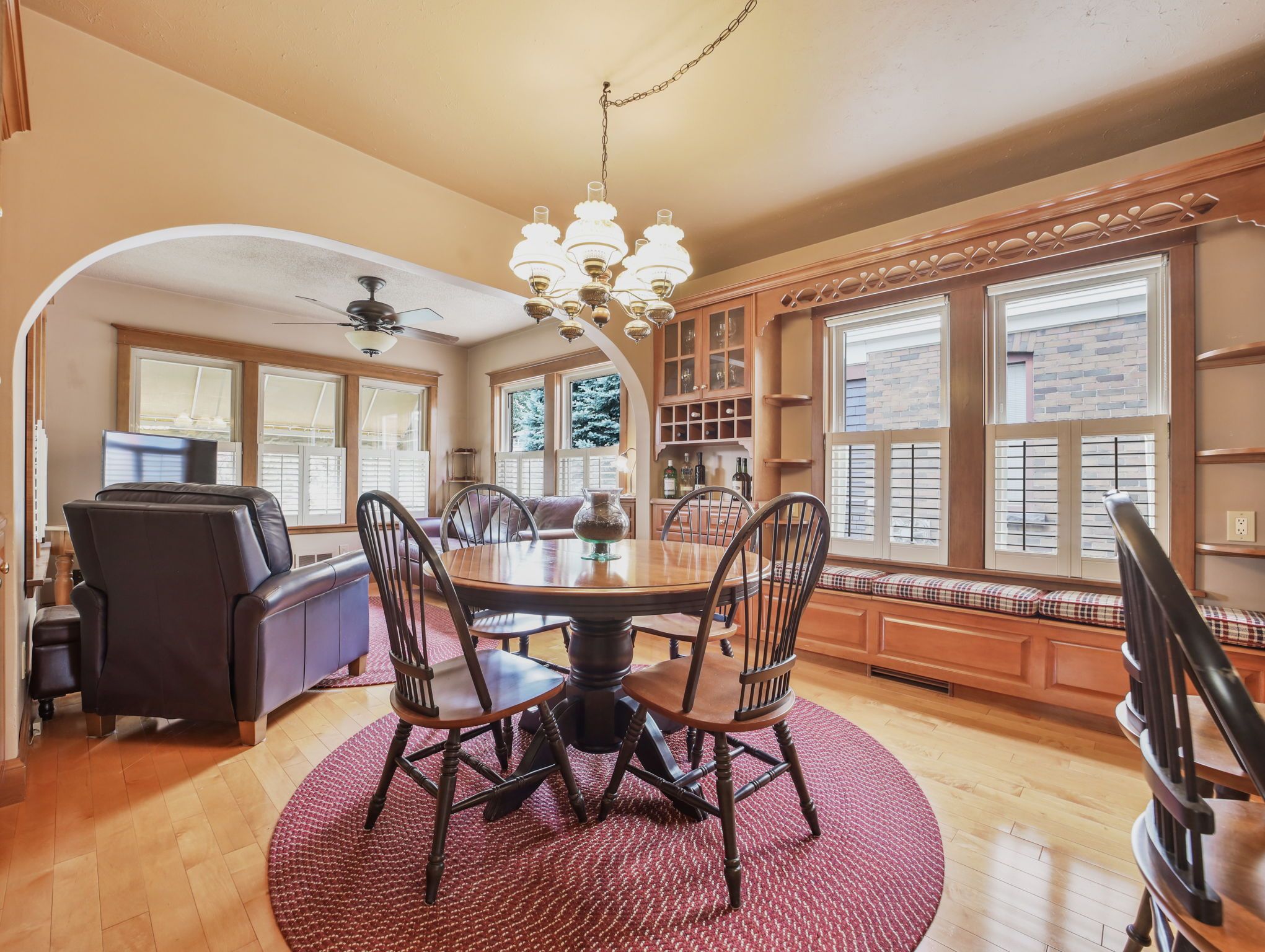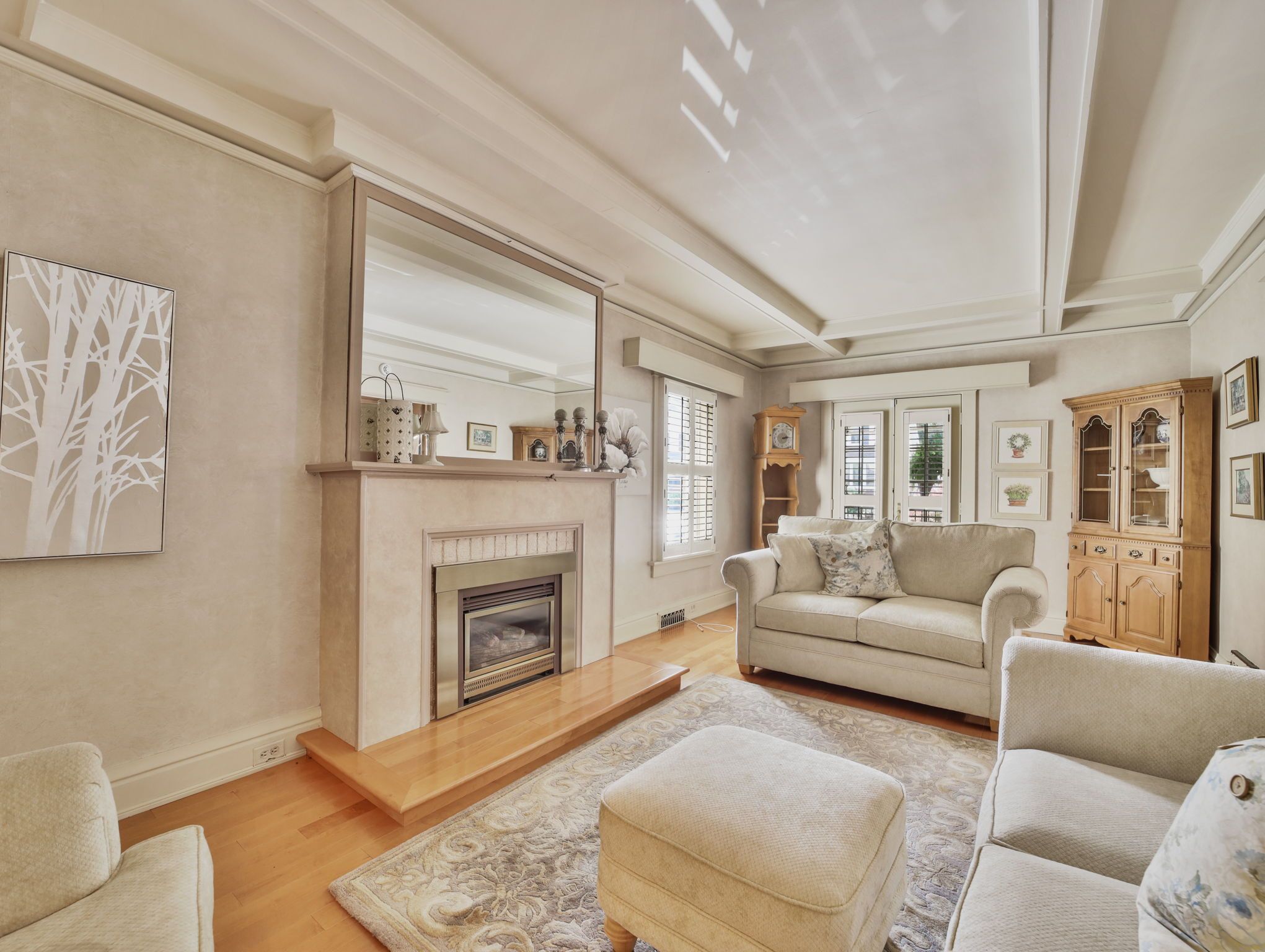 • Warm main floor with hardwood floors, gas fireplace, and coffered ceilings.