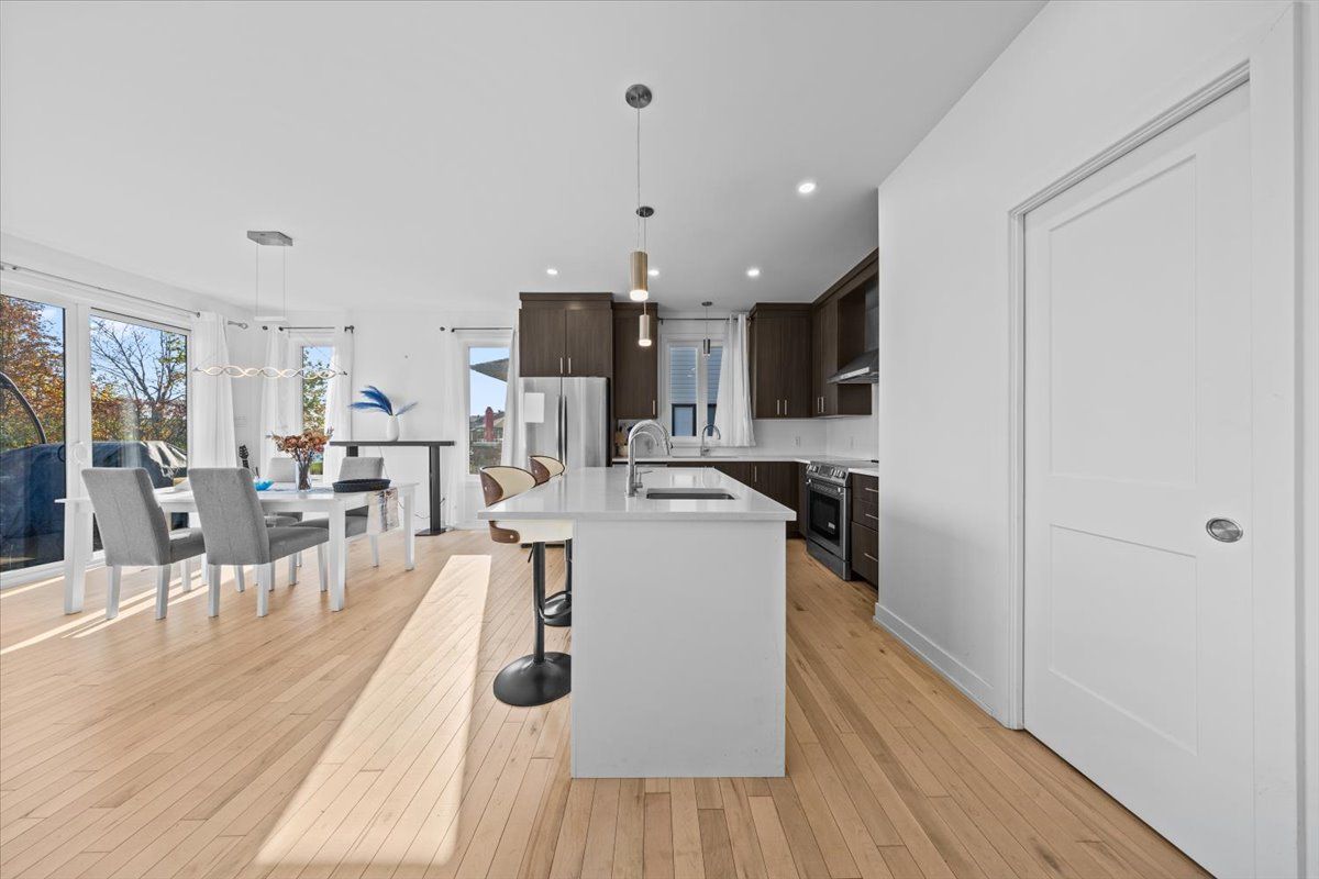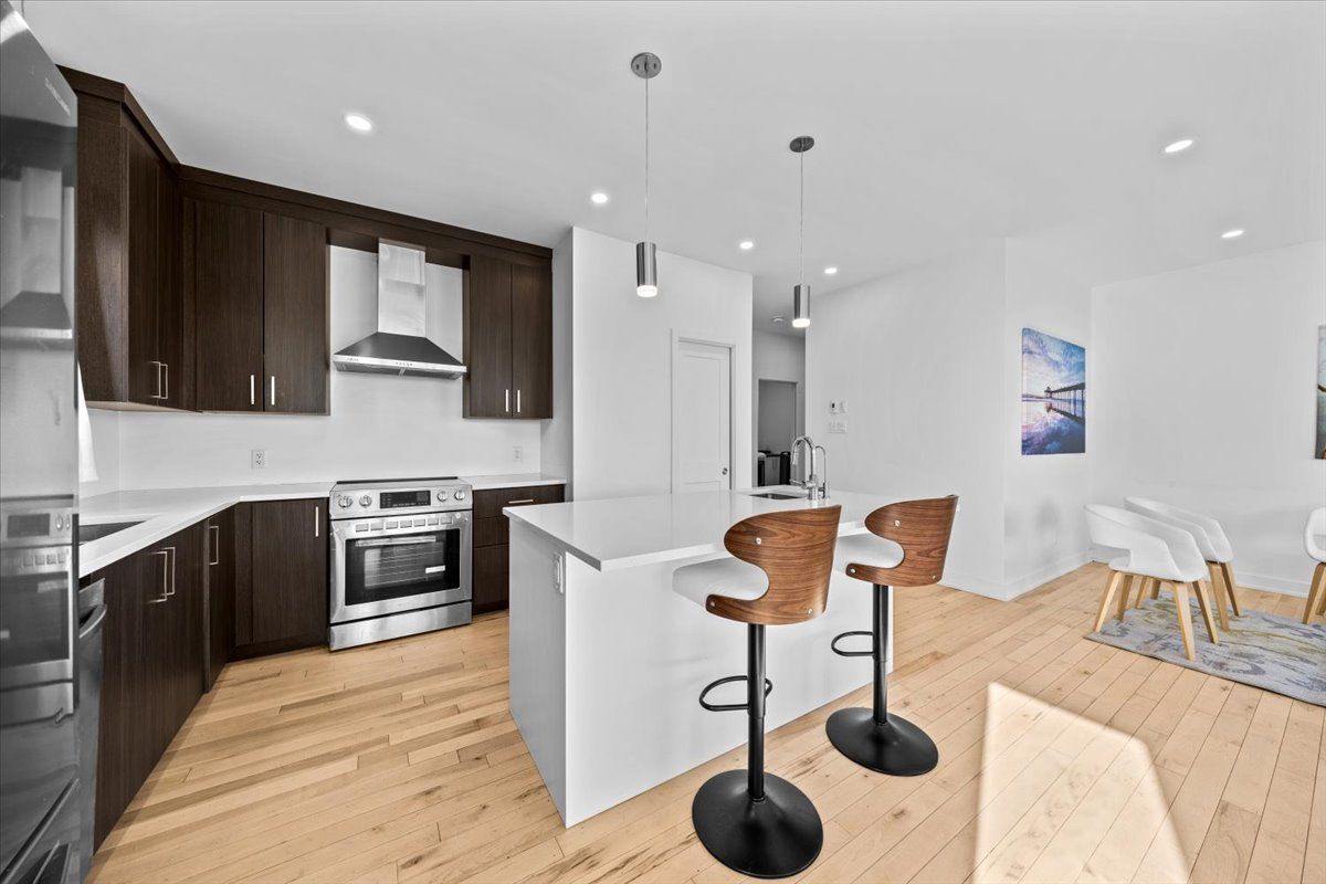 • Modern kitchen with walk-in pantry and upgraded appliances throughout.