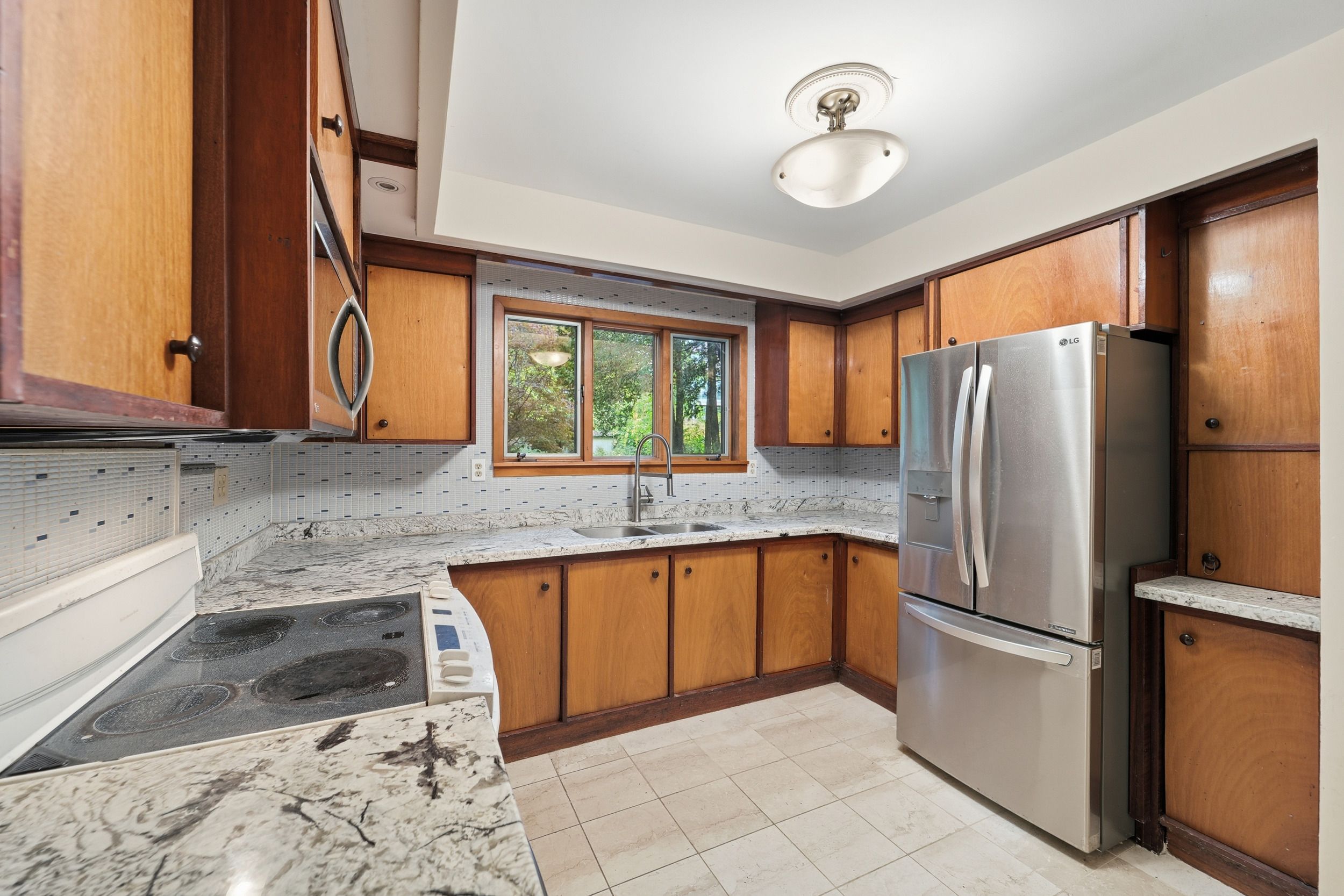 Welcome to this custom one of a kind home with vaulted living room with gas fireplace, awaiting a very large christmas tree. There is an open sight line from the huge front window to the terraced patio. The back yard is private woodland retreat in the city with natural landscaping and fully fenced. Back inside you will step down from the living room into the family room. The kitchen is next to it and has the potential to be opened up to the family room for entertainers or families. The dining room could also be used as a huge mud room or an office right off the front door if needed. This home has so much potential waiting to be tailored to suit your needs. The basement is suitable for an in-law suite with a multi purpose room, bedroom and 3 pce ensuite with marble tiled floors for multigenerational or multi family living. Upstairs is three bedrooms with a walkway overlooking the vaulted living room and a wrought iron railing. This property has lots of parking with its long driveway and no sidewalk so there is space for a minimum of four vehicles which could be expanded with the large front yard. You are steps away from a park and the lake is visible from the street. Per fairport beach neighbourhood association this property comes deeded unlimited access to the waterfront beach from petticoat creek to west shore blvd however please note that if the house is torn down that clause is removed from a new deed. However, it is not affected by corrections, additions or renovations. The area is ideal for long walks and time spent outdoors. This lot has ample space for your additions ideal for investors and developers. Book your visit today. Remember if you love it you better put an offer on it!!
