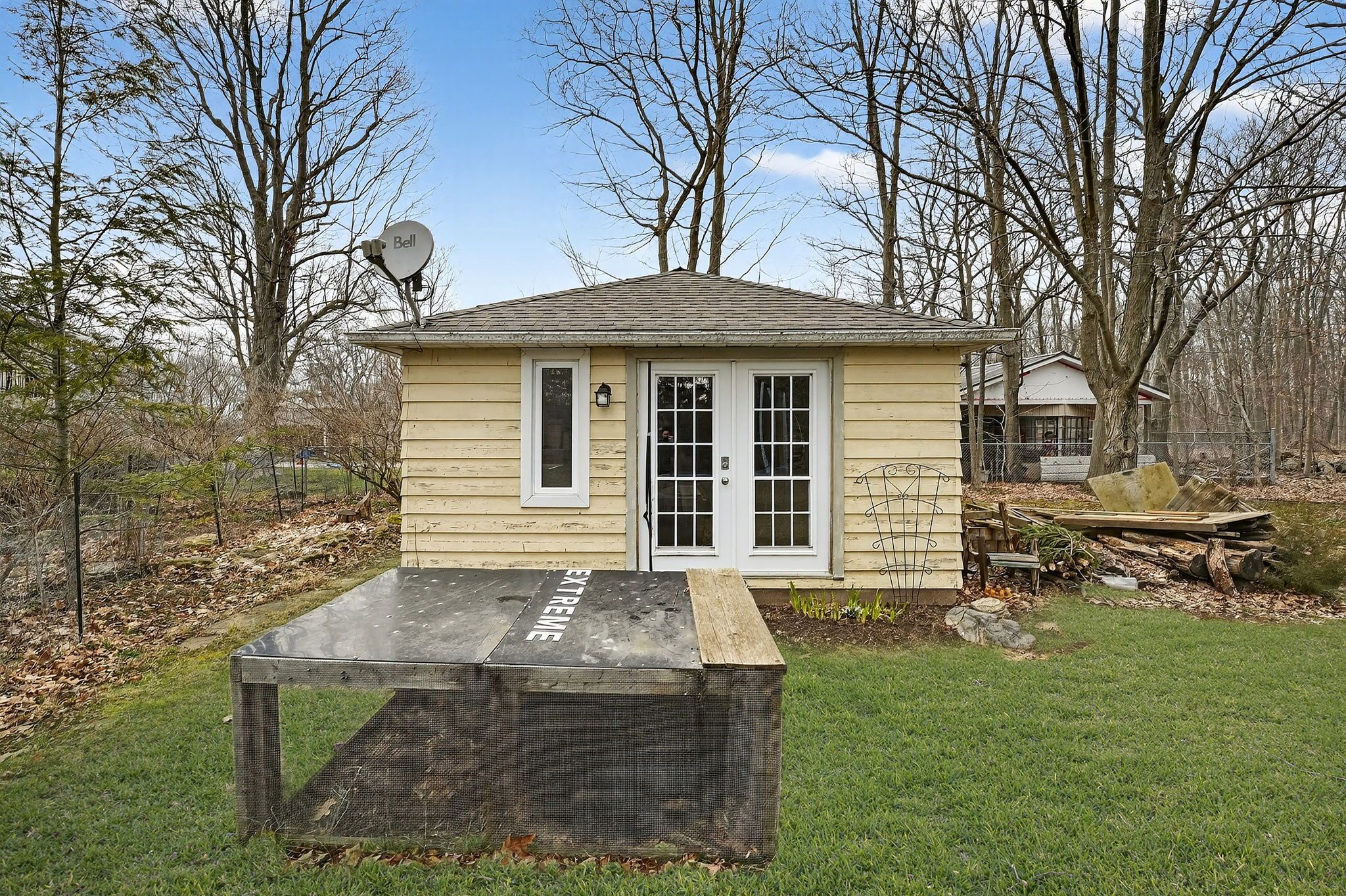 Enjoy a life you don't need to vacation from! As you pull into the long, inviting u-shaped driveway, the world seems to slow down. Set deep back from the road, this home makes a striking first impression, with grounds professionally landscaped in a sophisticated palette of perennials, thoughtfully layered to provide a tapestry of blooms that evolve with each passing season. Inside, this freshly painted three-bedroom bungalow offers a sun-drenched layout designed to frame breathtaking panoramic wooded views. The home features the effortless convenience of main-floor living and laundry, complemented by a detached garage and a full basement with a separate entrance and ample storage. From the spacious galley-style kitchen, walk directly out onto an expansive newer deck (2023), the perfect setting for morning coffee, breezy evening bbqs, and quiet moments surrounded by the sounds of local wildlife. Situated on nearly an entire acre with the ultimate privacy of no rear neighbours, this property is your personal gateway to adventure. With direct access to the shagbark nature park trail system right from your backyard, a vast expanse of serene winding trails is yours to explore at your leisure. Adding to the rare allure of this lot is a charming bunkie with hydro & wifi access, providing a perfect blank canvas for a home office, yoga studio, or artist's retreat nestled in the trees. Perfectly positioned near schools, shopping, and highway access, you are still just a short walk from the historic charm of downtown ridgeway and a short drive to the famous sands of crystal beach. From the trails to the beach, the best of ridgeway is right here. Don't miss out!
