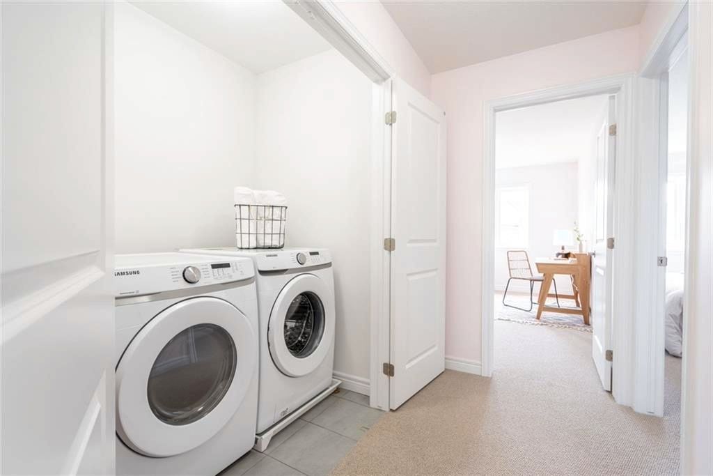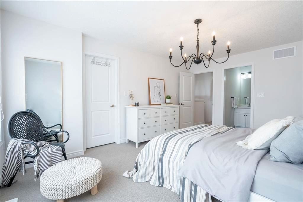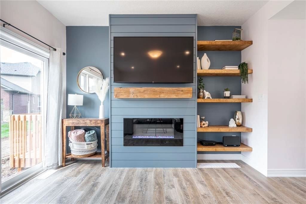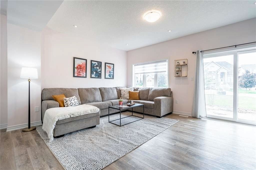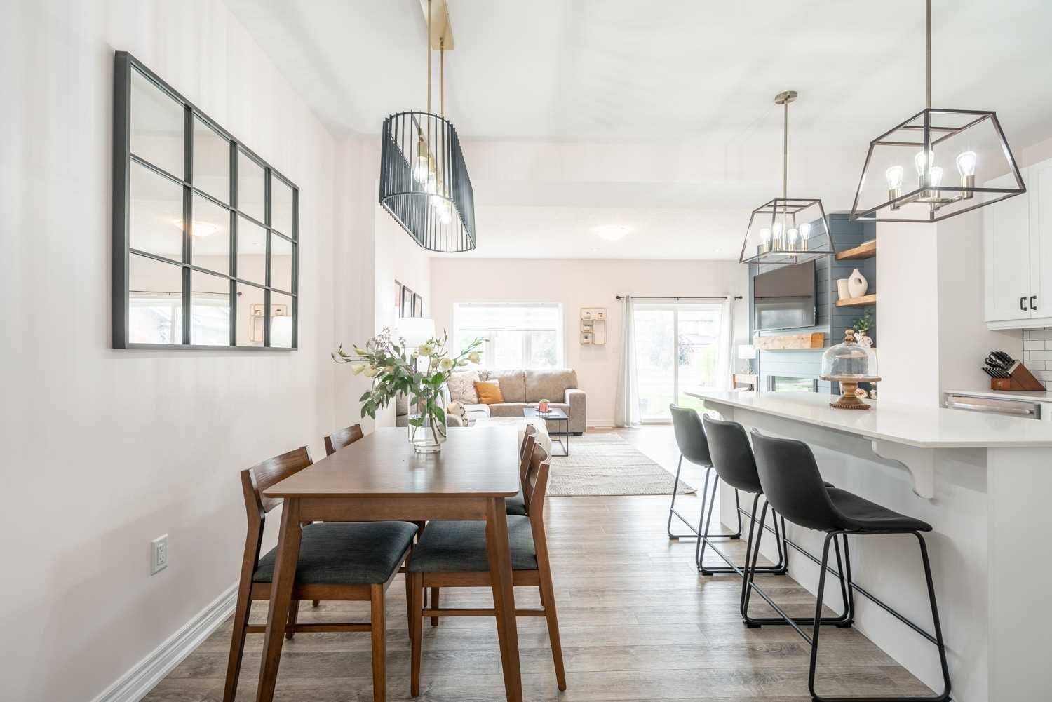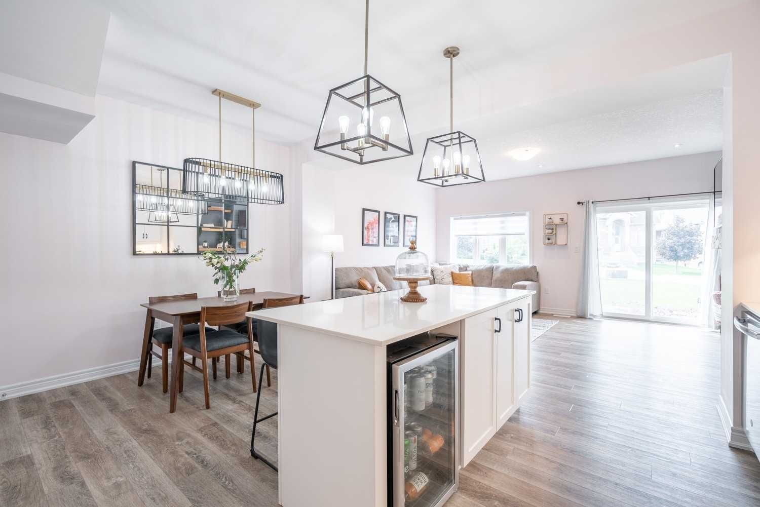 Tastefully upgraded home features 9-foot ceilings, seamless flooring, pot lights, modern fixtures and designer accent walls that adds warmth and character to the space. The modern kitchen is finished with quartz countertops, a subway tile backsplash, sleek cabinetry, and island-perfect for both everyday living and entertaining. Quartz surfaces continue into the bathrooms, creating a consistent, upscale feel. The private backyard provides a quiet outdoor retreat. Ideally located, you can watch the kids walk to the nearby park featuring a playground, splash pad, tennis and basketball courts, baseball field, and scenic walking paths, with the school just beyond. A spotless home that combines comfort, style, and an exceptional location.