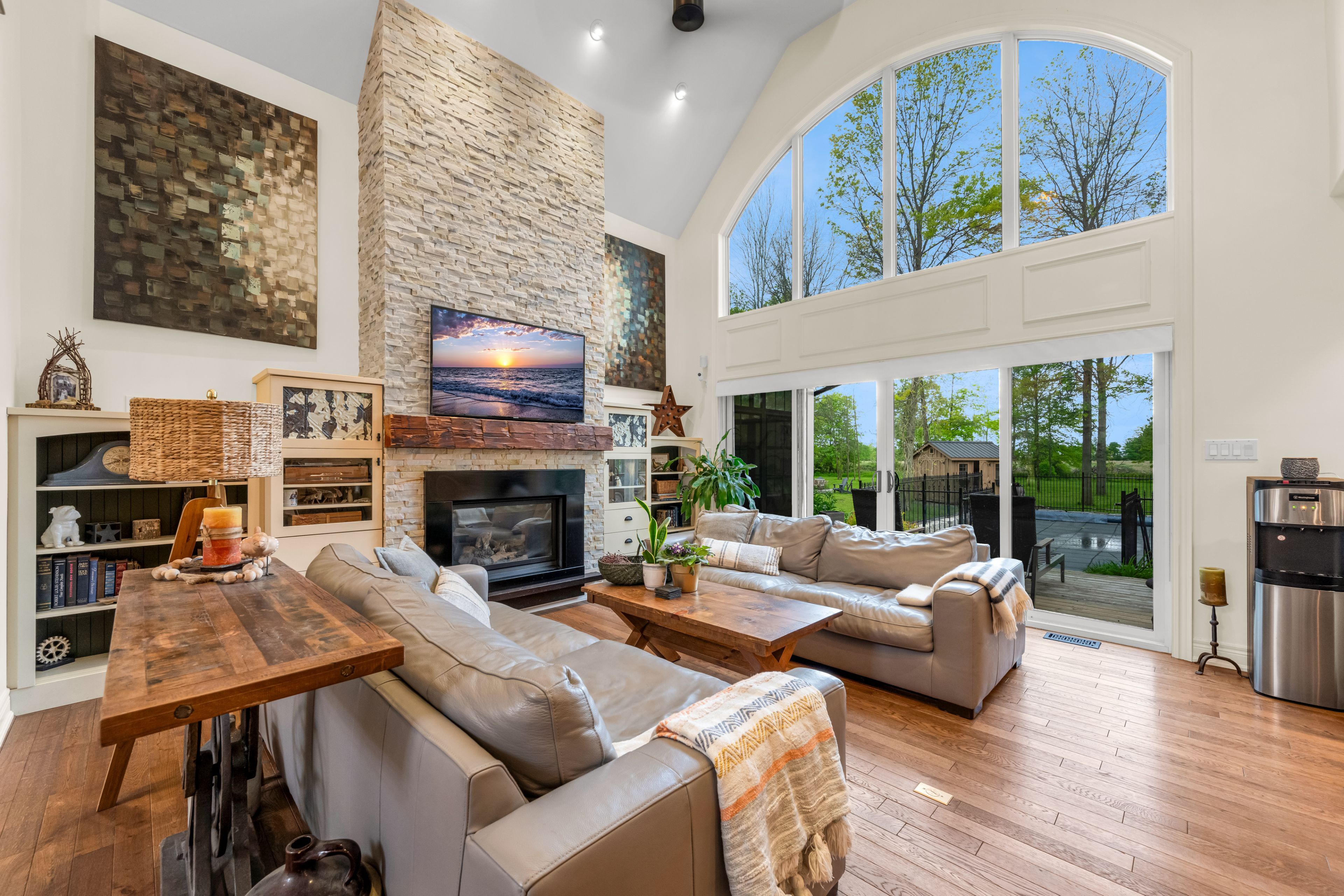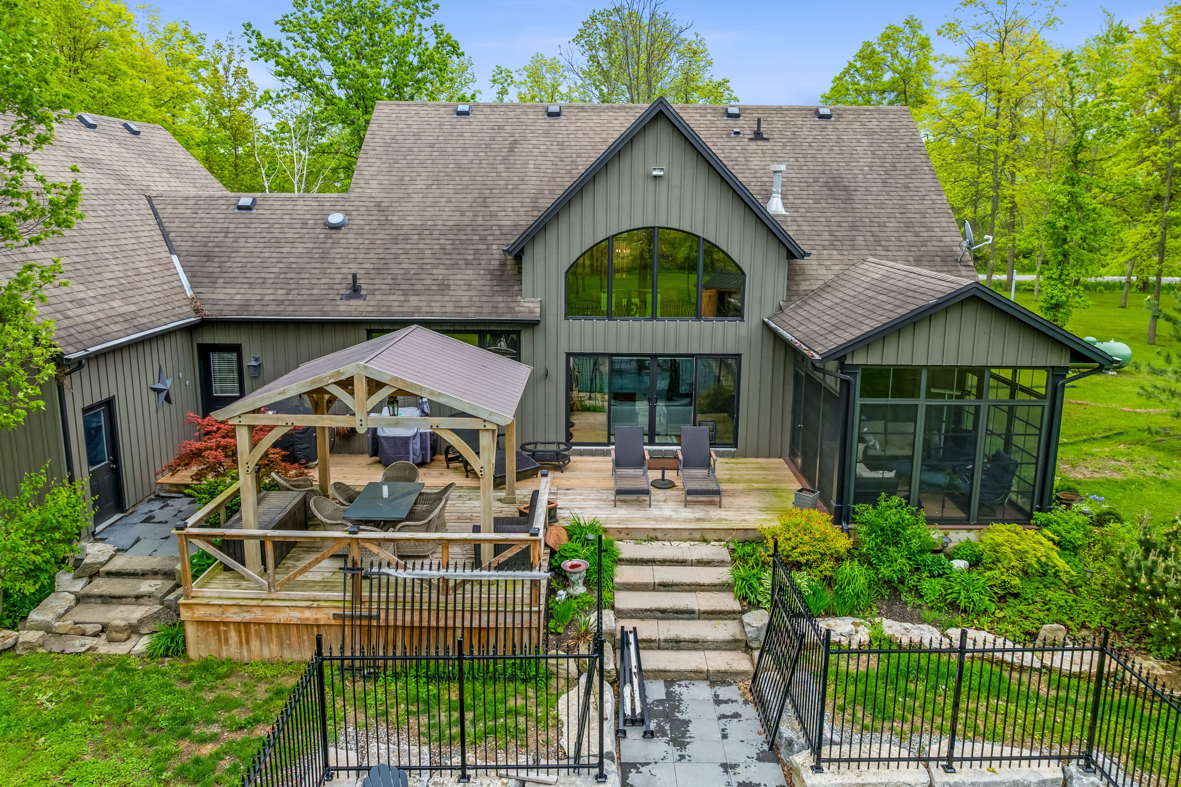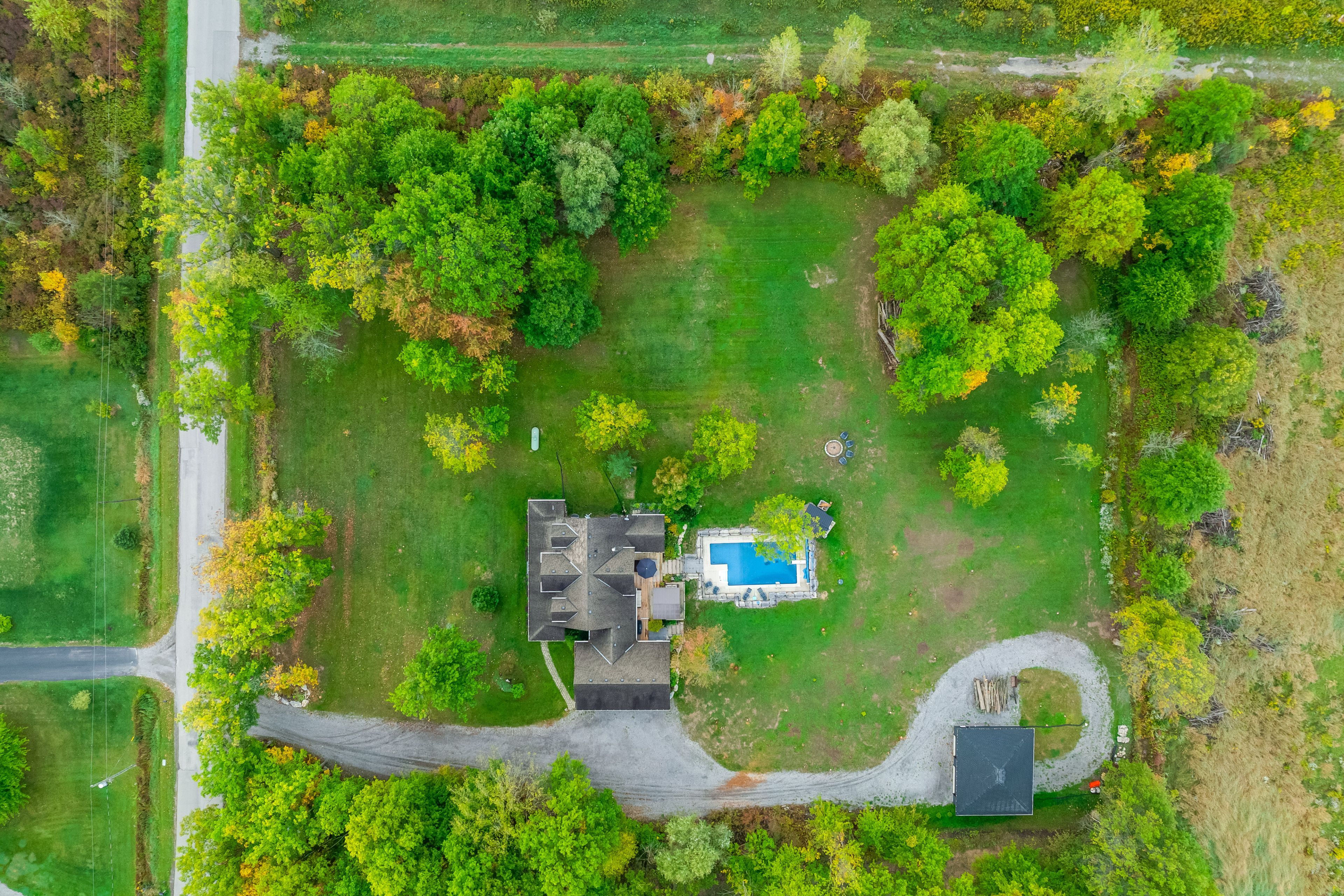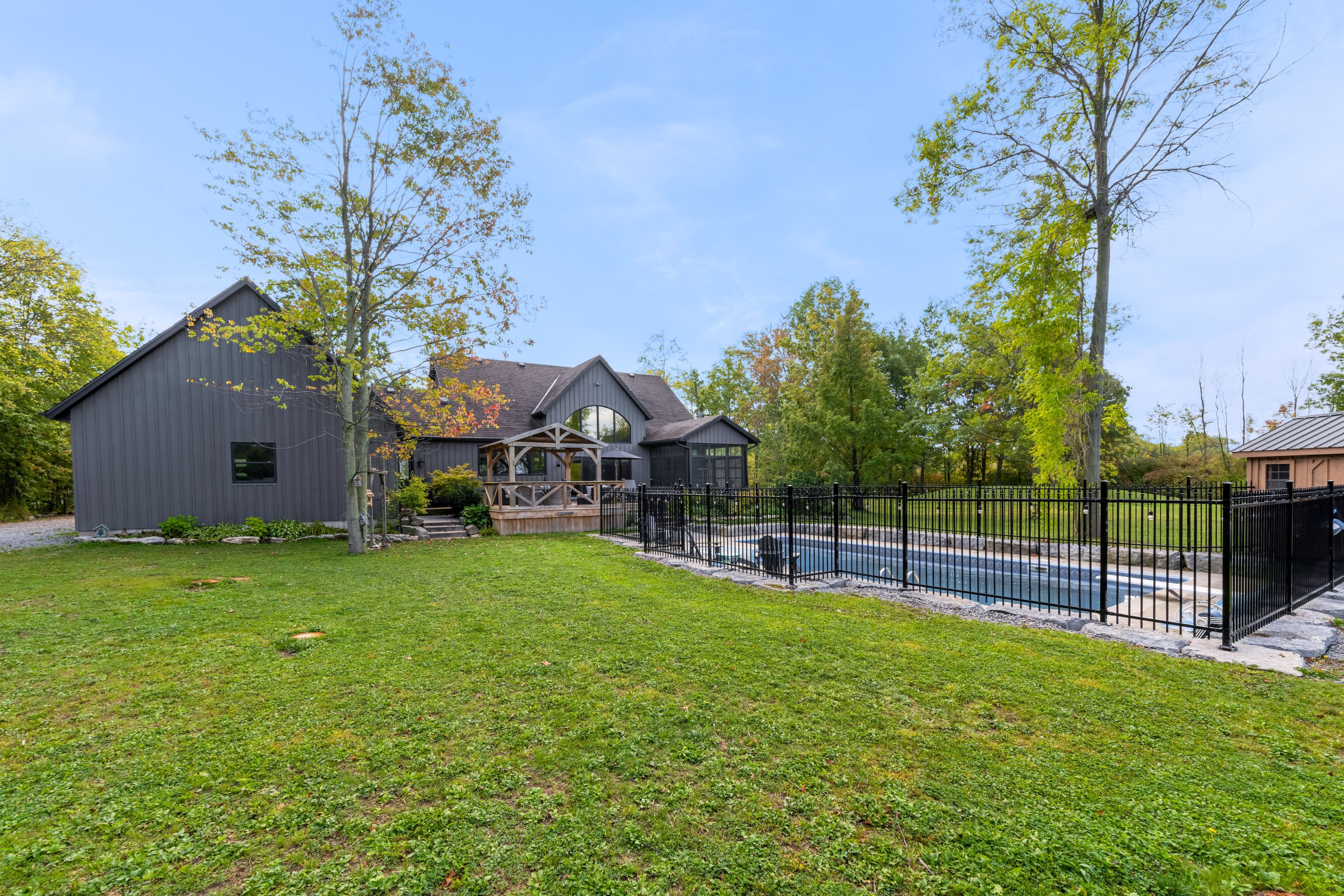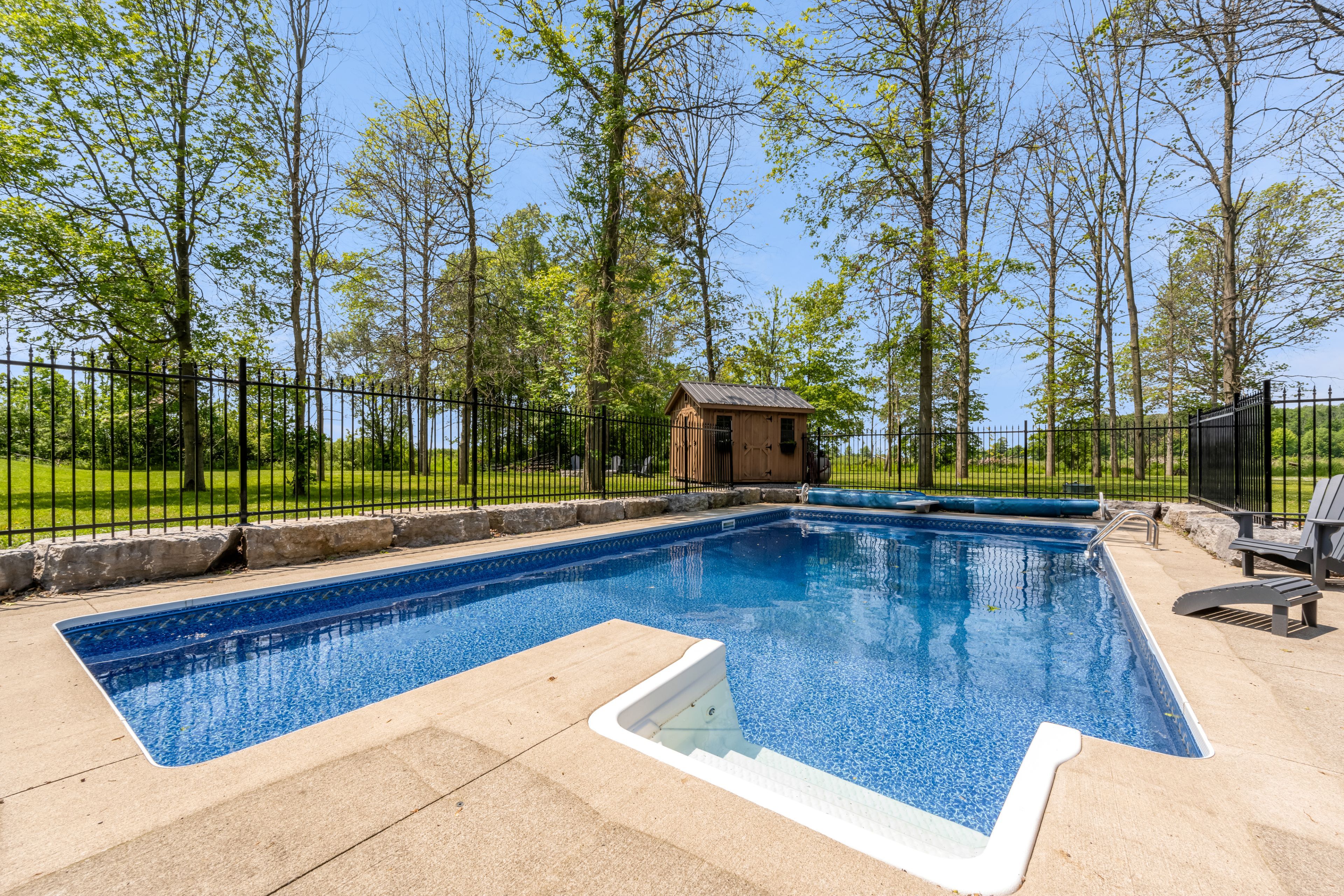 Welcome to paradise! Take all your staycations at home! This spectacular 2. 54 acre property allows you to escape the hustle and bustle of the world and go home to paradise! Quality built 2135 square foot, 1 1/2 storey home featuring designer kitchen, butler's pantry, formal dining room and bright cozy living room with floor to ceiling propane fireplace. Walk out from the living room to the back porch area featuring a gazebo and 3-season sunroom, both overlooking the saltwater inground pool. Pool liner replaced in 2024 and pump replaced in 2023. Main floor primary bedroom suite with walk-in-closet and luxurious 5 pce bathroom with glass enclosed stand up shower , large soaker tub, make-up vanity and double sinks. Upstairs are two additional bedrooms with a 4pce bathroom. On the lower level is a large family room, games room and built in bar. An abundance of storage areas on this level with walk up entrance to attached garage. This home is tastefully decorated and attention to detail is evident throughout. Loads of storage for vehicles and outdoor toys with a 2 1/2 car attached garage and a large 28' x 32' detached shop. A/c replaced in june 2025. Don't miss this beautiful country opportunity!