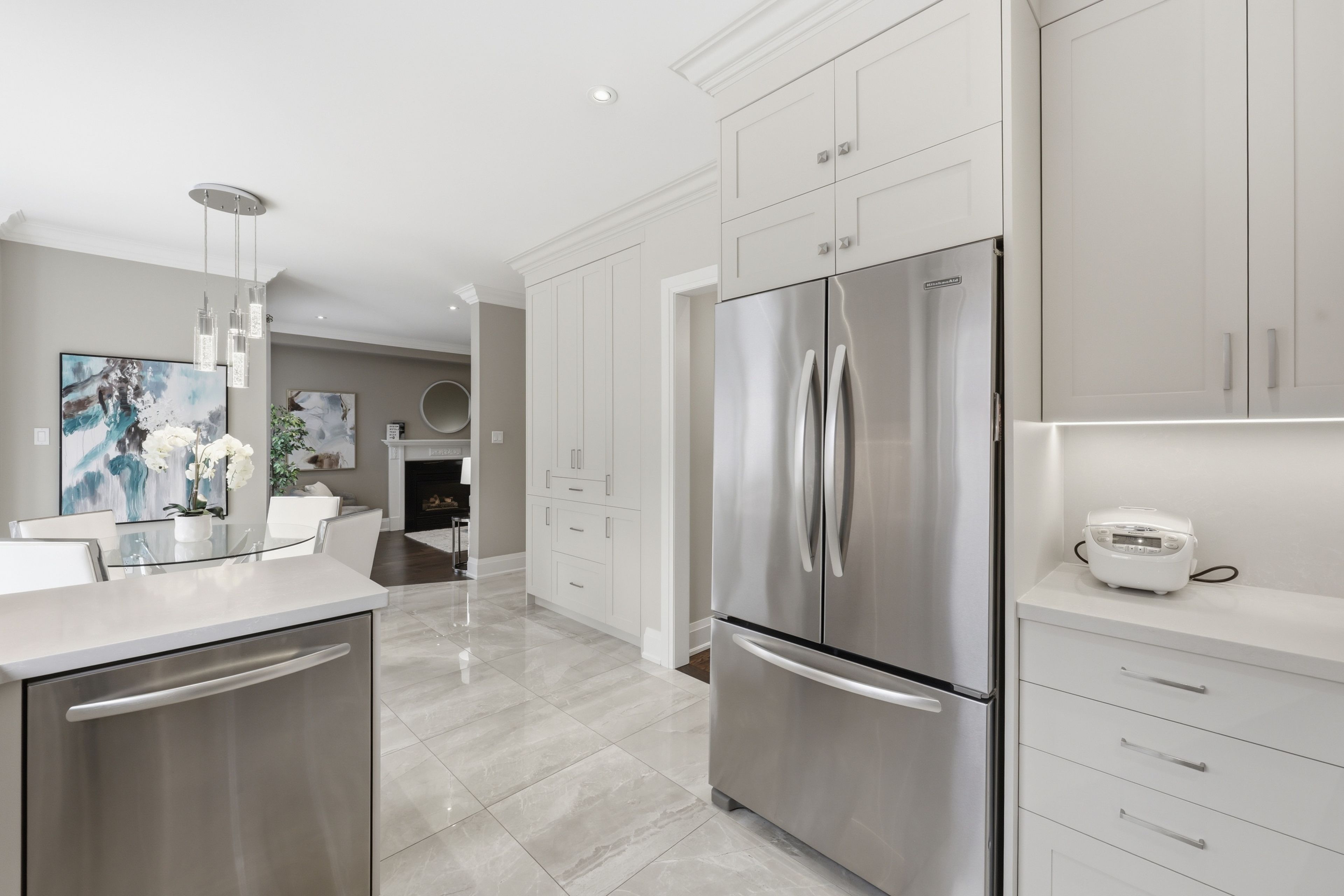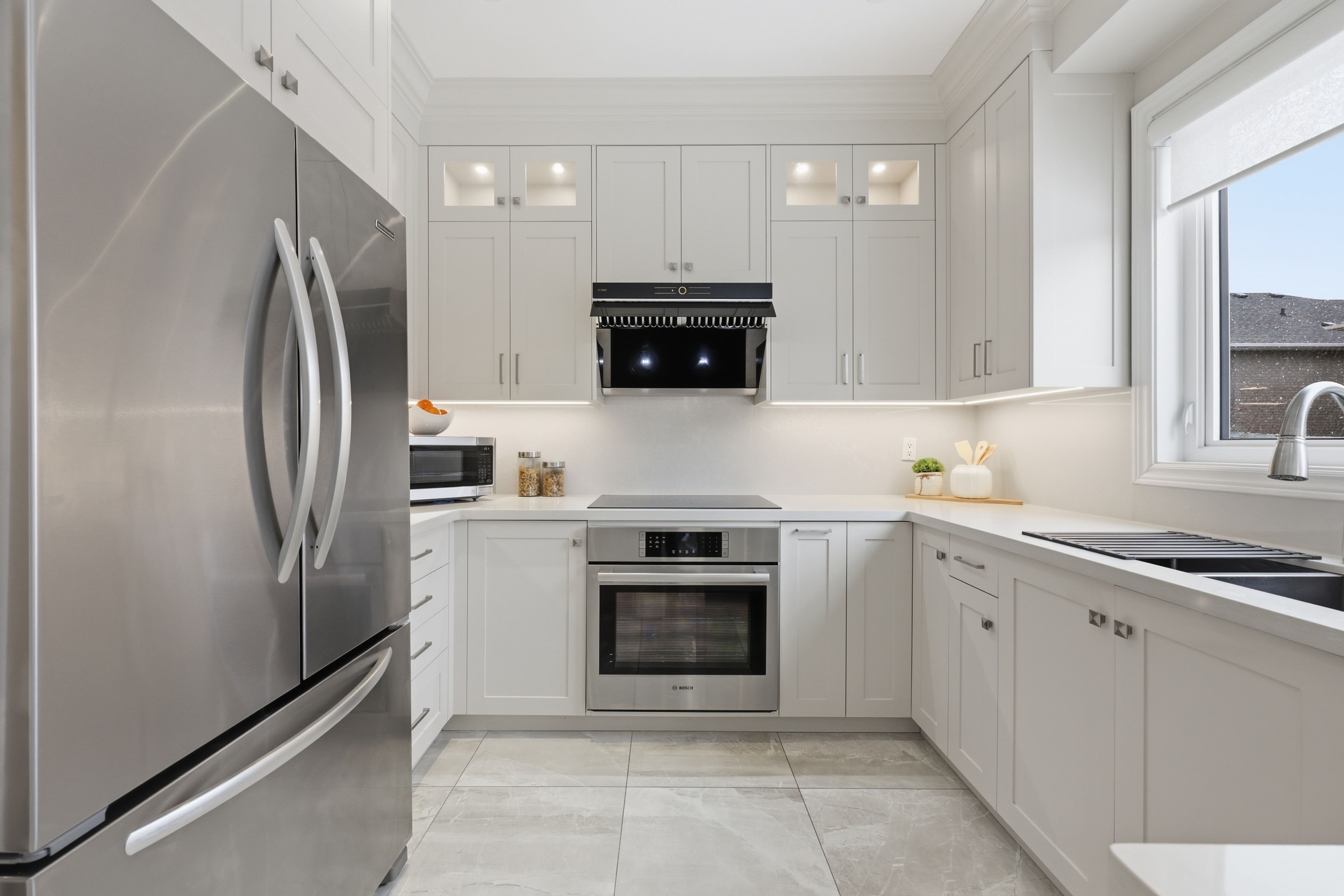 • Modern kitchen with stainless steel appliances and plenty of storage.