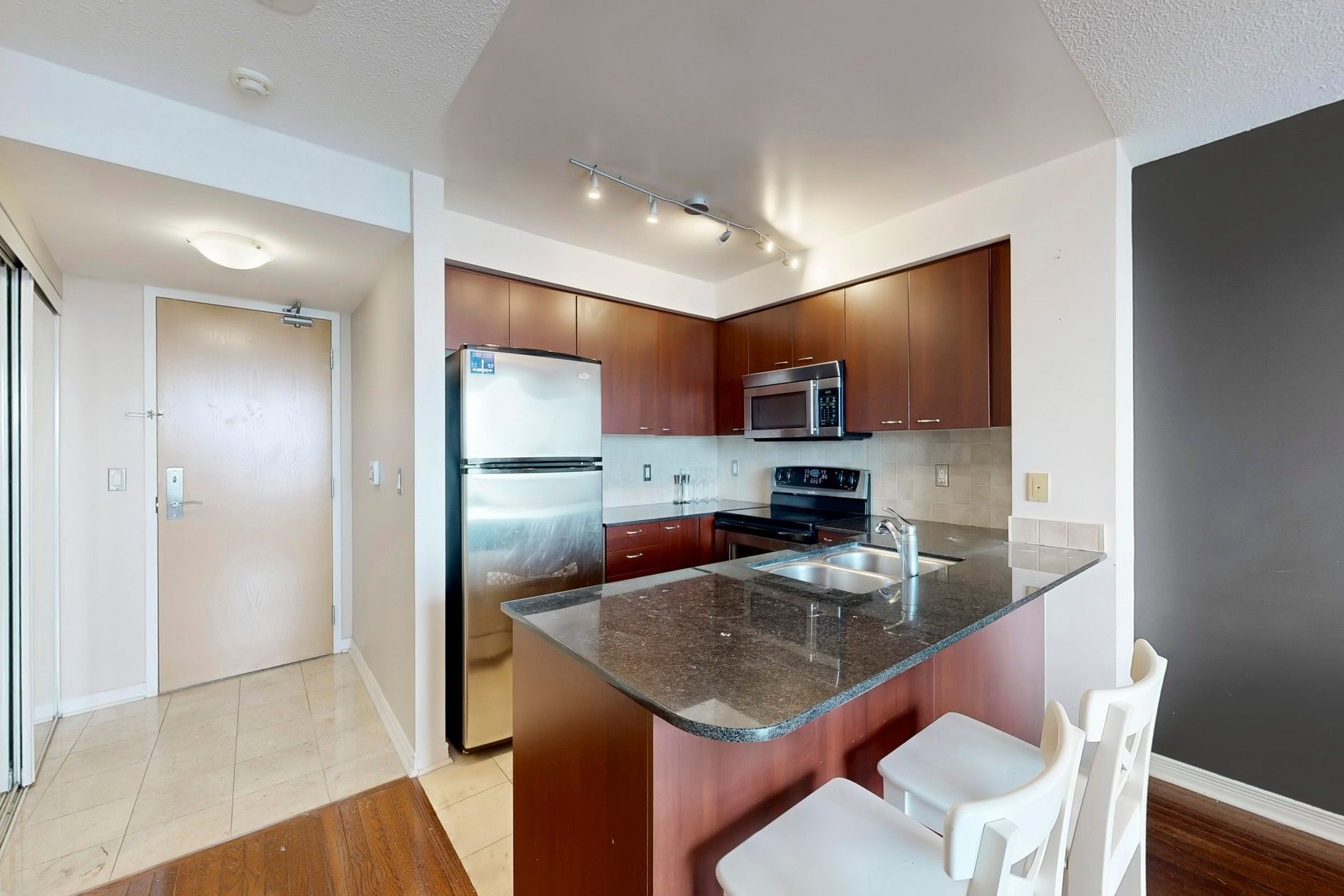 • Upgraded kitchen features sleek granite countertops.