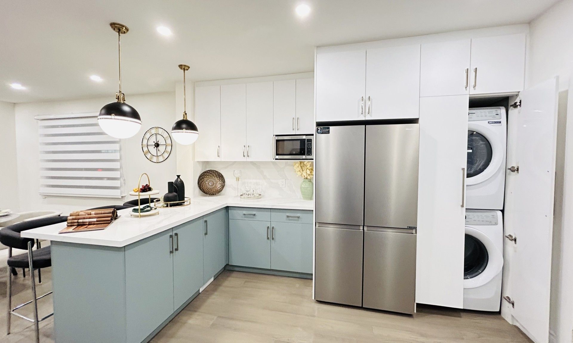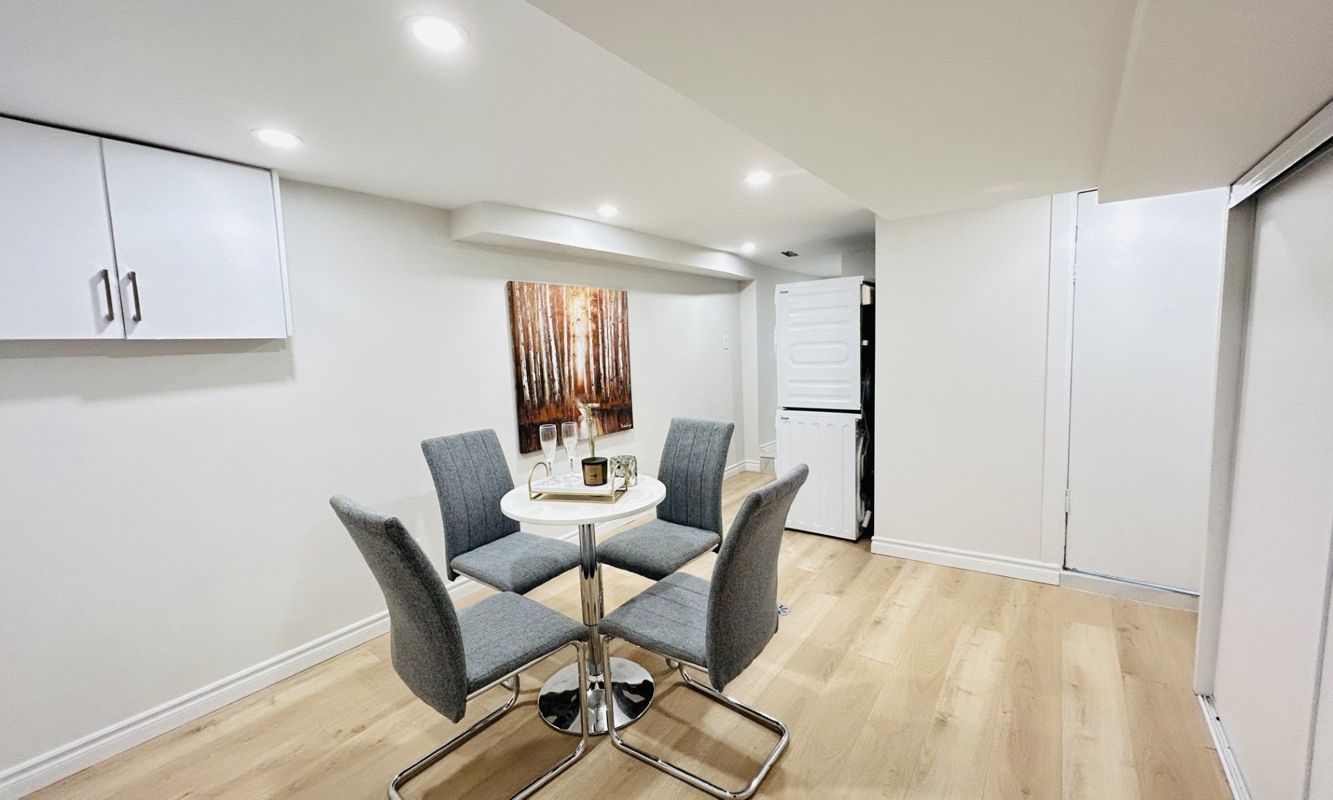 Beautifully recently renovated semi-detached home in the heart of seaton village with over $100k in upgrades completed in late 2025, offering a functional layout and modern finishes throughout. Bright open-concept living space with brand-new flooring, new pot lights, and fresh paint. The main level features a large new modern kitchen with a big island, custom cabinetry, quartz countertops & backsplash, and new stainless steel appliances. A dedicated laundry area with washer and dryer seamlessly integrated into custom cabinetry for a sleek, refined look. The spacious primary bedroom with a bay window provides abundant natural light. The second-floor bathroom has been thoughtfully renovated with modern finishes. All-new zebra blinds installed throughout. The fully finished basement includes a two-bedroom suite with a brand-new kitchen & laundry room & bathroom, new vinyl flooring, a new custom door, and a separate entrance, ideal for extended family or rental income. The rear yard accessible through the new garage door, offers flexible use as a large storage area or parking for one small compact sedan. A separate side entrance located next to the garage door adds convenience. Newly installed air conditioner. Easy access to all amenities, including shops, schools, park and ttc. Close proximity to both subway lines, george brown college and u of t. Don't miss it!