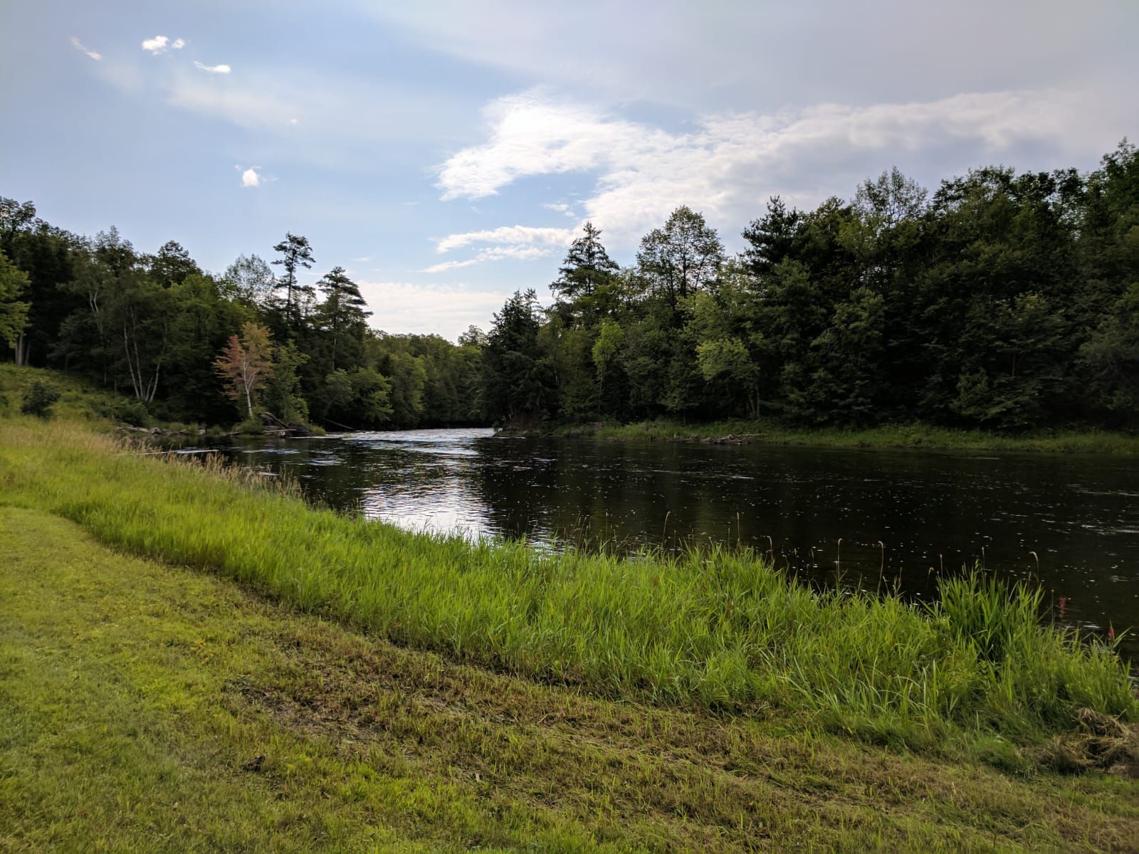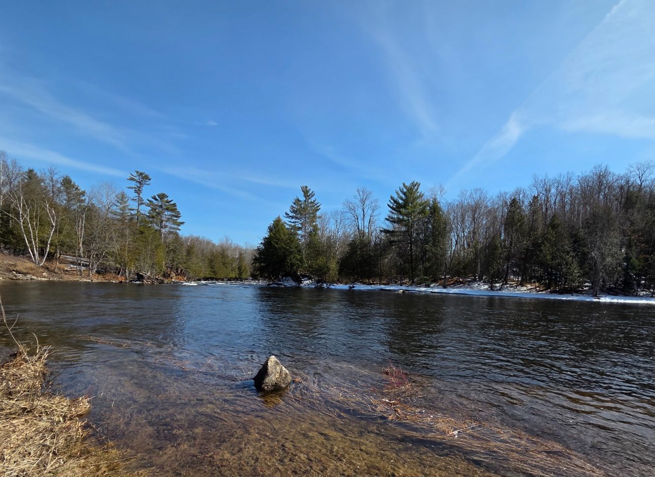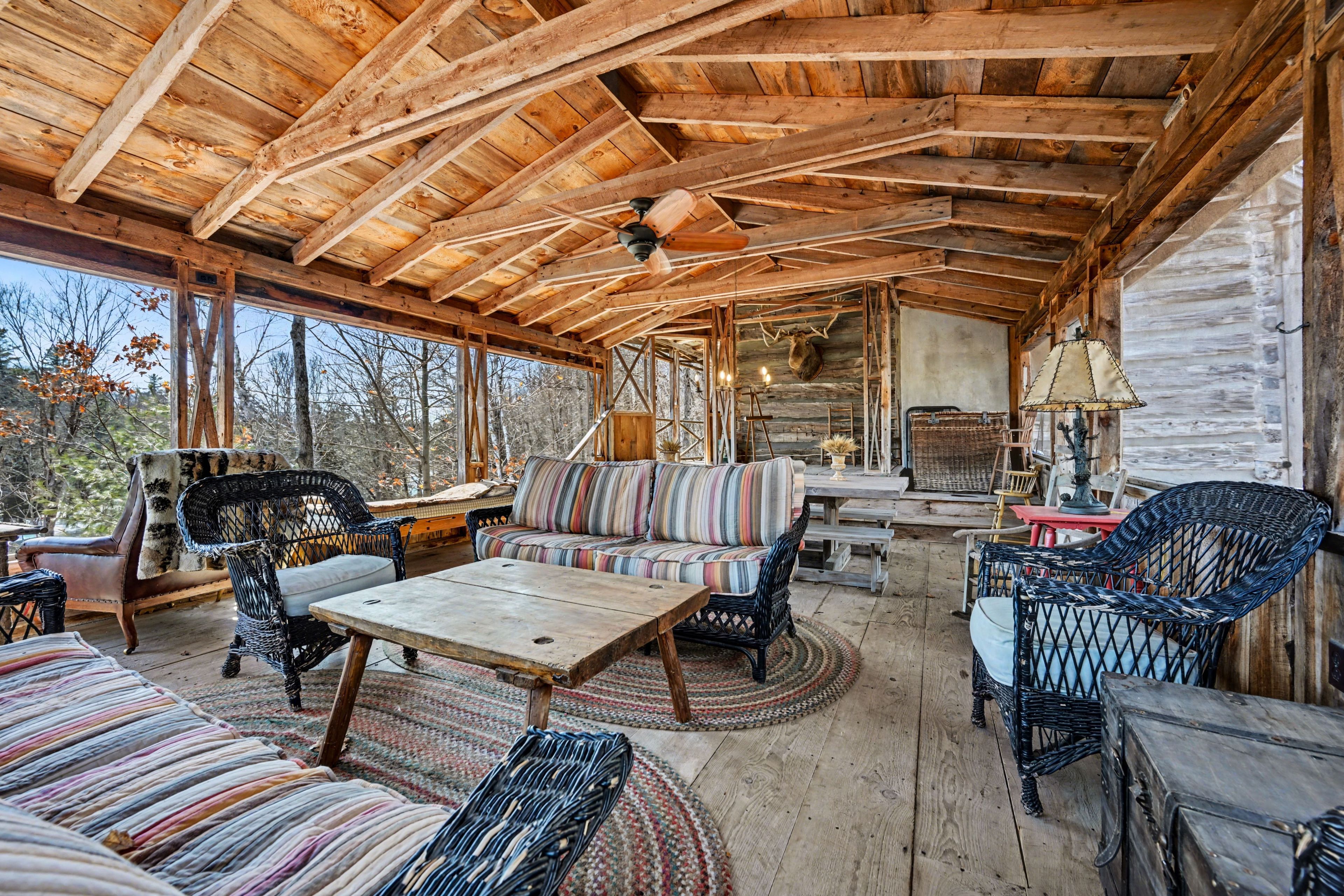 • Restored cedar log home on 5.5 acres with 324 feet of riverfront.