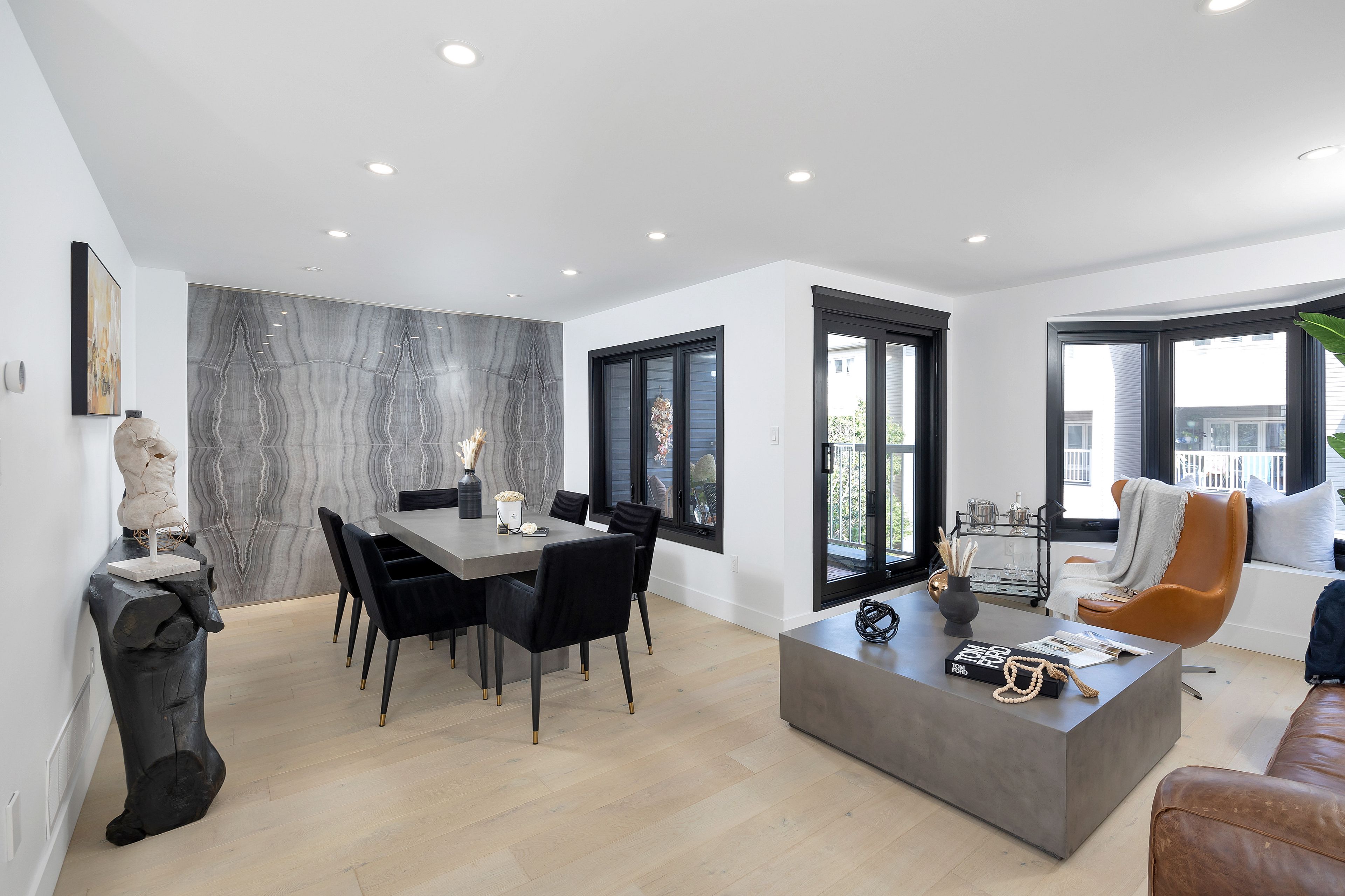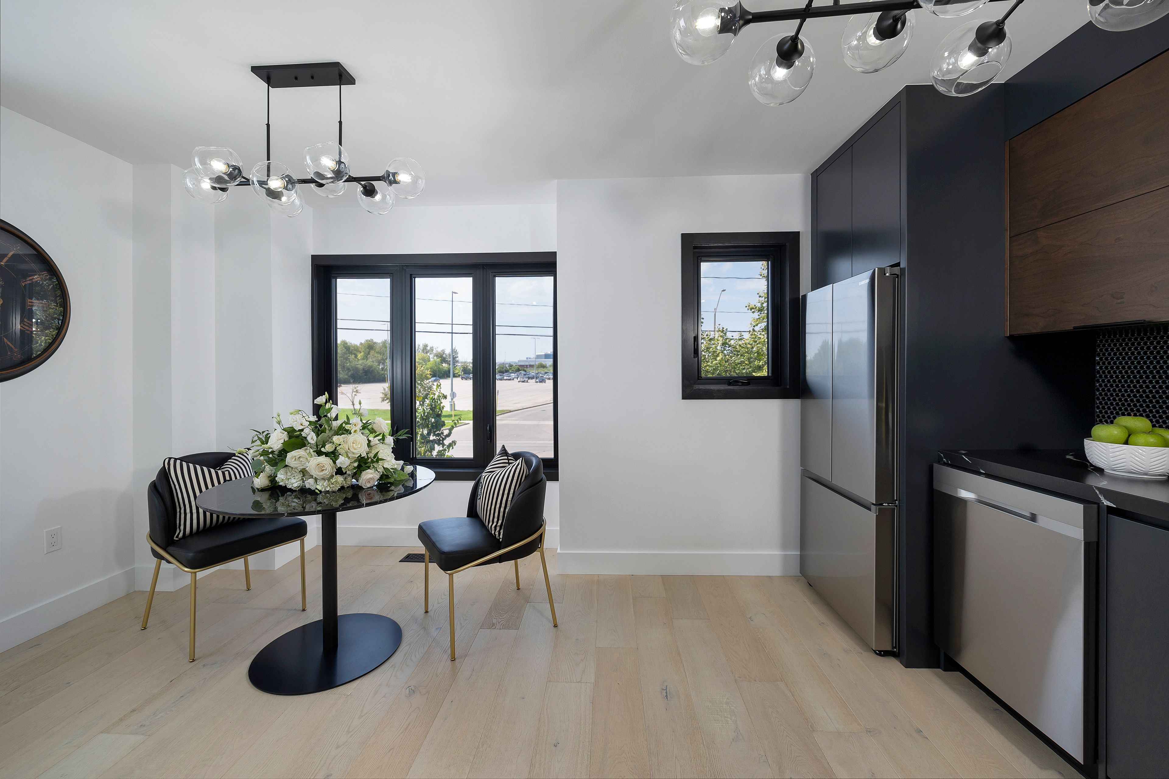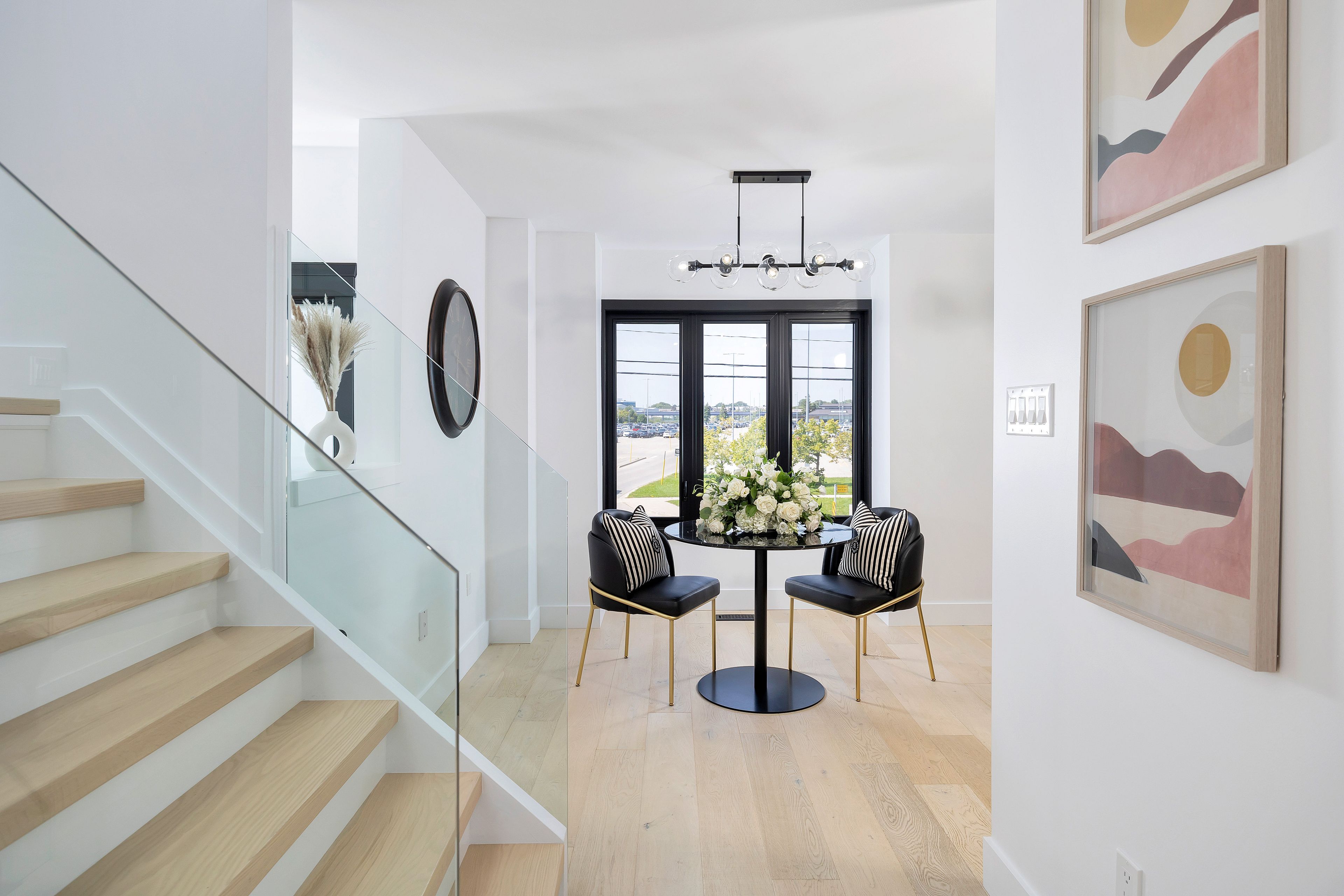 • Open-concept living/dining area with stylish oak flooring and tile accents.