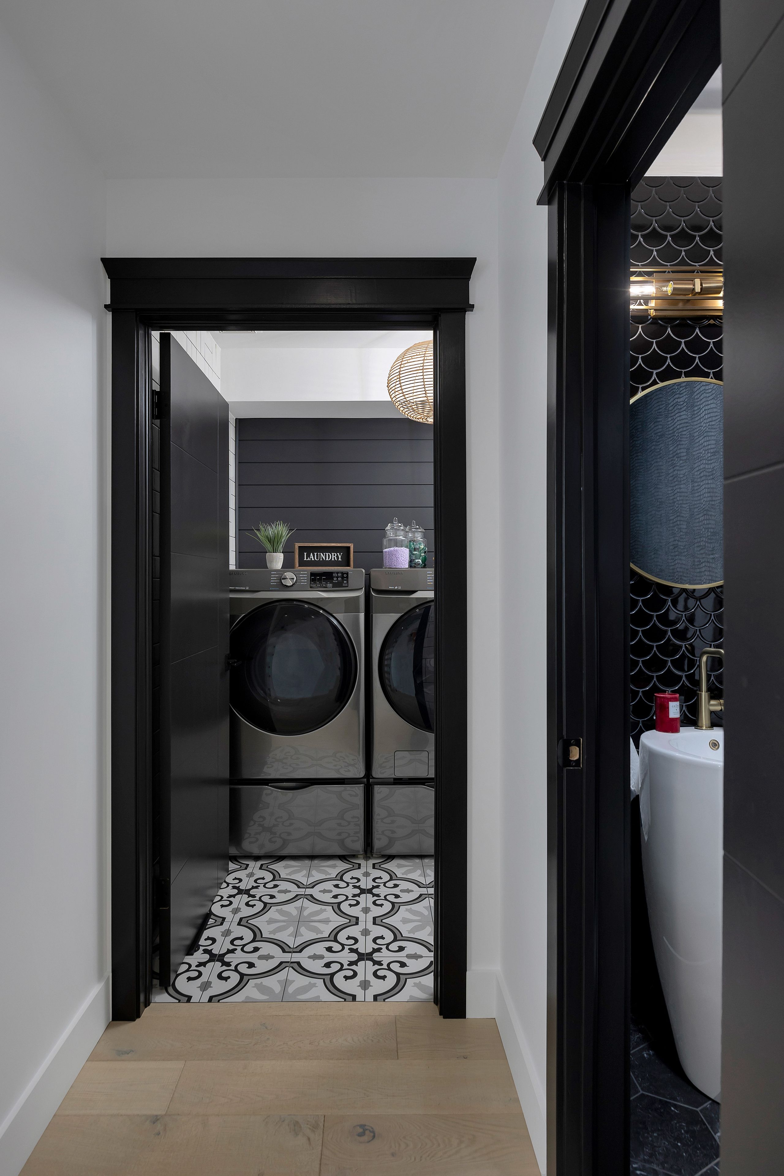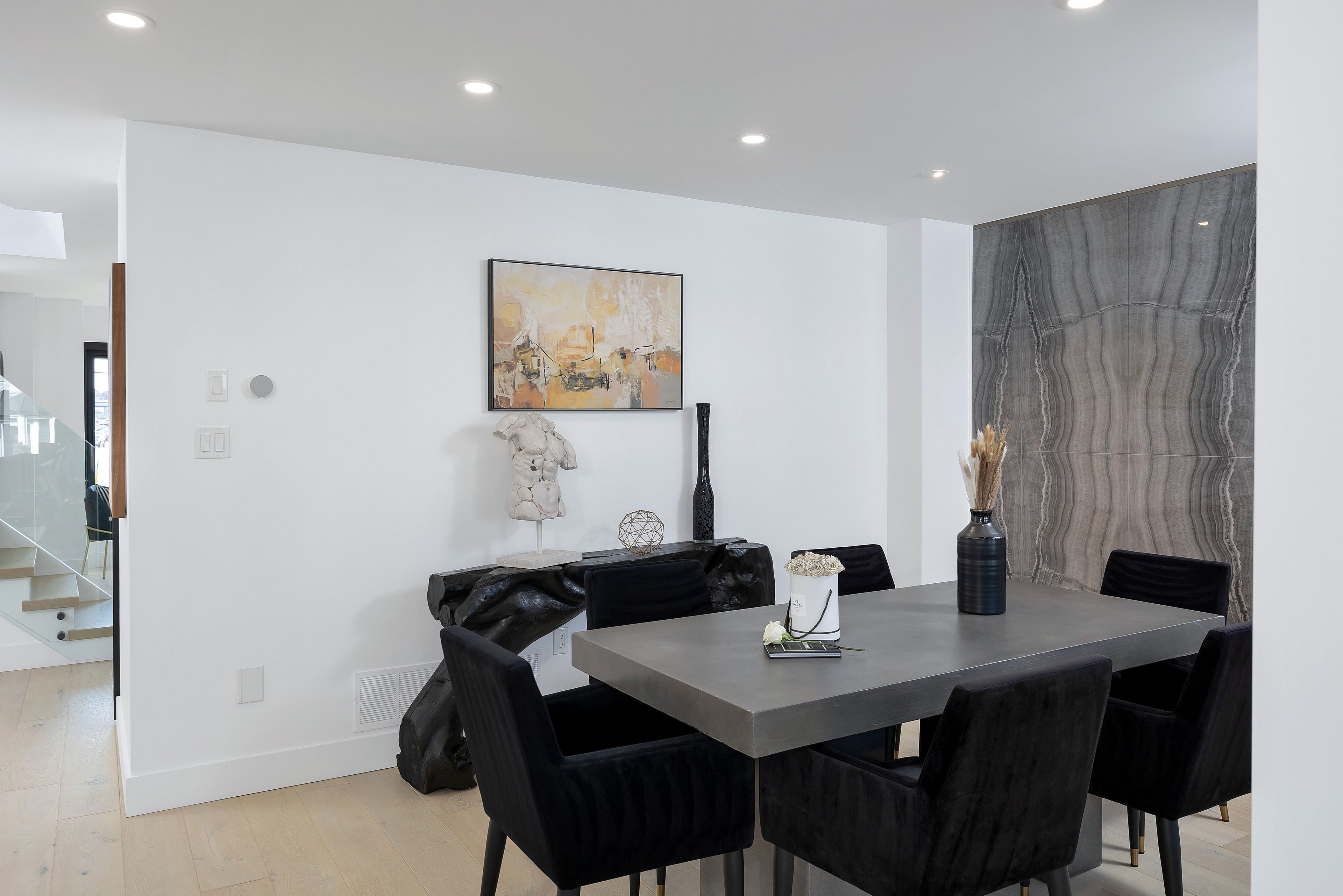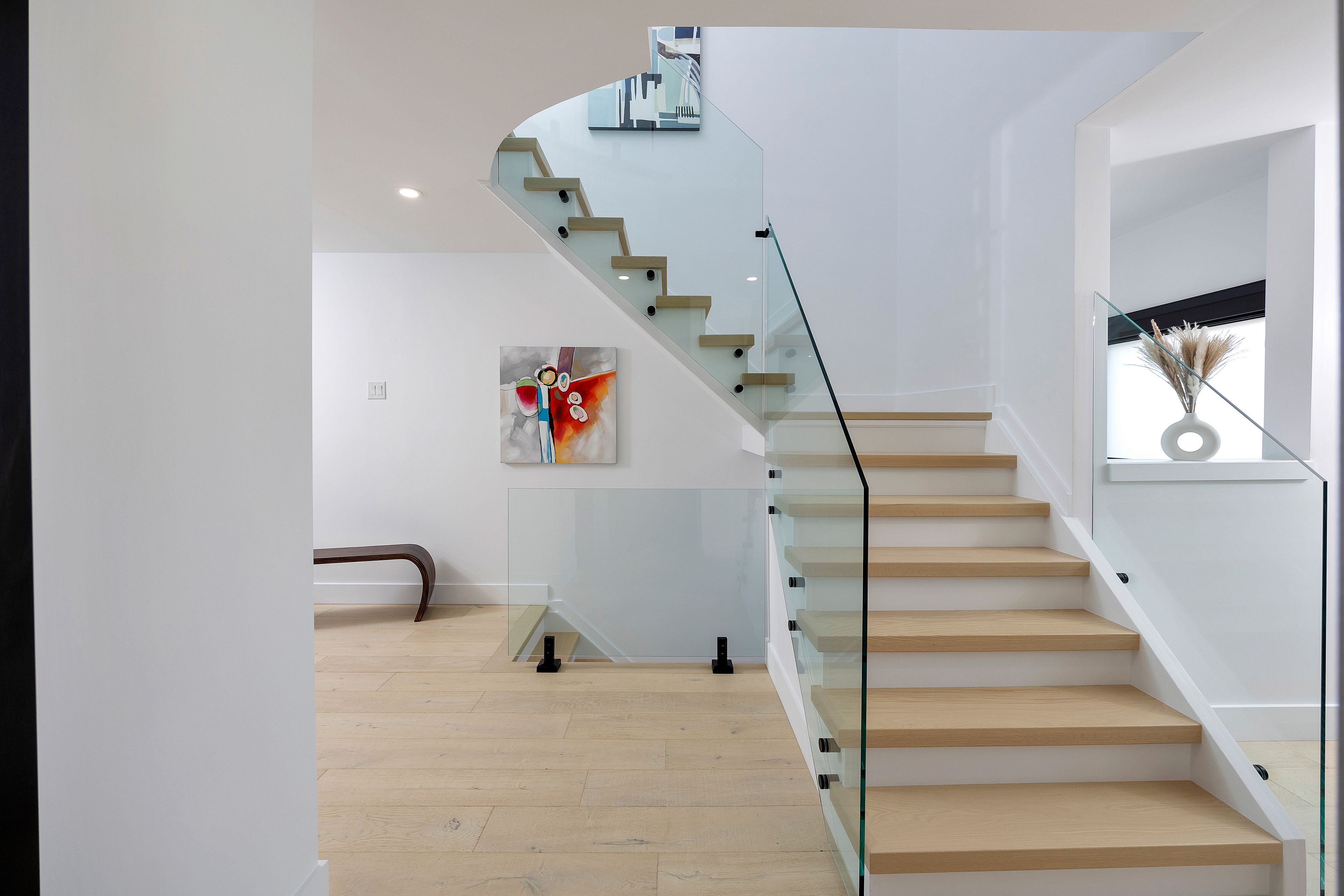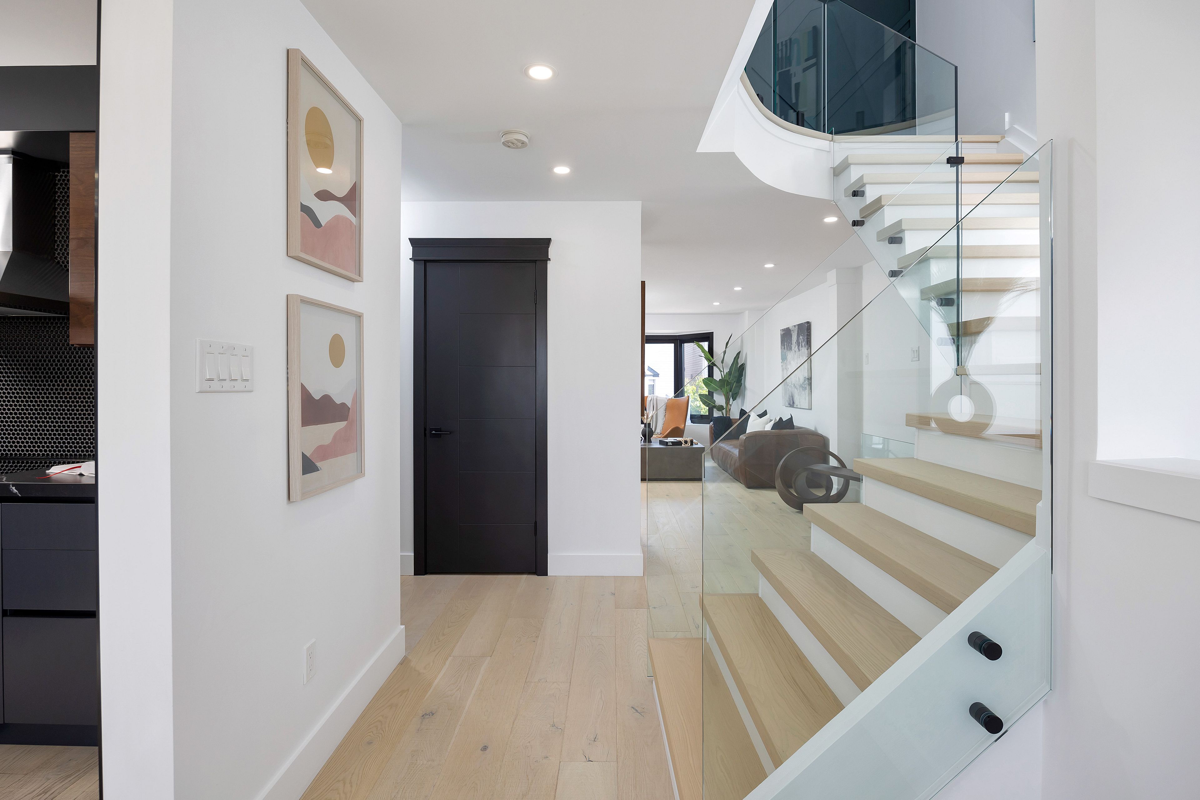 • Open-concept living/dining area with stylish oak flooring and tile accents.