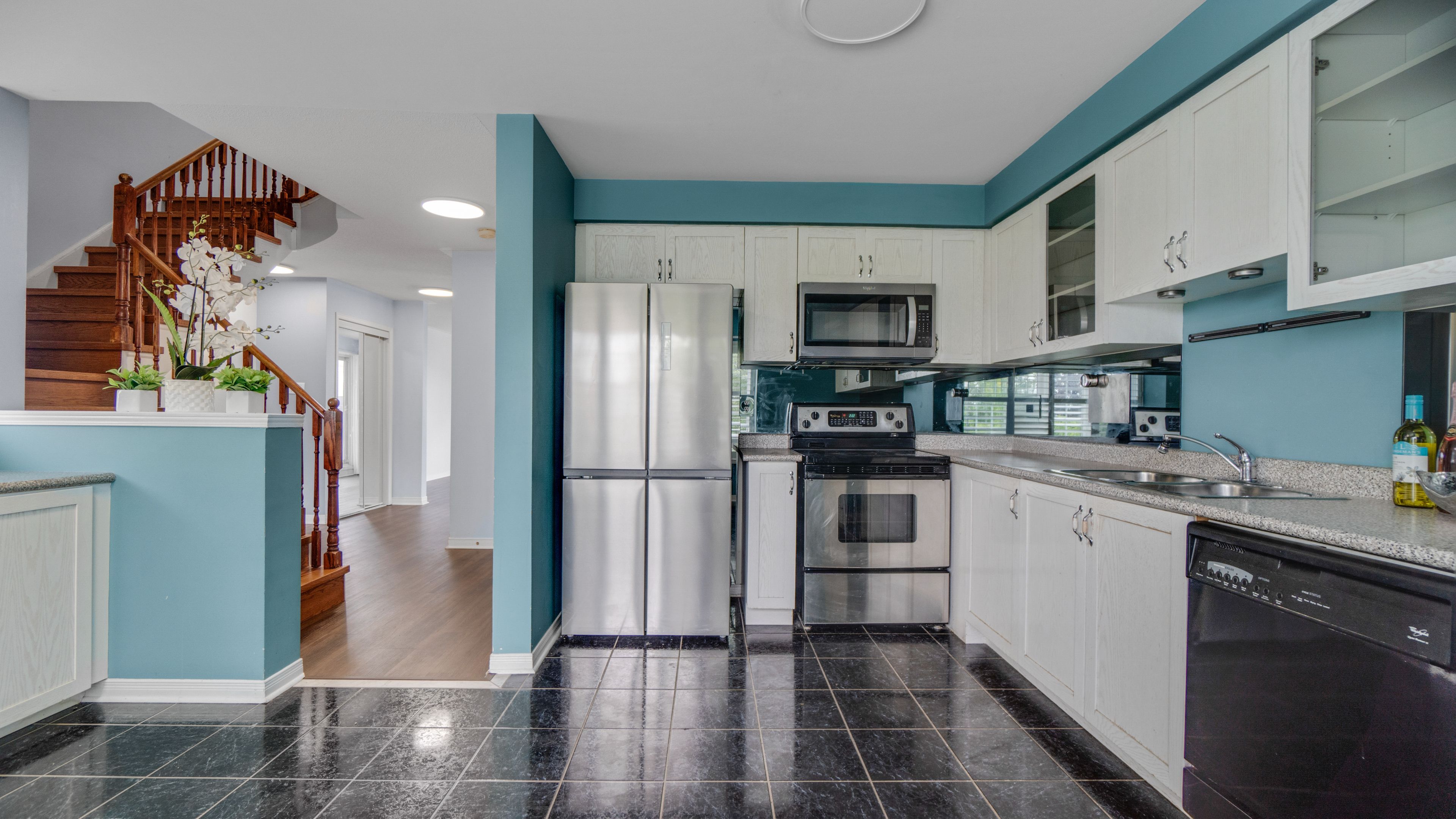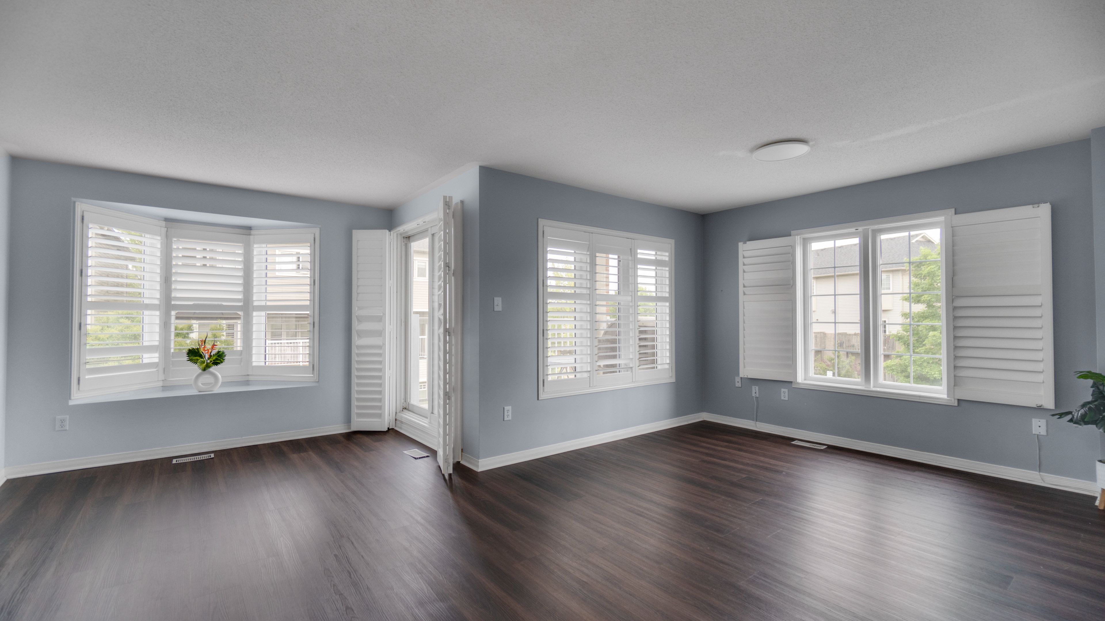 • Spacious open-concept design with abundant natural light from bay windows.