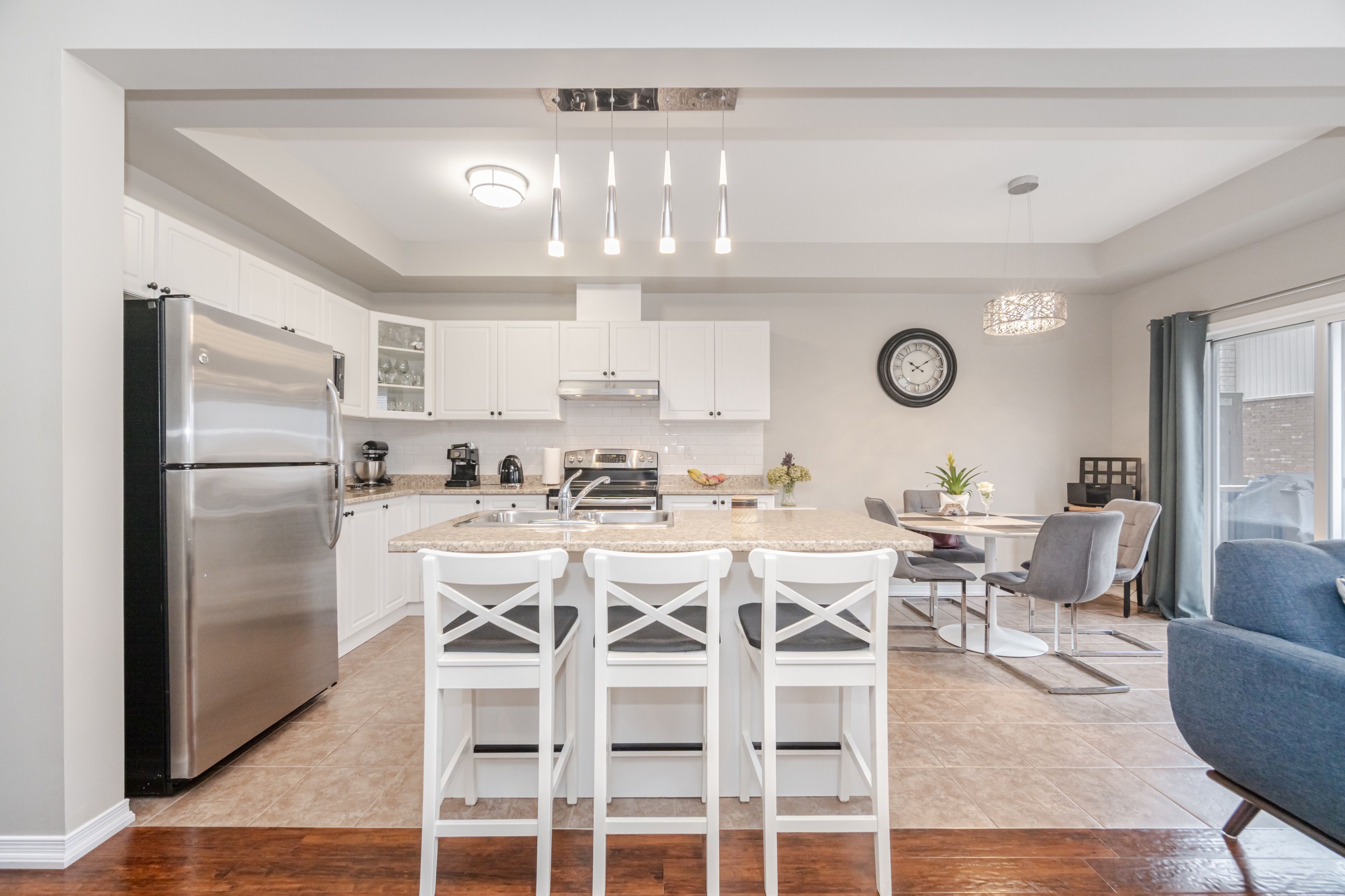 Welcome to 5091 alyssa drive in the heart of beamsville - a vibrant community surrounded by award-winning wineries, scenic trails, and charming local shops. This beautifully maintained freehold townhome sits directly across from the fleming centre and rotary park, offering the perfect blend of convenience and lifestyle. The spacious open-concept main floor features a modern kitchen with stainless steel appliances, a large centre island, and plenty of natural light - ideal for both everyday living and entertaining. Upstairs, the primary bedroom includes a private ensuite. A few steps up, you'll find two additional bedrooms, a 4-piece bathroom, and a convenient second-floor laundry. The finished lower level provides extra living space with a rough-in for a future bathroom. Enjoy comfortable, family-friendly living in one of niagara's most desirable communities - just minutes from the qew, schools, and all beamsville amenities.