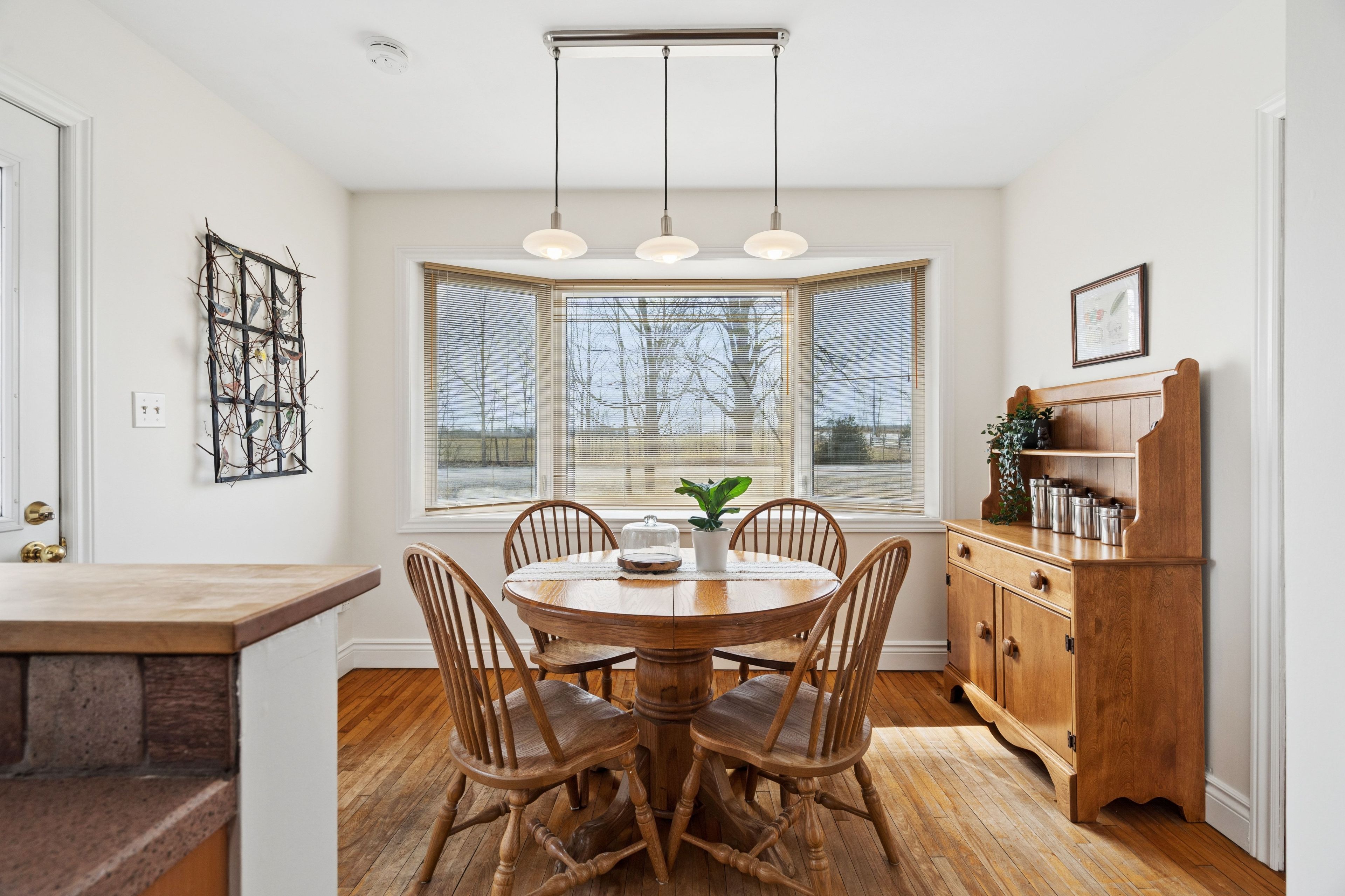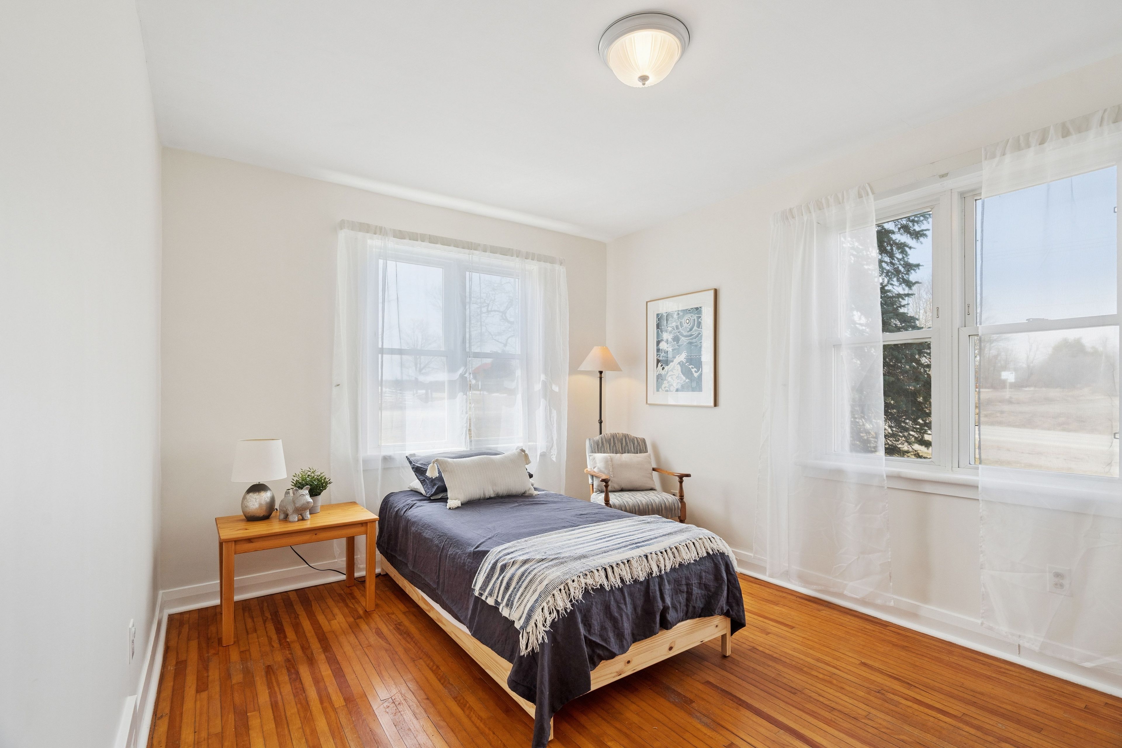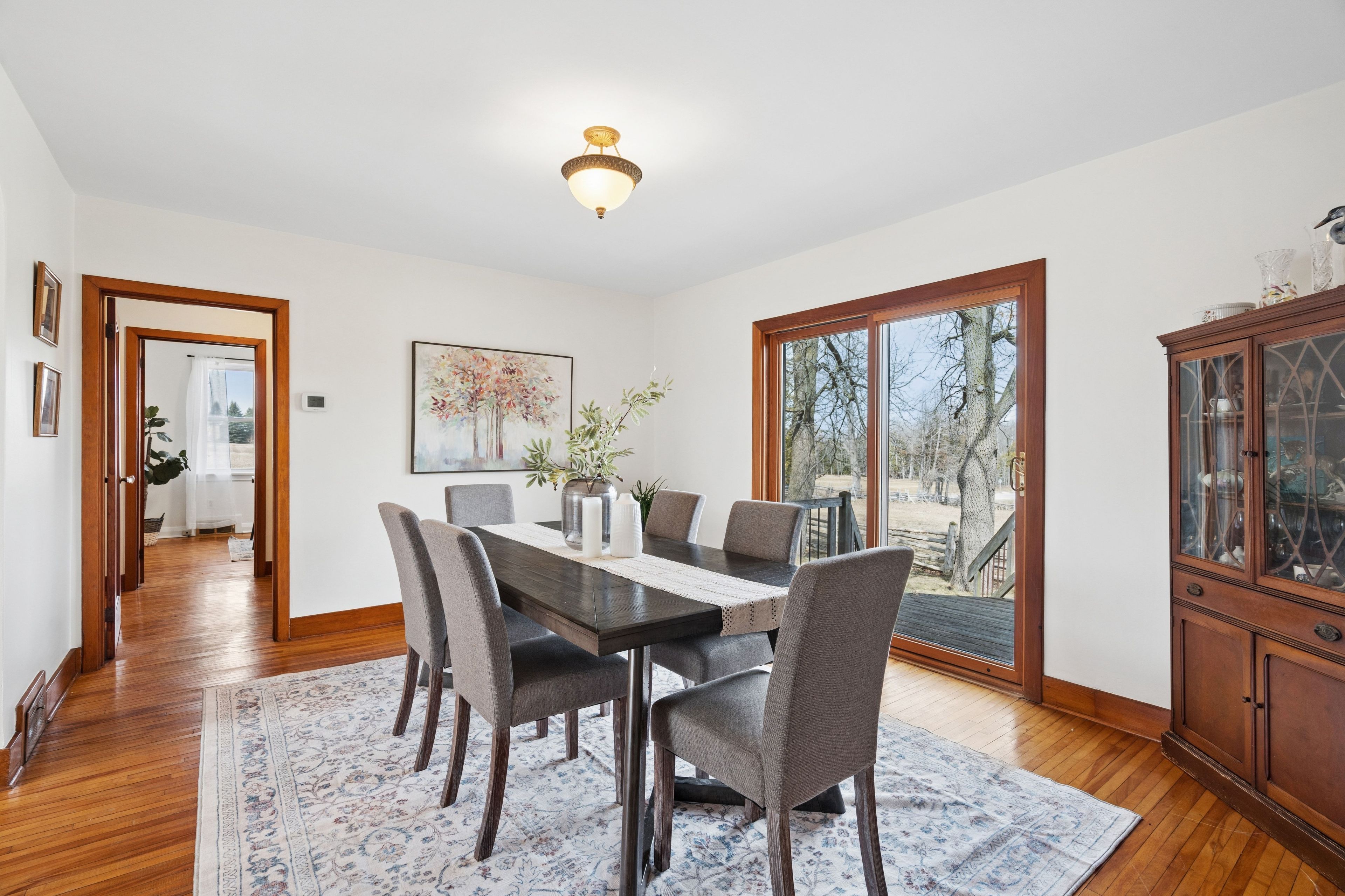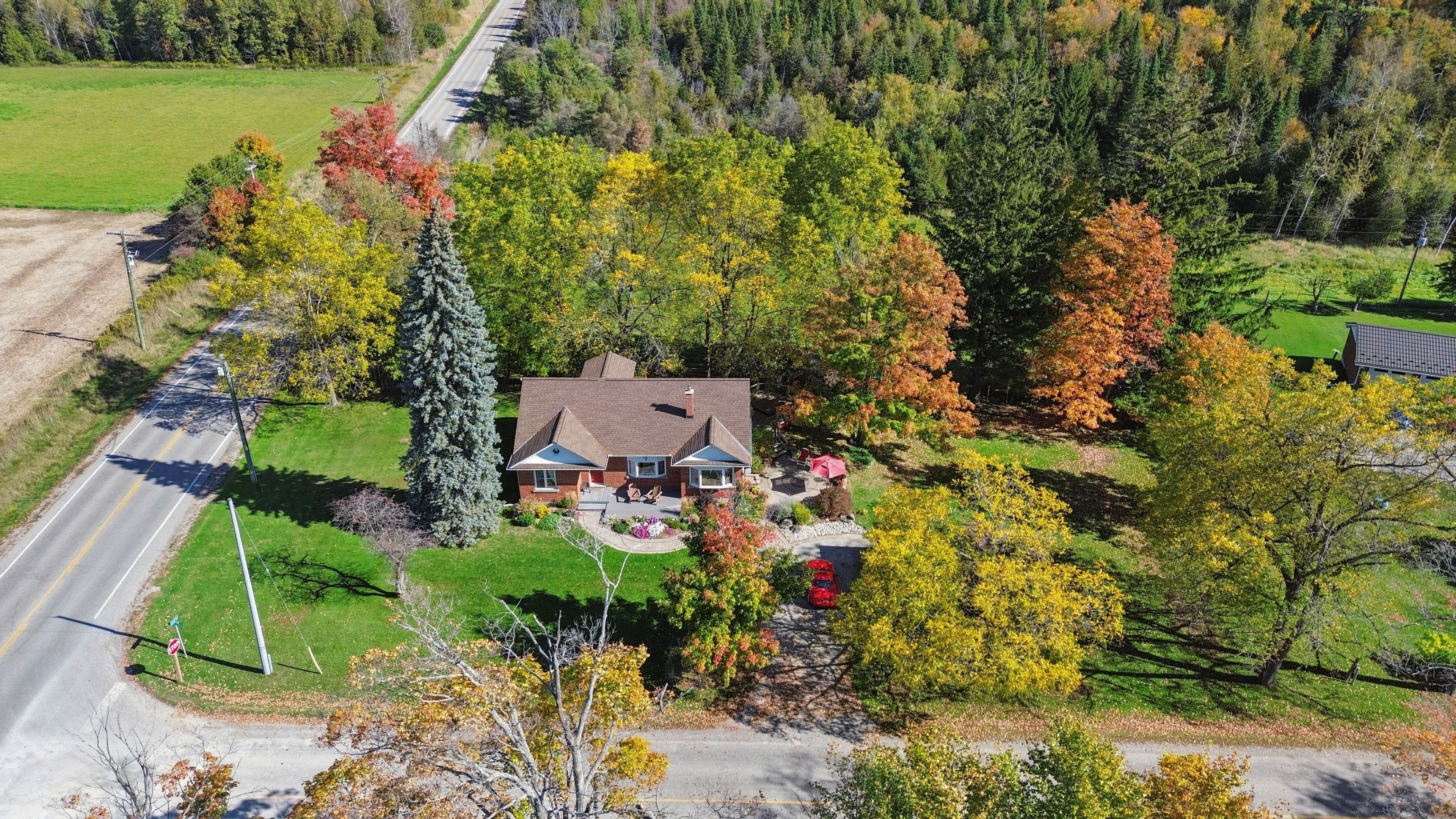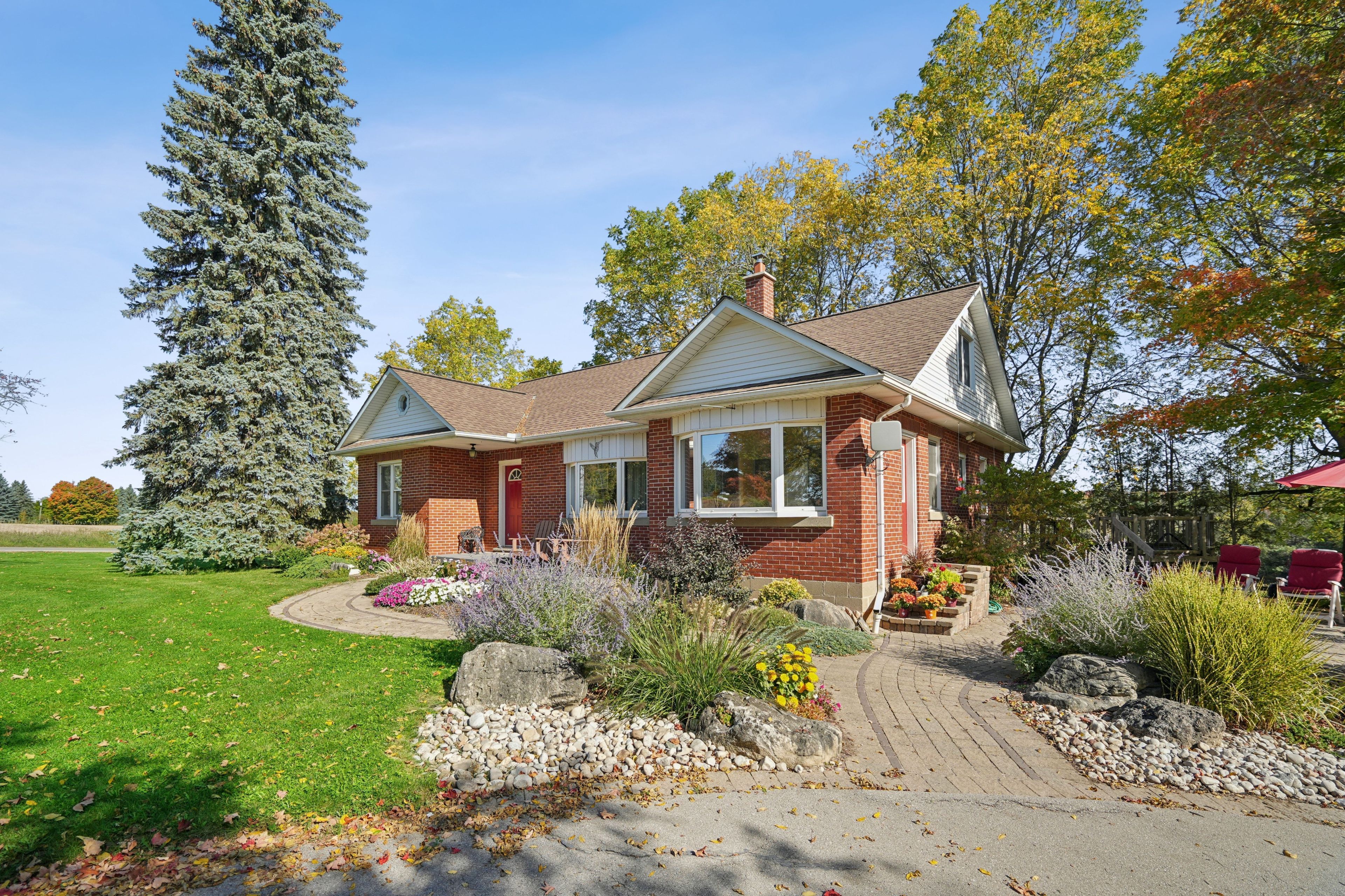 Looking for a peaceful country home with space to grow, without sacrificing convenience? This is it. Welcome to 5099 first line in erin, a beautifully maintained 4-bedroom home set on a picturesque 0. 50-acre corner lot, offering the perfect blend of rural charm and commuter-friendly access. Ideally located just minutes to acton, 20 minutes to highway 401, and 20 minutes to guelph, this home delivers the lifestyle you've been searching for without giving up connectivity. Originally built in 1950 and freshly painted throughout, this home combines timeless character with modern comfort. Step inside to find warm hardwood floors, sun-filled living spaces, and a functional layout designed for everyday family living. The main floor features two spacious bedrooms, a bright 3-piece bathroom, and a welcoming living room with pot lights and a beautiful bay window. The eat-in kitchen is the heart of the home, offering generous cabinetry, a charming bay window, and convenient side entrance access. Just off the kitchen, the dining area walks out to the deck, creating the perfect space for gatherings and indoor-outdoor entertaining. Upstairs, you'll find two additional bedrooms with hardwood flooring, a cozy reading nook, and a 2-piece bathroom, ideal for growing families or guests. Outside, enjoy the space and privacy that only country living can offer. The half-acre lot provides endless possibilities, from gardening to entertaining, while the stone patio and deck create inviting outdoor living areas. A detached garage and parking for three vehicles add everyday convenience. Additional highlights include: energy-efficient geothermal heating and cooling system, well and septic for rural independence, unfinished basement ready for your customization and quiet corner lot with scenic surroundings. Live the lifestyle you've been dreaming of. Peaceful mornings, open space, and quick access to everything you need.