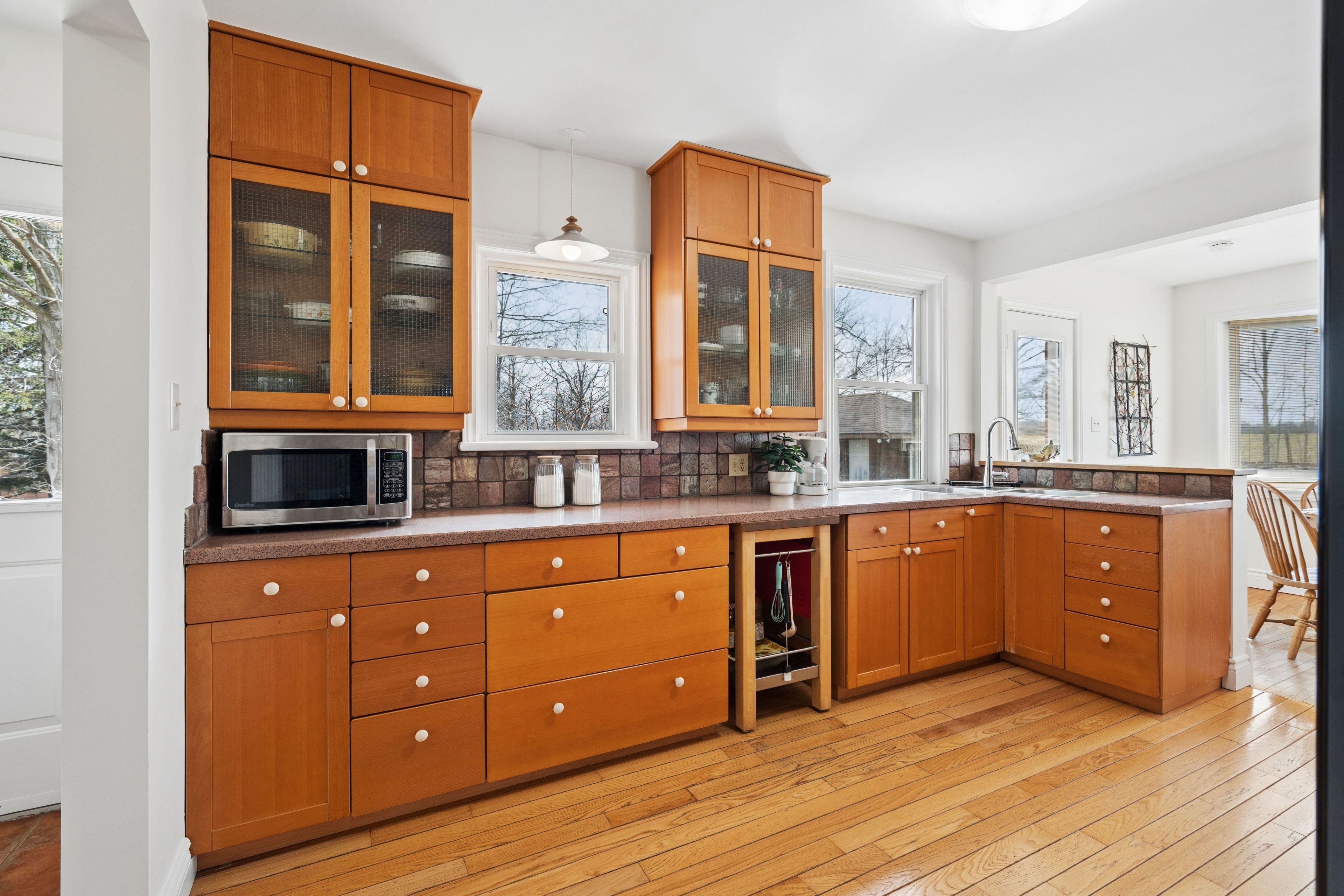 • Eat-in kitchen with generous cabinetry and inviting deck access.