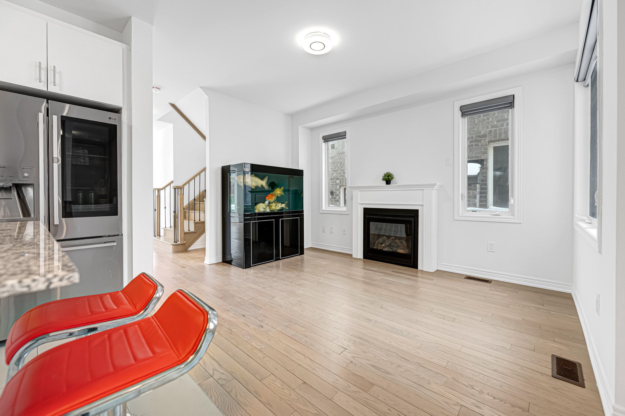 • Bright open-concept layout with large windows filling the home with natural light.